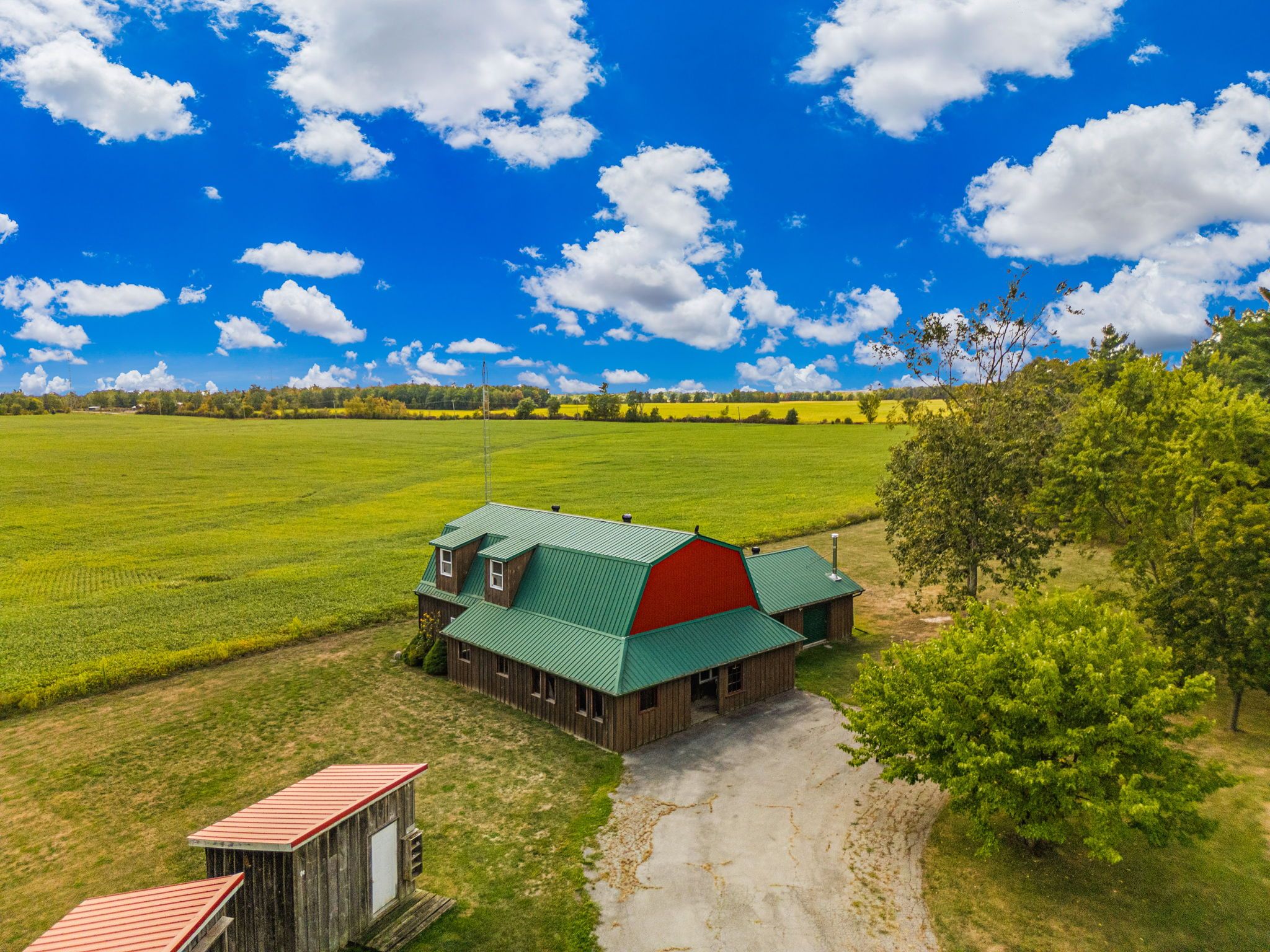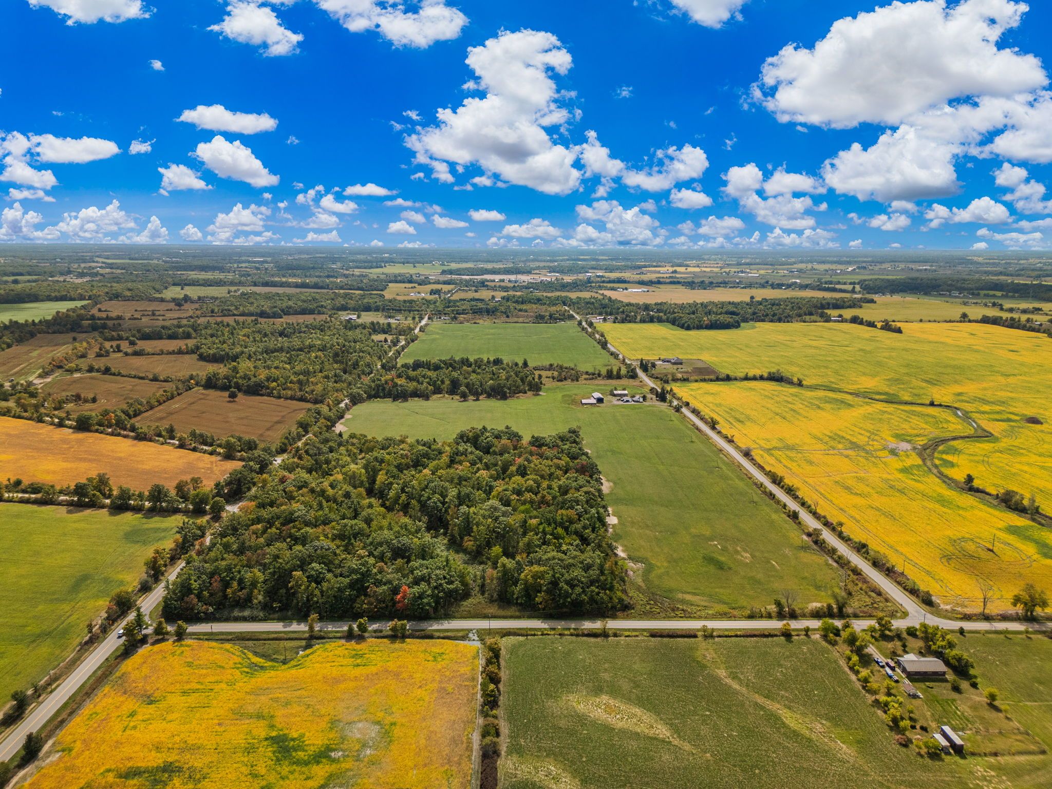 Rare opportunity! Welcome to this 112. 5 acre property located just 10 minutes from binbrook and 20 minutes from major highways and shopping centers. Offering approximately 75 acres of workable farmland, 30 acres of bush, four road frontages, and little wolf creek running through, this property provides endless opportunities. Whether youre looking to expand your farming operation, invest, or build your dream home in a gorgeous, secluded location. The 30 acres of bush offer an outdoor enthusiast or hunters paradise, complete with trails winding through both forests. On the property is a 2 bedroom farmhouse dating back to the 1870s, along with three additional outbuildings measuring 30' x 74', 50' x 40', and 30' x 50', plus a single car detached garage. Also on the property is a massive, 2000 sq ft barn/workshop with 1400 sq ft loft (fronting on westbrook road) with separate hydro, concrete floors, two roll up doors, propane furnace, rough-in for a washroom. Property is currently taxed for farm and commercial use. Seller states the barn/workshop (fronting on westbrook road) may be used for commercial uses. Loads of opportunity! The perfect spot for a multi-generational estate. This rare offering combines the perfect balance of work, living, and leisure all in one remarkable package.