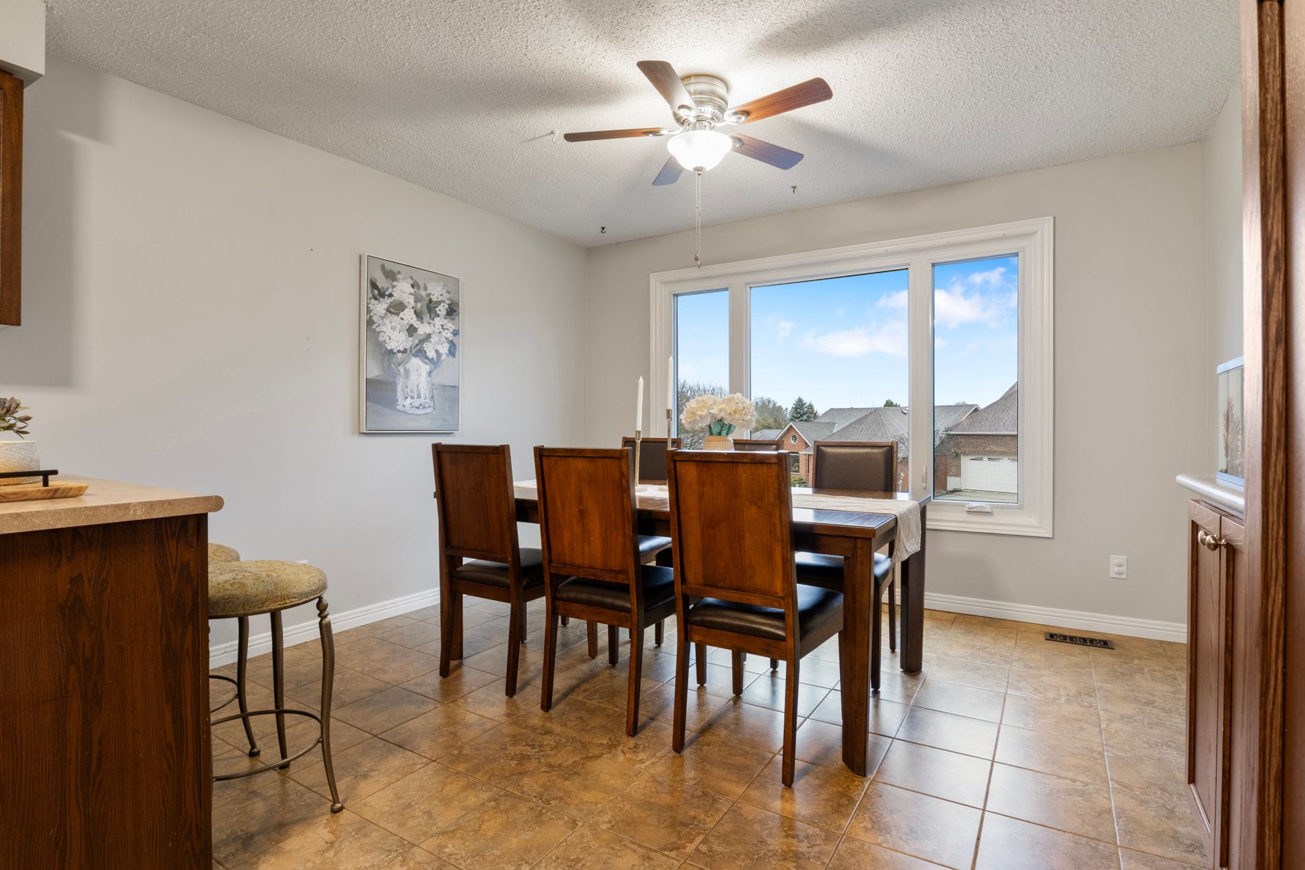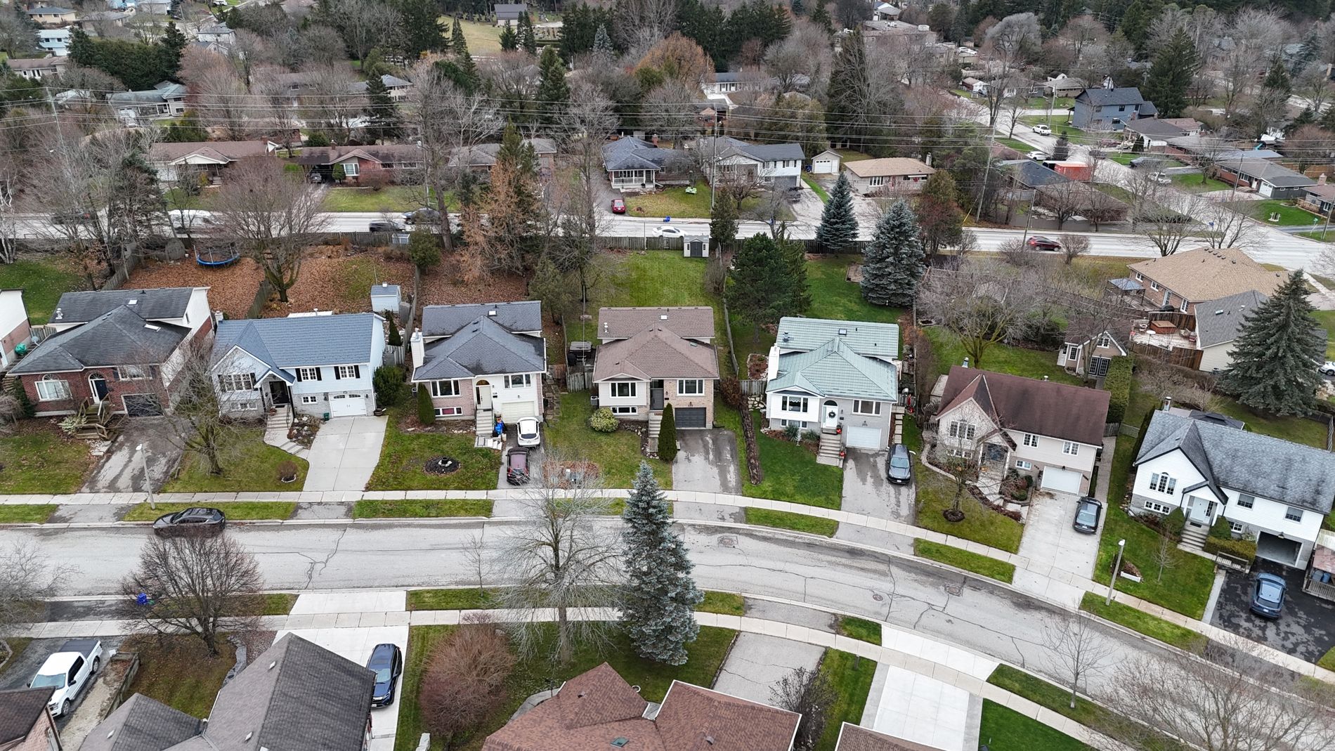Spacious backsplit in a mature fergus neighbourhood offering over 2,000 sq. Ft. Of finished living space and a great family-friendly layout across four levels. Three bedrooms upstairs plus a fourth on the lower level, along with three bathrooms including a 3-piece ensuite. Bright kitchen with 2020 appliances opens to the dining area with large windows and a skylight. The main living room walks out to the large backyard, while the lower-level family room features a gas fireplace and a separate entrance-ideal for extended family or in-law potential. Major updates include: furnace (2019), a/c (2020), carpet (2020), water softener (2020), roof (2026), ensuite (2021) andmain bath (2024). Convenient location close to downtown fergus, the grand river, trails, sportsplex, schools, and an easy commute toward guelph.