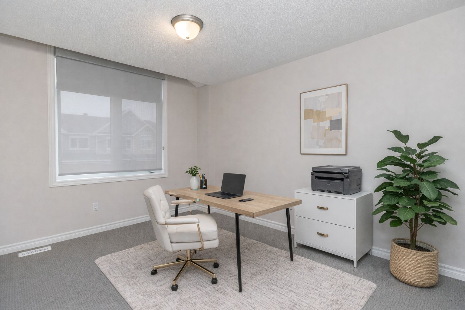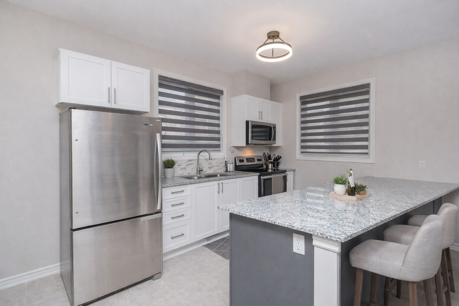 Welcome to loury row in the heart of orleans village, where modern design, quality craftsmanship, and thoughtful upgrades come together in this 2020-built, 3-bedroom home offering 3 full bathrooms plus a convenient main-floor powder room. Designed for both comfort and functionality, the open-concept main level features a well-appointed kitchen with stainless steel appliances, granite countertops, upgraded ceramic tile backsplash, breakfast bar, and direct access to the backyard, making it ideal for everyday living and entertaining. Hardwood flooring and a hardwood staircase, paired with 9' ceilings, large windows, and custom modern window blinds, create a bright and inviting atmosphere throughout the living and dining areas. The second level offers three generously sized bedrooms, a convenient upper-level laundry room, and two full bathrooms, including a spacious primary bedroom with ensuite privileges. The fully finished lower level adds valuable living space with a large family room and an additional full bathroom, offering excellent flexibility for a home office, guest suite, gym, or recreation area. Finished in modern, neutral tones and upgraded directly through the builder, this home includes approximately $40,000 in upgrades, including a full basement bathroom, upgraded upstairs laundry room, hardwood flooring and staircase throughout the main and second floors, enhanced backsplash, and upgraded light fixtures throughout. Ideally located close to schools, parks, shopping, transit, and all amenities orleans has to offer, this move-in-ready home delivers comfort, style, and long-term value for today's discerning buyer. Currently tenanted month to month @ 2700. 00/month, rent increased to $3000. 00 july 1st. N12 for 60 days buyers notice for vacant possession. Offers to be presented sunday april 25th @ 5:00pm.