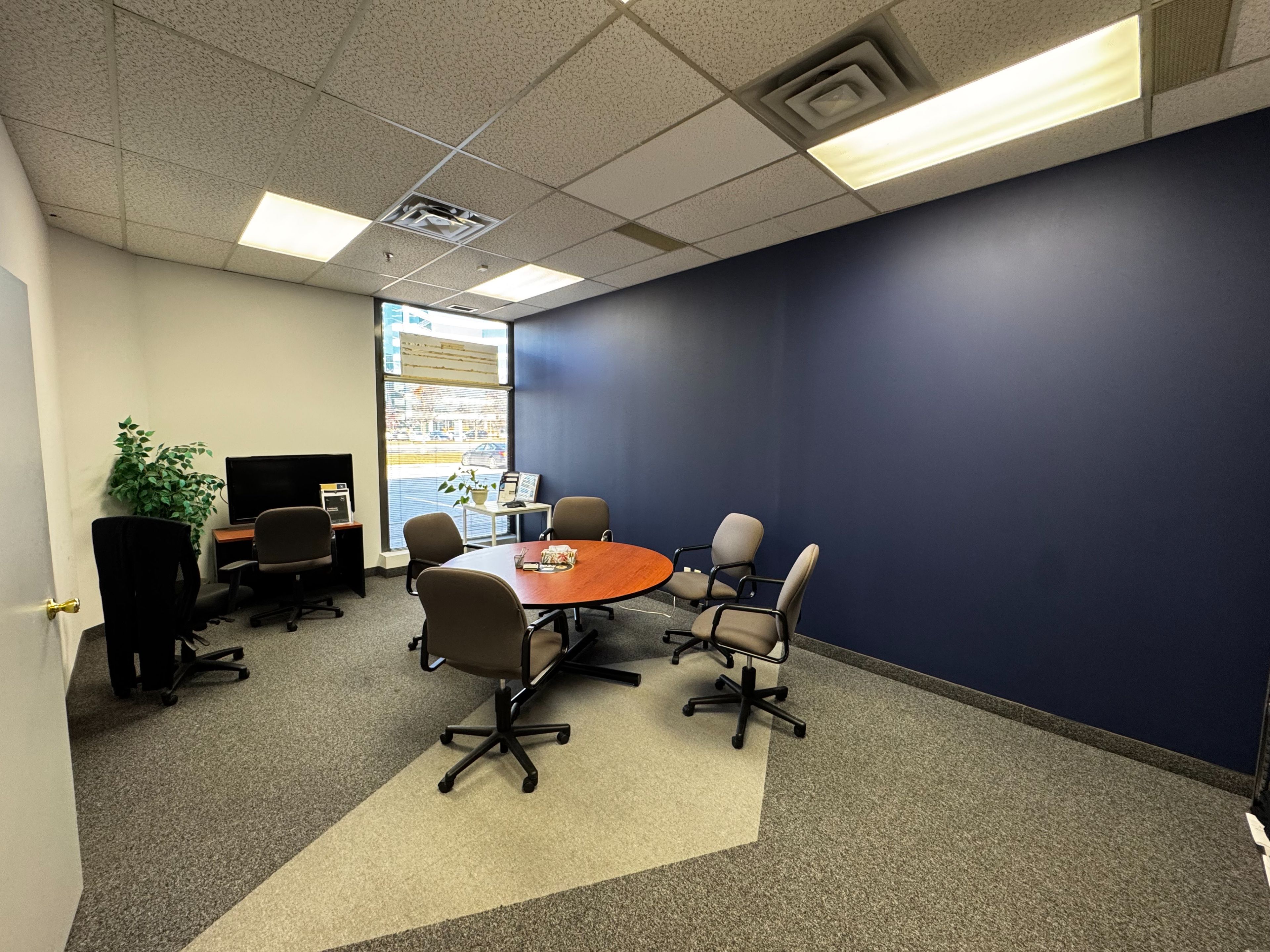 • Flexible layout with boardroom, offices, and collaborative work areas.