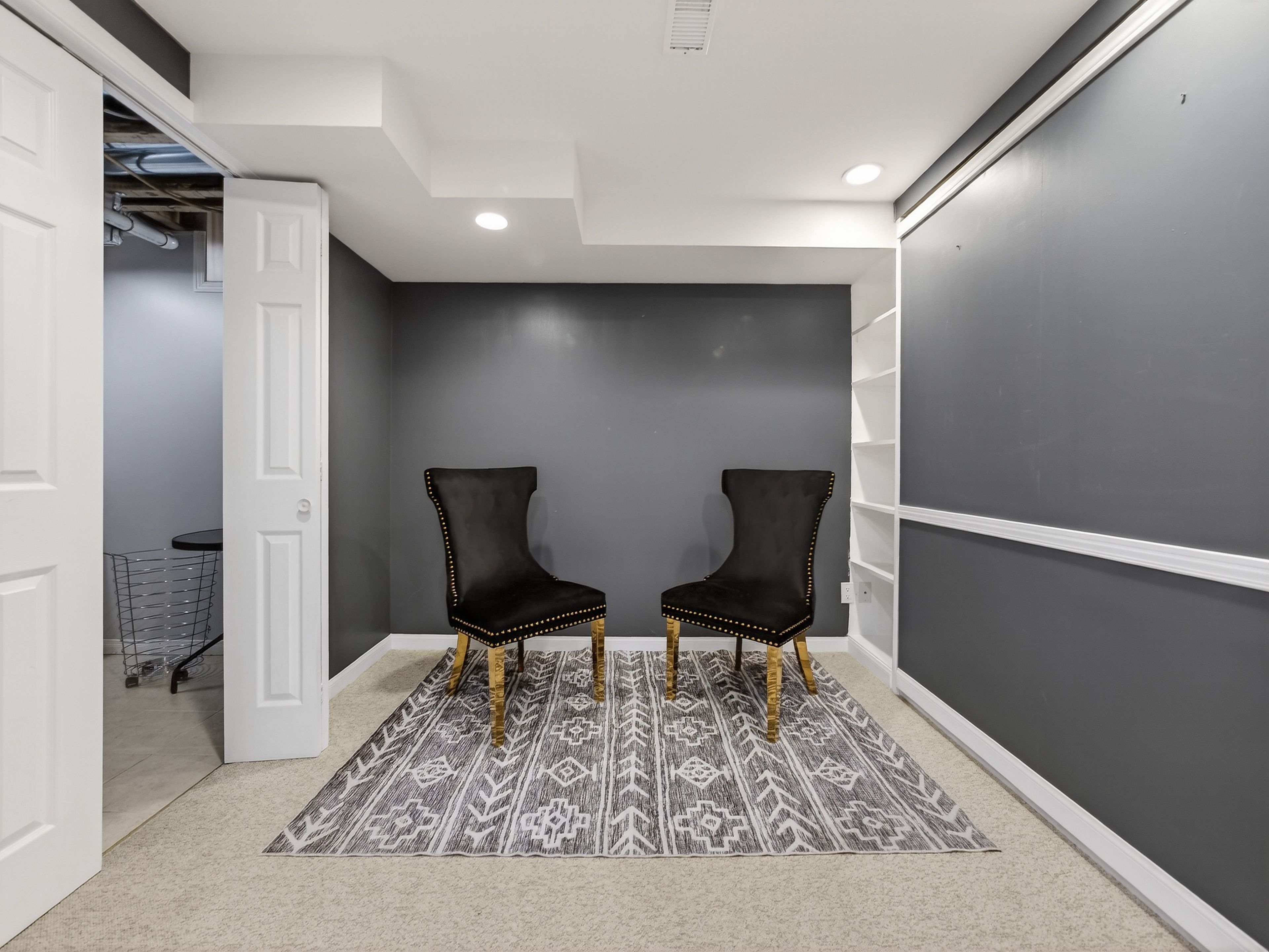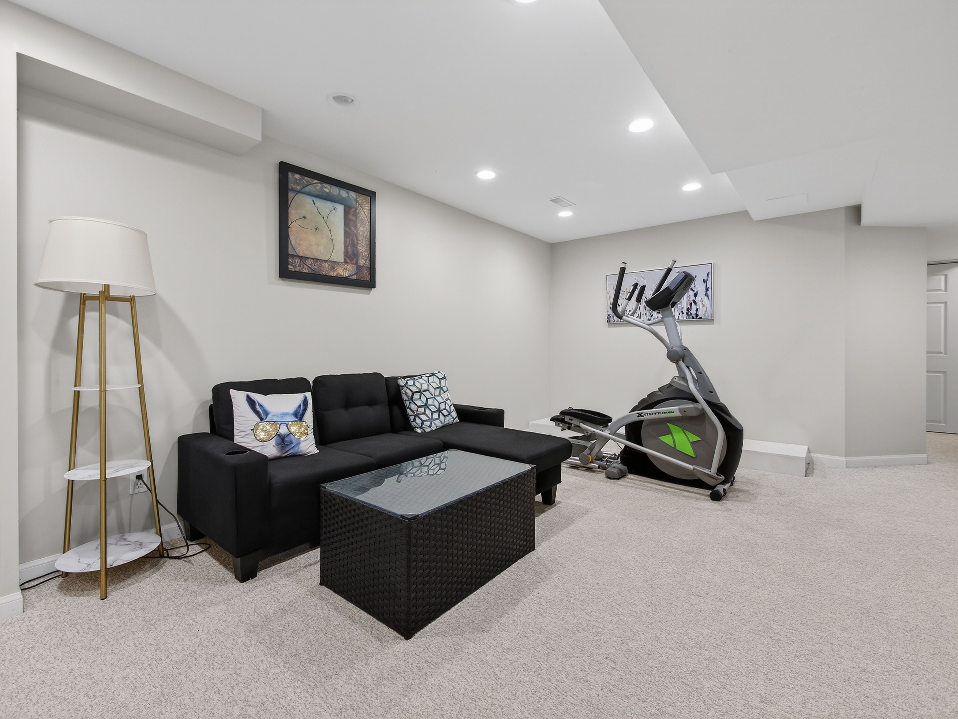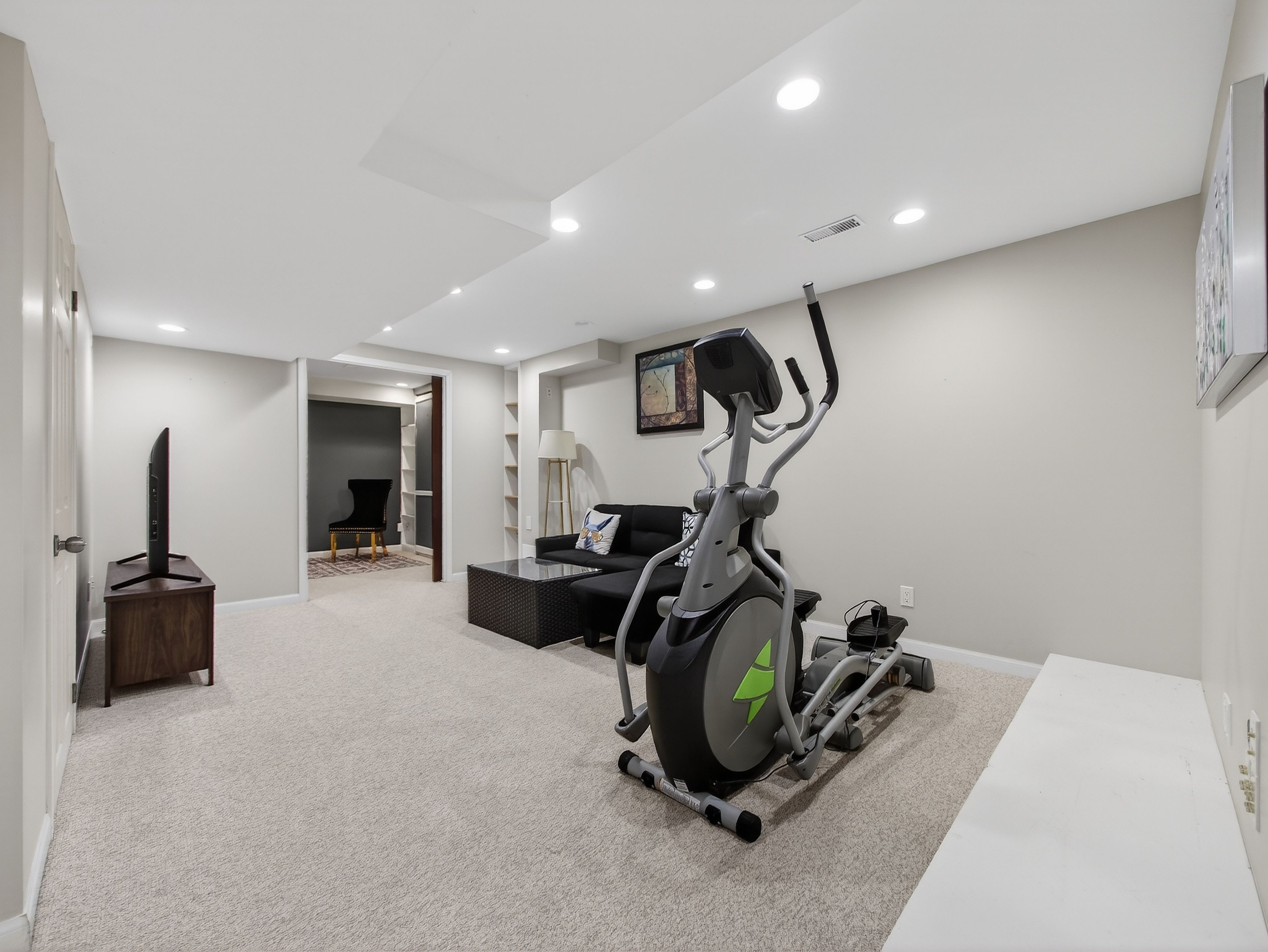 • Finished lower level offers additional living space and a hidden Murphy bed.