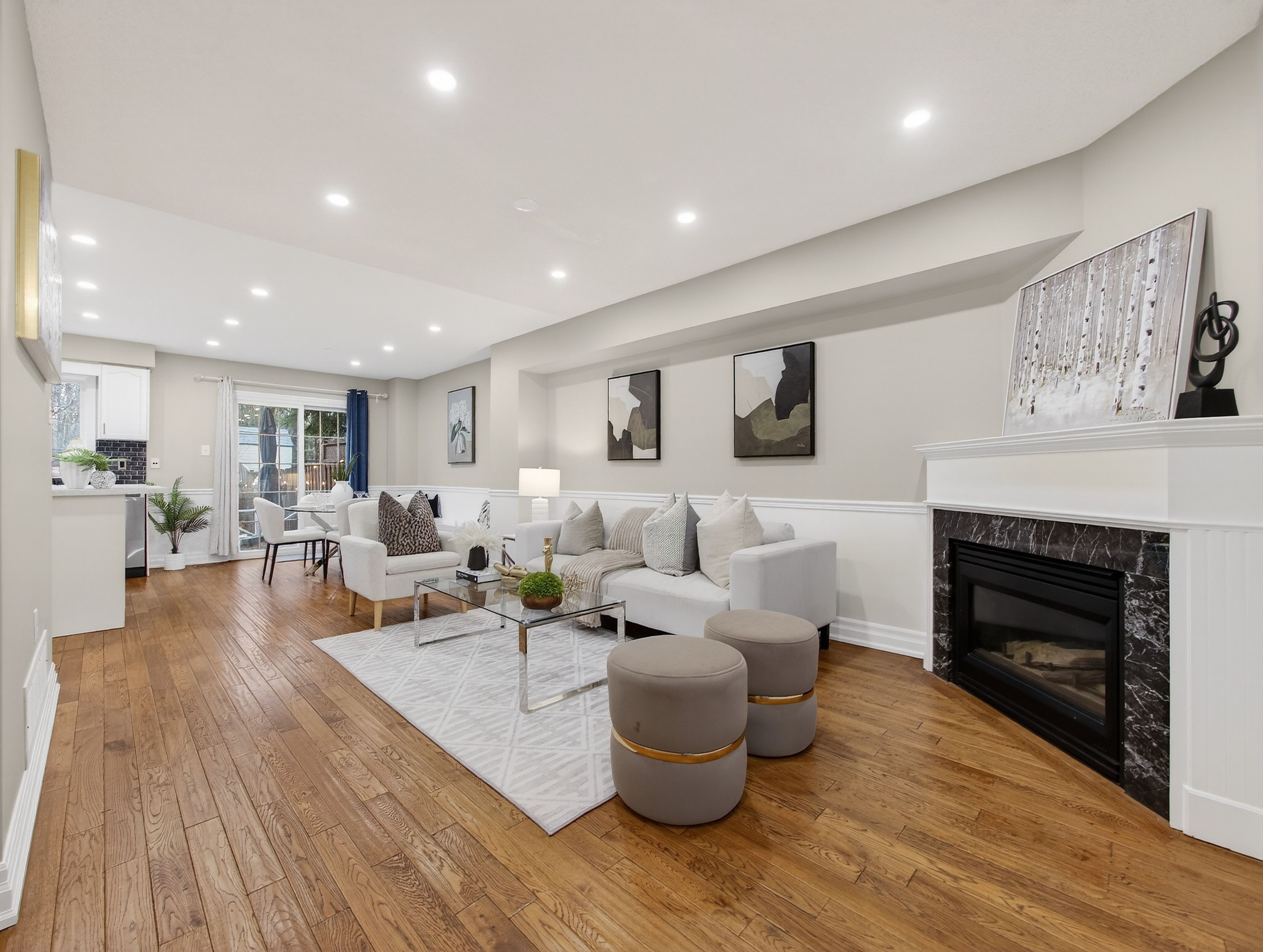 Ravine-backed freehold townhome in a prime locationthis 2-storey freehold townhouse backs onto a private ravine and forest setting, offering peaceful views and added privacy. Conveniently located close to millcroft shopping center, parks, schools and major commuter routes. The main level features oak hardwood flooring and a bright family room with a gas fireplace. The updated eat-in kitchen includes upgraded countertops, stainless steel appliances, fresh paint, and pot lights. Upstairs offers three spacious bedrooms with hardwood flooring throughout. The primary bedroom overlooks the ravine and includes a 4-piece ensuite and a walk-in closet with custom built-ins. The finished lower level adds valuable living space with a recreation room, office area with a hidden murphy bed, and additional storage. Enjoy a private backyard with a patio surrounded by mature trees. Located just minutes from major highways and appleby go station, making commuting easy.