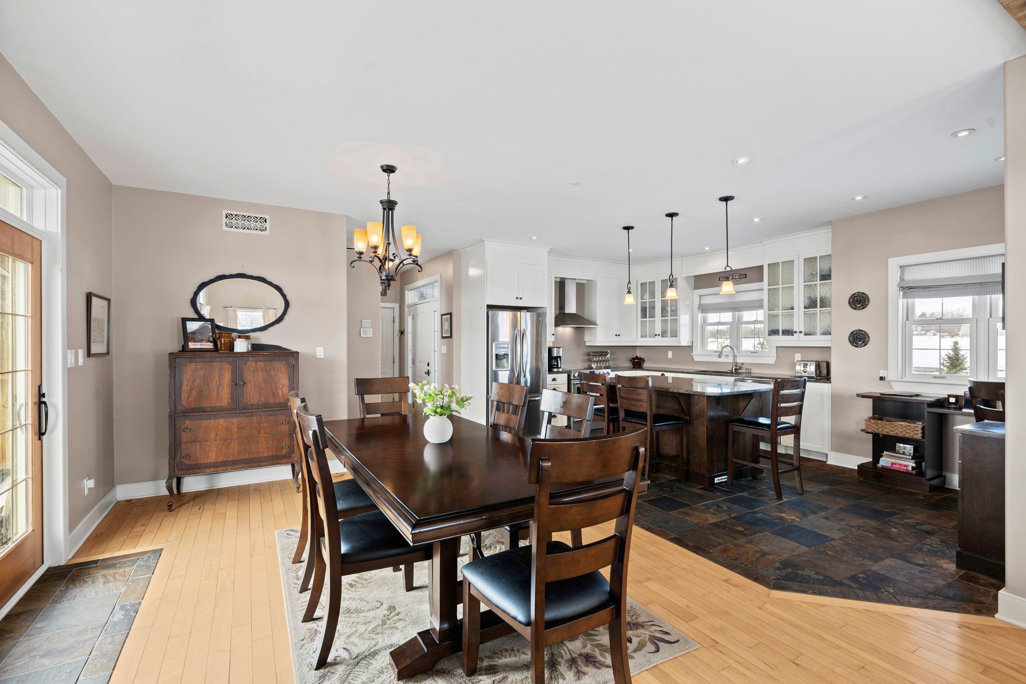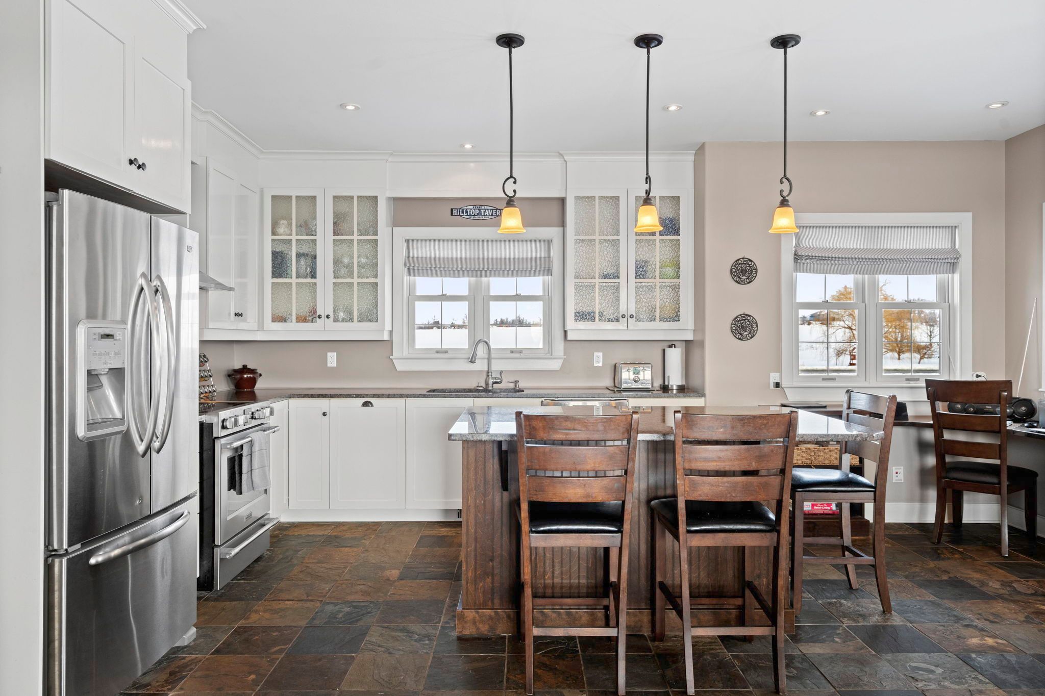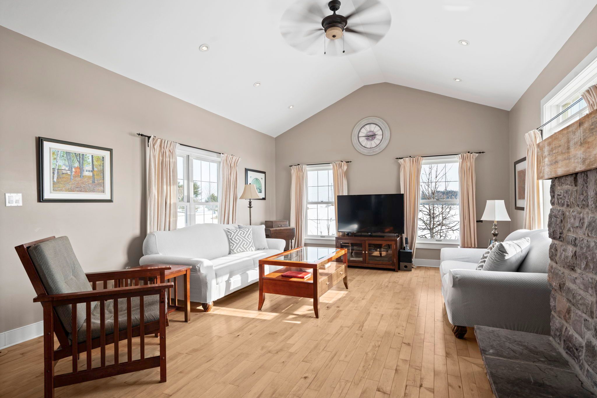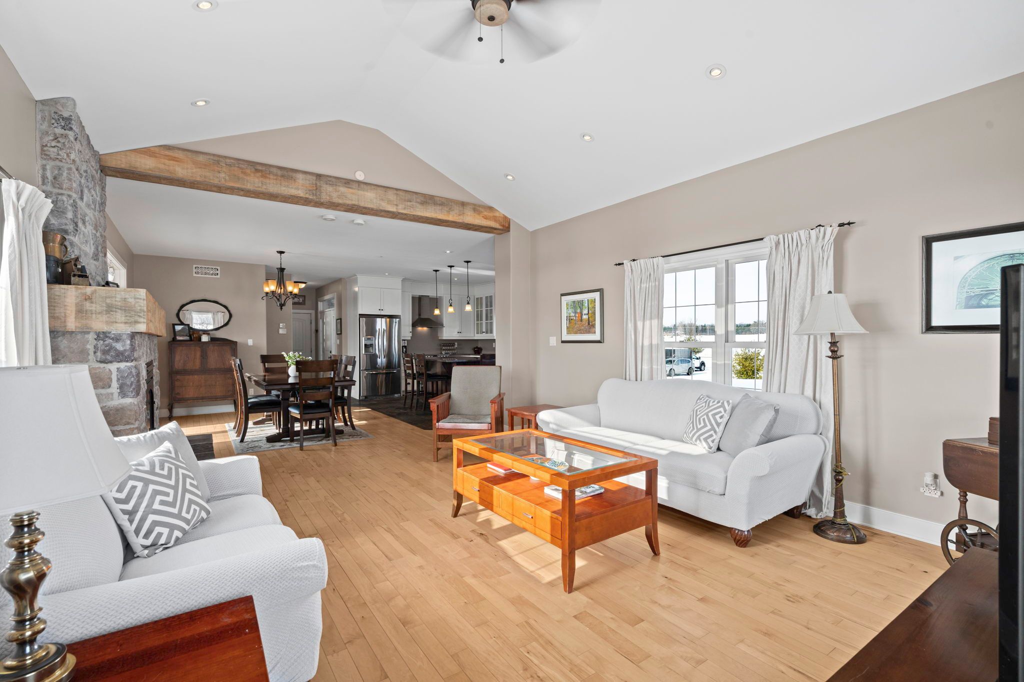 This custom-built home sits on a peaceful lot with west facing sunsets and river views. Located just minutes from the village of fitzroy, kinburn, and arnprior; approximately 25 minutes to kanata, an ideal option for buyers who want more space, privacy, and connection to nature, without giving up convenience. This community provides an easy commute to shopping, schools, recreation, and ottawa's west end. The open-concept main floor is designed for both everyday living and entertaining, offering a functional kitchen with a large granite island, built-in desk, and stainless steel appliances. A welcoming space flows seamlessly into the dining room next to the great room featuring cathedral ceilings and propane fireplace, along with a deck off the dining room. A home filled with natural light and serene views. The upper level includes three spacious bedrooms and a full bath, highlighted by a primary bedroom with a large walk-in closet and separate flex space for a den or workout space. The fully finished walk-out lower level adds valuable living space, offering a fourth bedroom, 3-piece bath, family room, laundry, and ample storage. A home well suited for growing families, guests, or home-office needs with the versatile lower level. Additional features include a double car garage, separate storage shed, pond, generac generator, and landscaped grounds from front to back. Hardwood and tile flooring, radiant heating, and custom finishes reflect the quality of build. A home that delivers the space and setting, while maintaining practical access to the city.