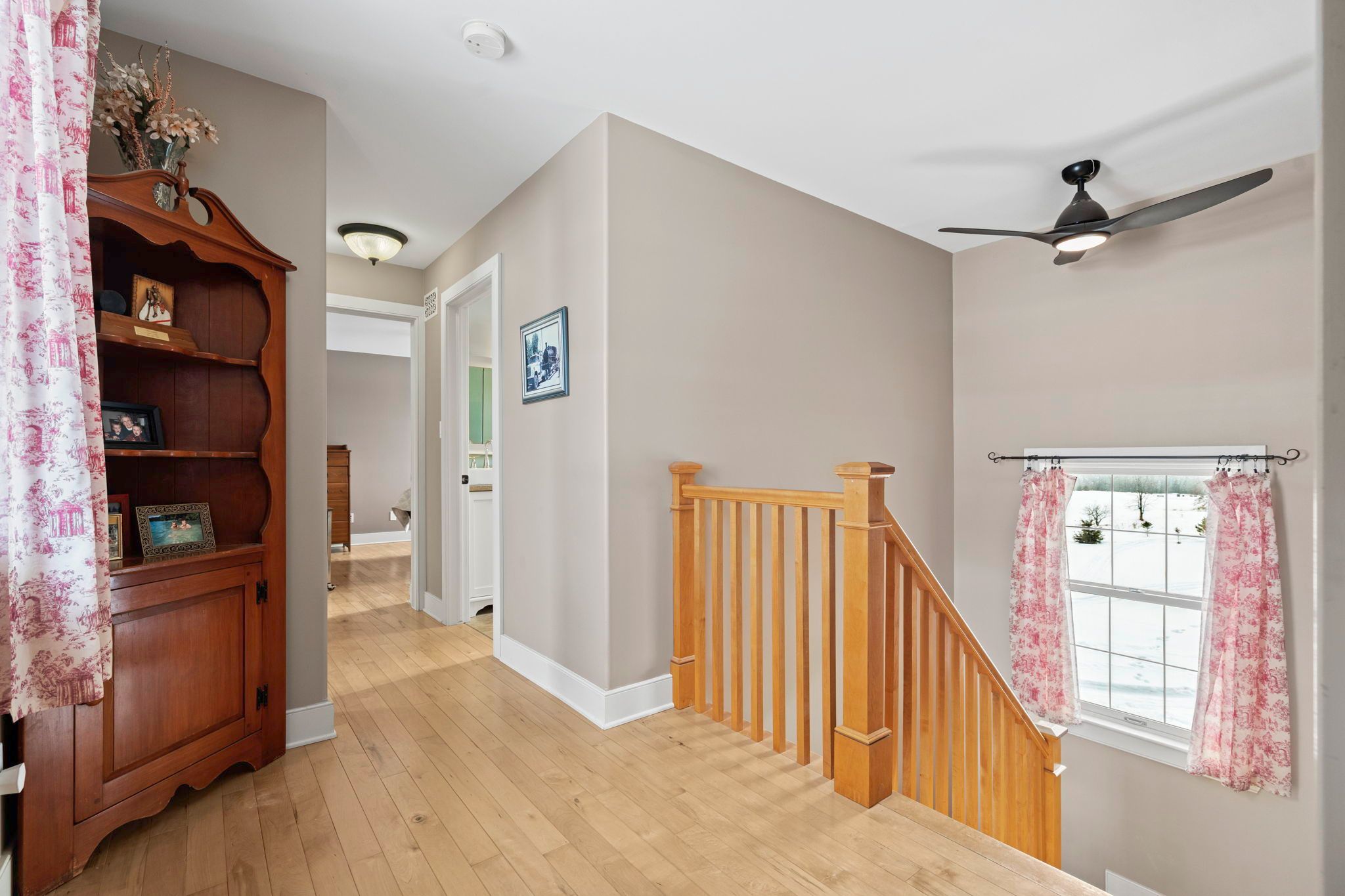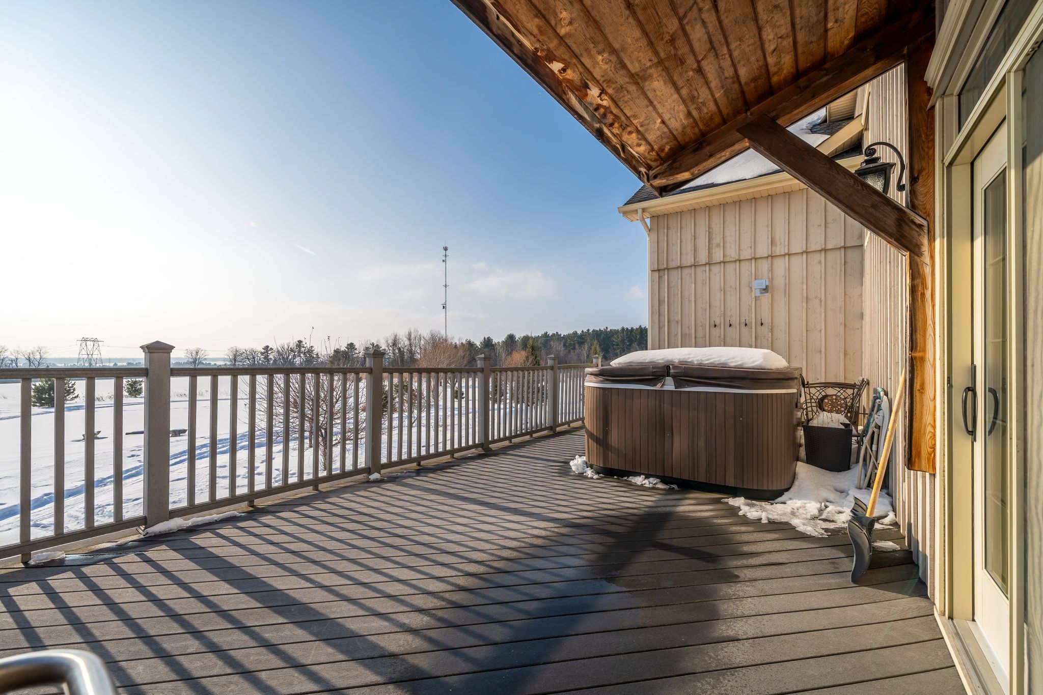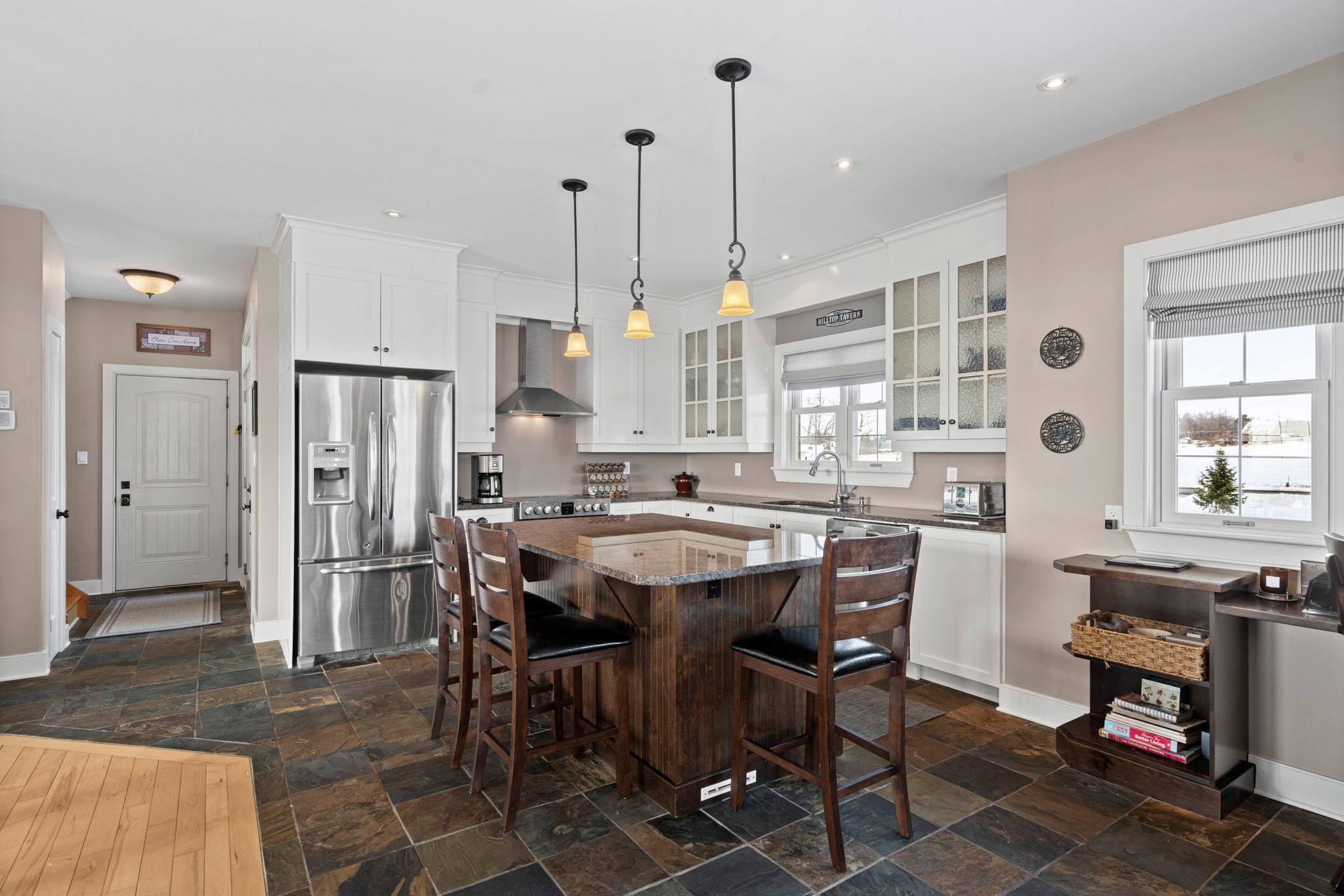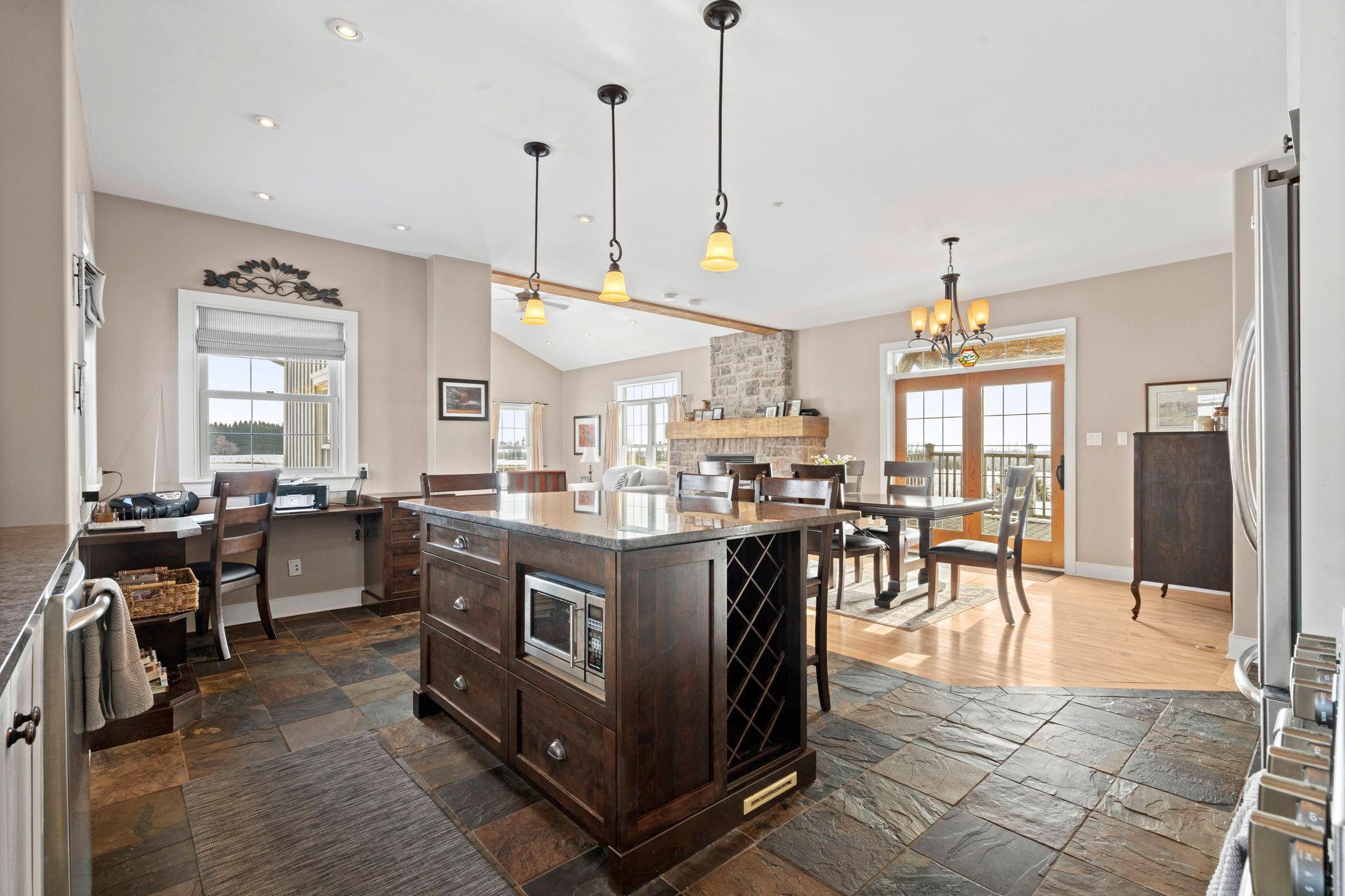 This custom-built home sits on a peaceful lot with west facing sunsets and river views. Located just minutes from the village of fitzroy, kinburn, and arnprior; approximately 25 minutes to kanata, an ideal option for buyers who want more space, privacy, and connection to nature, without giving up convenience. This community provides an easy commute to shopping, schools, recreation, and ottawa's west end. The open-concept main floor is designed for both everyday living and entertaining, offering a functional kitchen with a large granite island, built-in desk, and stainless steel appliances. A welcoming space flows seamlessly into the dining room next to the great room featuring cathedral ceilings and propane fireplace, along with a deck off the dining room. A home filled with natural light and serene views. The upper level includes three spacious bedrooms and a full bath, highlighted by a primary bedroom with a large walk-in closet and separate flex space for a den or workout space. The fully finished walk-out lower level adds valuable living space, offering a fourth bedroom, 3-piece bath, family room, laundry, and ample storage. A home well suited for growing families, guests, or home-office needs with the versatile lower level. Additional features include a double car garage, separate storage shed, pond, generac generator, and landscaped grounds from front to back. Hardwood and tile flooring, radiant heating, and custom finishes reflect the quality of build. A home that delivers the space and setting, while maintaining practical access to the city.