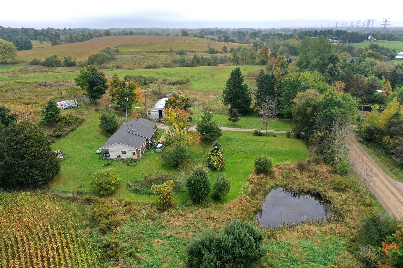 This is one of the most stunning stretches of 99. 5 acres of countryside i've ever explored on foot, featuring gentle rolling hills and quiet ponds with clusters of trees dotting the landscape. This family bungalow was erected in 1991 and is a custom modular pre-fab home built by quality homes. The main floor features 3 good size bedrooms, 2. 5 baths, primary ensuite, huge eat in kitchen, family room, dining room and main floor laundry. This spacious layout-1,826 sq ft on the main floor and 1,850 sq ft in the unfinished basement is waiting your personal touch and in need of tlc. Located in the south central rural portion of erin township on a gravel road just north of paved wellington road 50 with easy access to trafalgar road and highway 25. It is 20 minuets to the university of guelph, 8 minuets to georgetown and 25 min to the 401. Whether you're envisioning a private retreat or an entrepreneurial venture, this location offers endless possibilities. The property features 55 workable/farmed acres currently planted in corn. Septic and well are located at the front of the property leaving lots of room in the rear yard. The essentials are in place-forced air gas furnace (2011), well, septic pumped and inspected in 2024, 200-amp breaker panel plus a pony panel to service the steel quonset outbuilding measuring 55'x38' sitting on a concrete pad. This building adds to the functionality of the property, perfect for storage or a workshop. Raise your family in the country with a slower pace of life and convenient school bus pick up and drop off at your driveway. Located in a serene rural setting, yet close enough to town, this property is a rare find. With some land clearing and tile drainage, there's potential to expand the workable land by another 15 acres. Spend time by the pond and enjoy the sounds of sandhill cranes, deer, turkey, ducks and geese. If you're seeking a peaceful lifestyle with room to grow, this could be your perfect match.
