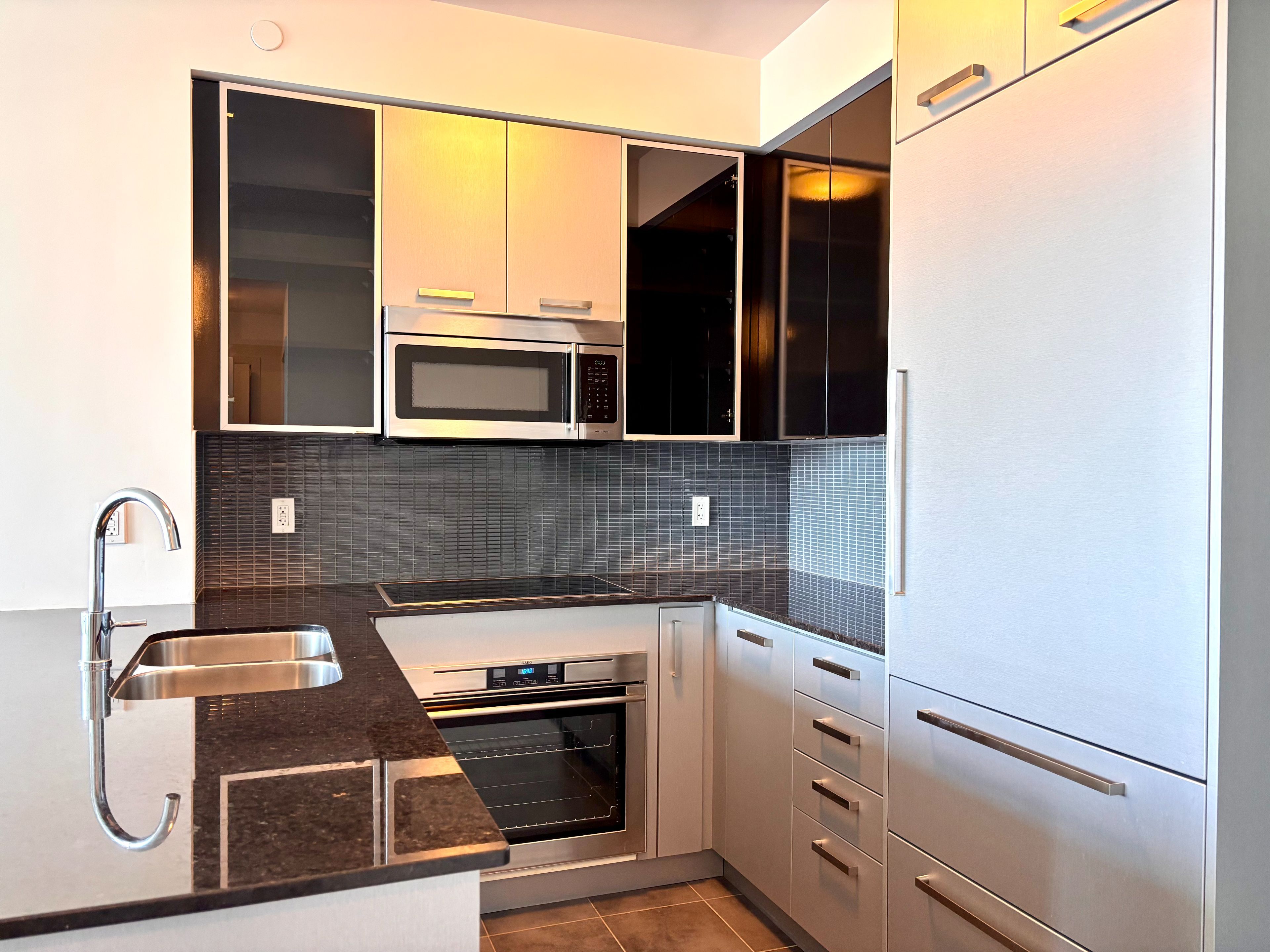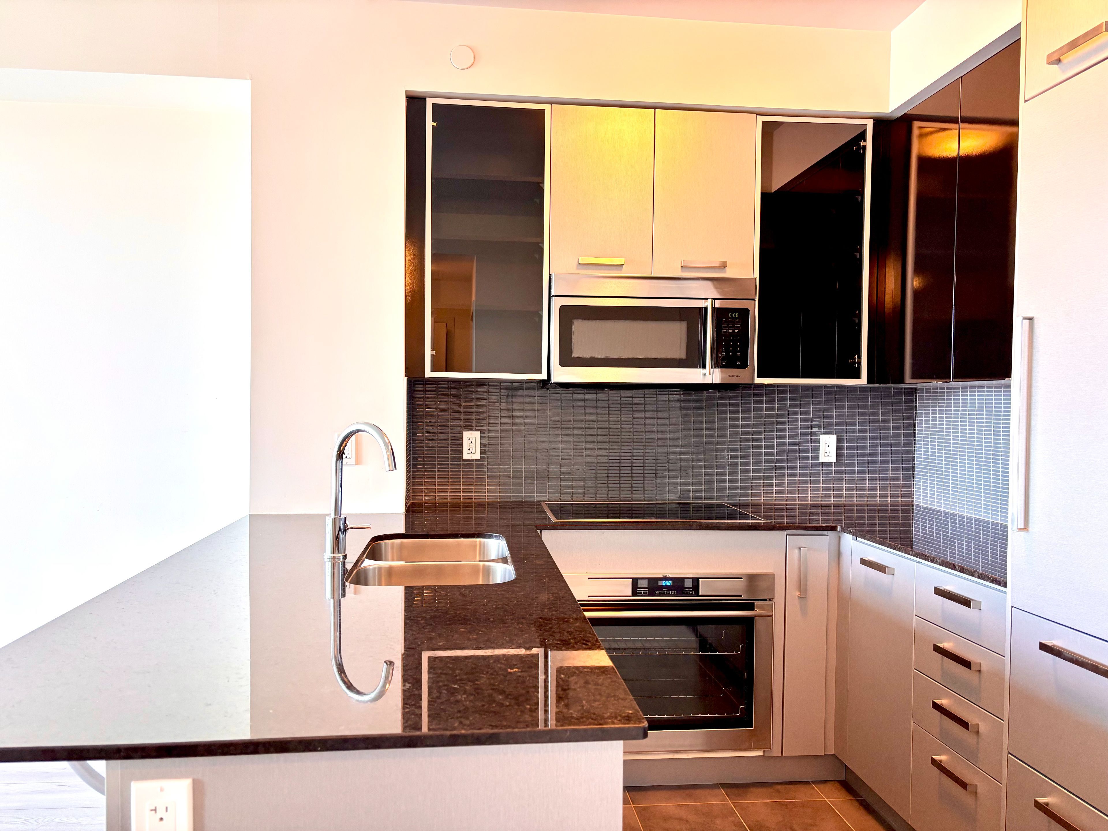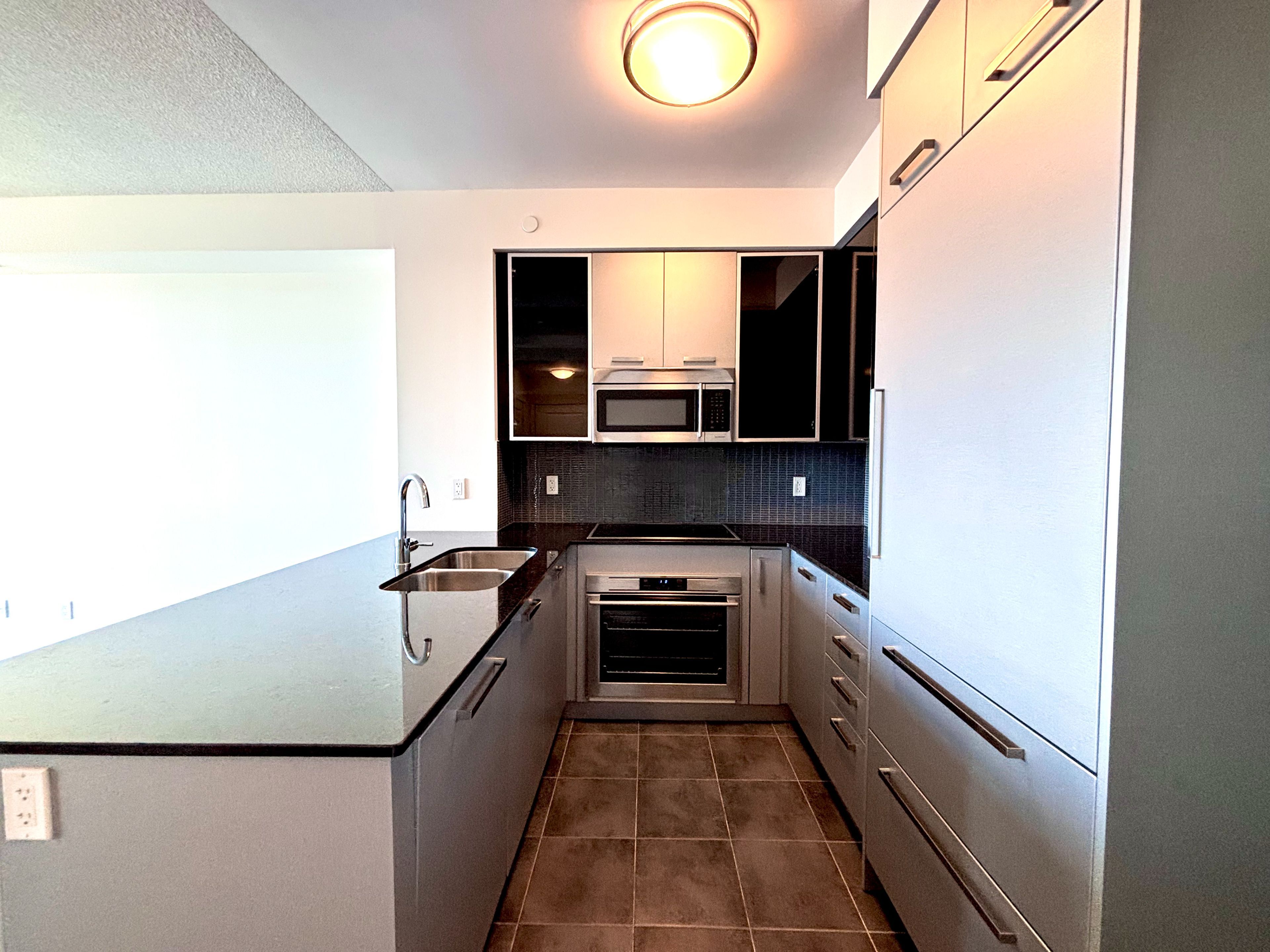 • Modern kitchen with granite countertops and upgraded finishes throughout.