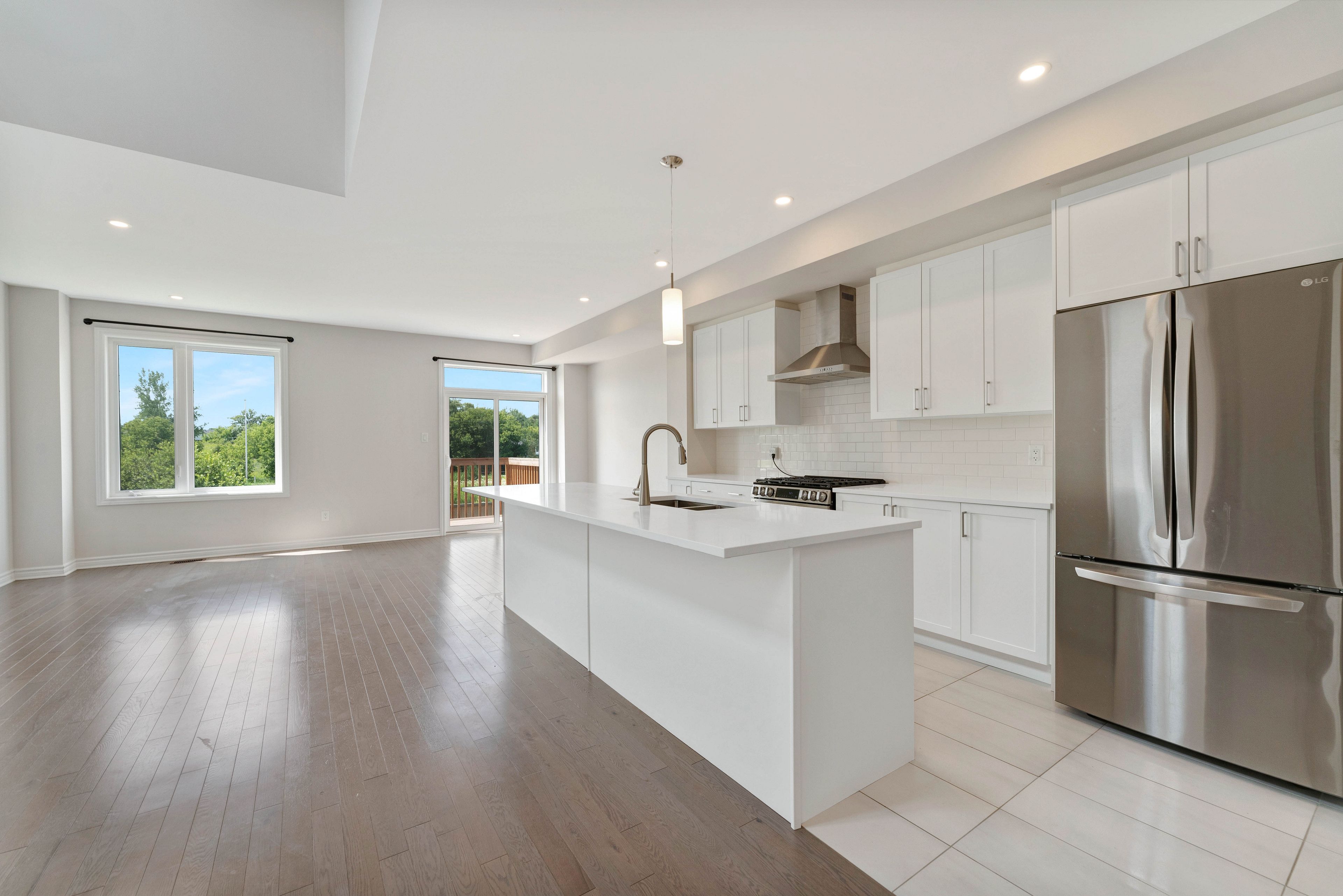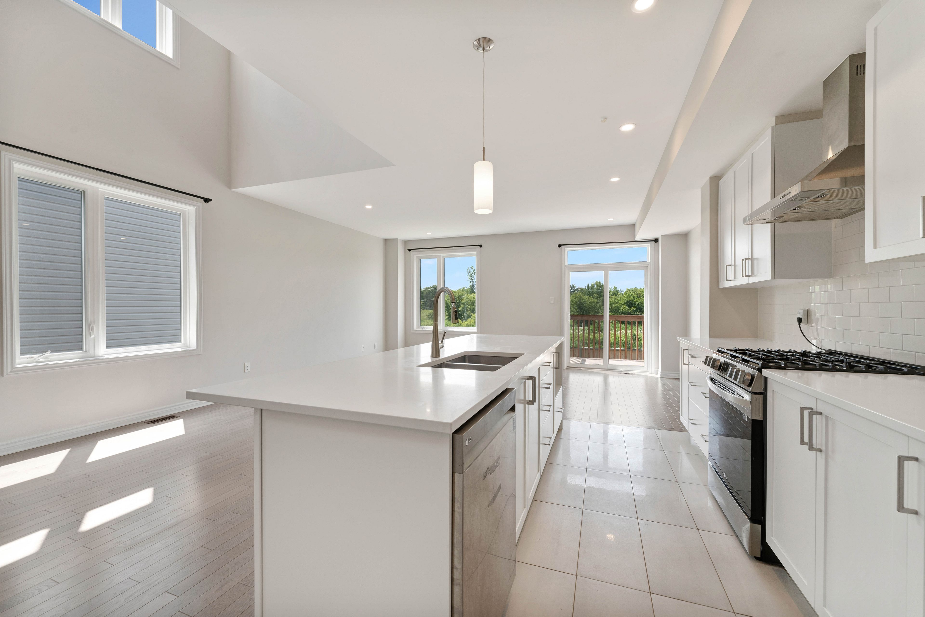 Gorgeous 3 bedroom, 3 bathroom end unit townhome built in 2023 on a premium lot with walkout basement and no rear neighbours. This bright and spacious home features 9 ft ceilings on the main floor, engineered hardwood flooring in the living and dining areas, and a stunning open to above living space filled with natural light with a rear deck for views. The large modern kitchen offers upgraded cabinets, countertops, backsplash, chimney hood fan, lg gas stove, fridge, and dishwasher, perfect for everyday living and entertaining. The primary bedroom includes a walk in closet and a 4 piece ensuite bathroom creating a comfortable private retreat. The walkout basement adds additional living space with a completed rec room for entertainment and a rough in for a future bathroom. Located on a premium lot overlooking a conservation area with beautiful sunrise views, this home offers added privacy with no rear neighbours and is conveniently situated steps from the ottawa river, parks, schools, and local services in clarence rockland.