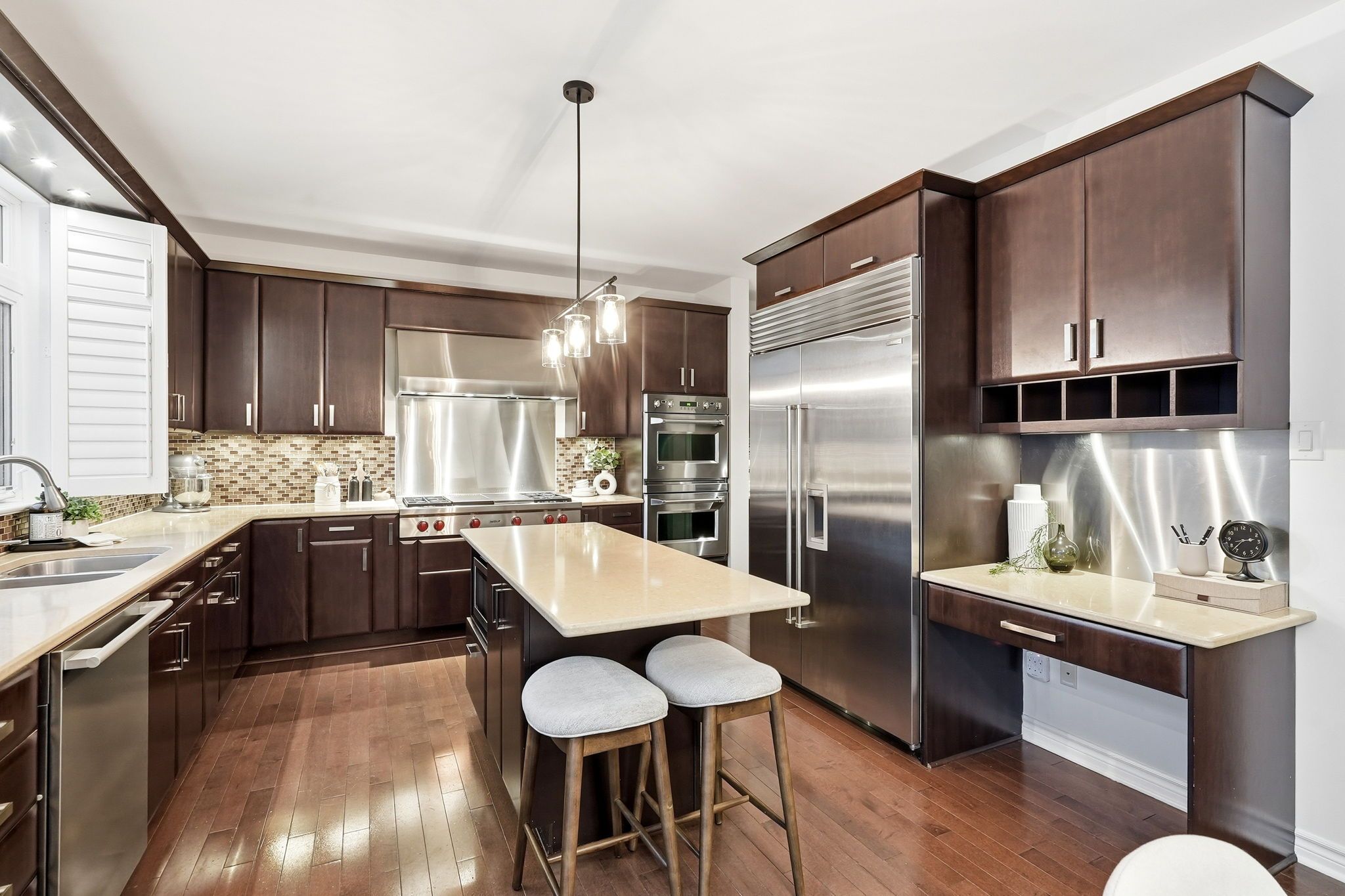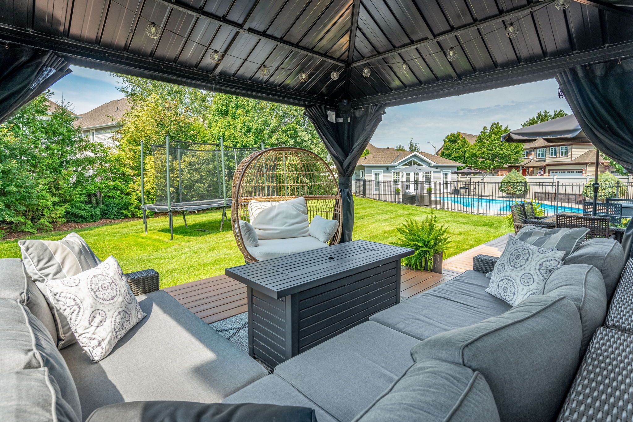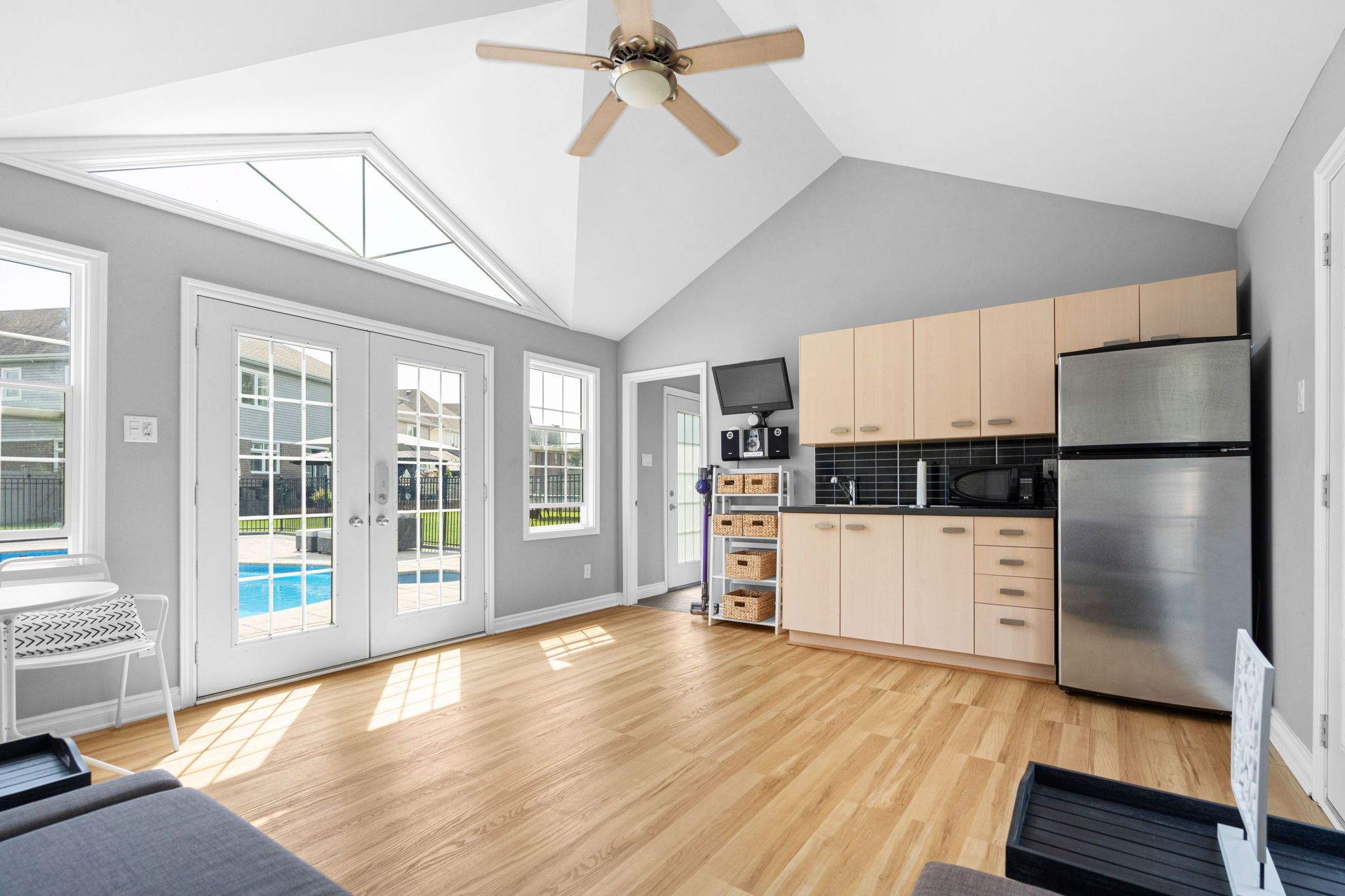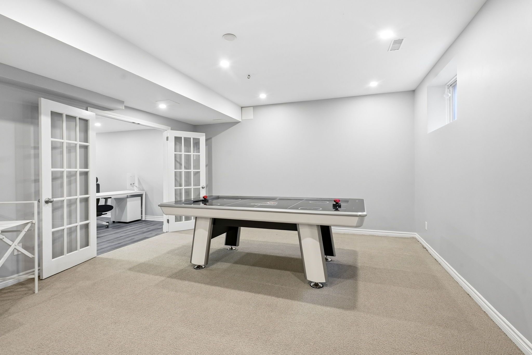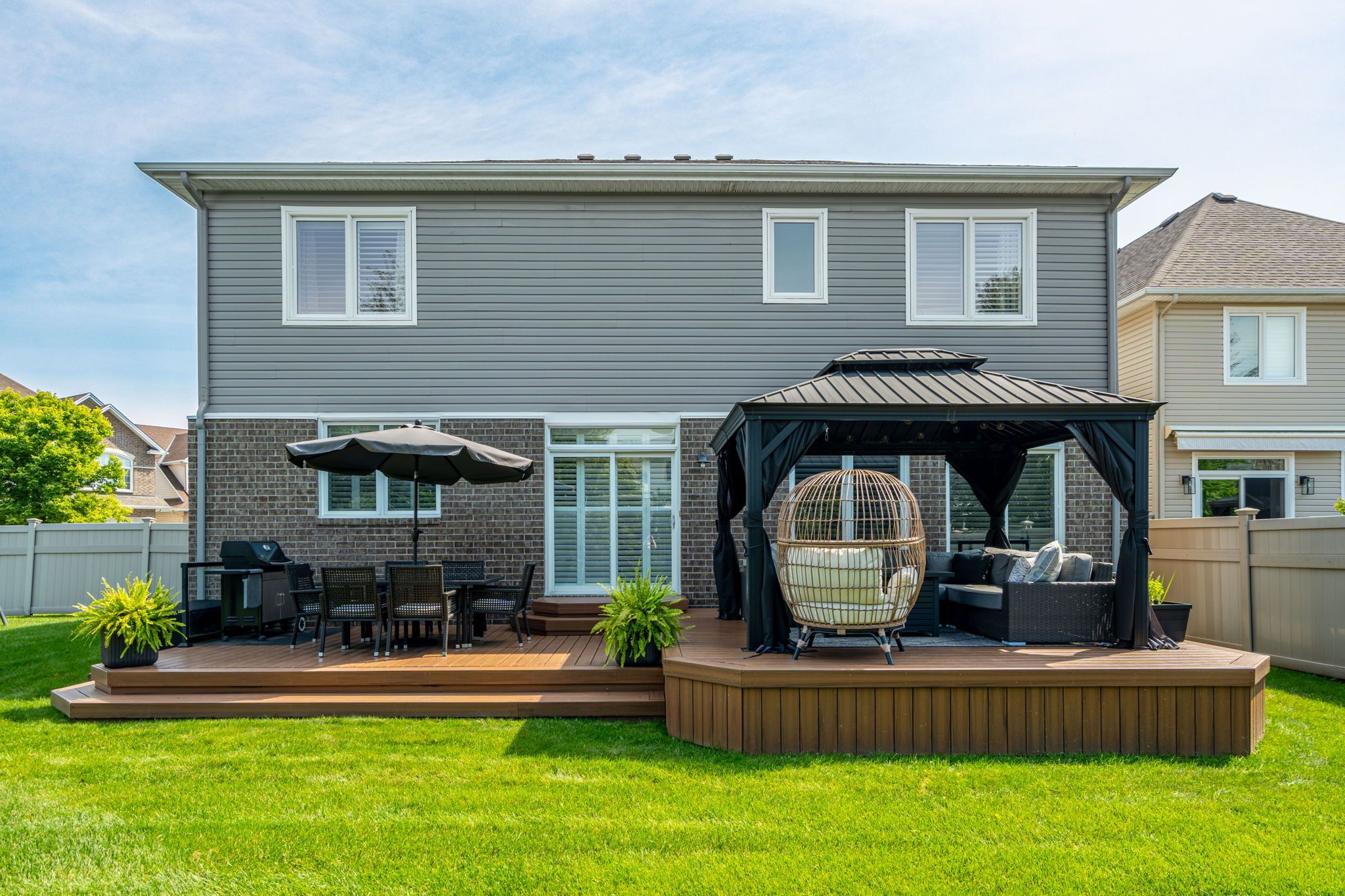 This extensively upgraded family home sits on the area's largest & most coveted lot & offers resort-style outdoor living. Elegant doors open to a tiled foyer & bright living room with hardwood floors & large windows. At the centre of the main floor, the formal dining room features california-style shutters & a modern chandelier, creating the perfect setting for gatherings. The large kitchen includes a large central island, premium stainless-steel appliances (sub-zero fridge, wolf range, miele dishwasher, ge monogram double oven), a butler's pantry, & a walk-in pantry, complete with a built-in freezer. A sleek powder room & a functional mudroom (2016) off the garage with built-ins complete the level. Upstairs are 4 bedrooms & a loft ideal for an office or a cozy living area. With large windows, the bright primary bedroom offers a walk-in closet with built-ins & a spacious ensuite with double vanities, a soaker tub, glass walk-in shower, & a dedicated makeup area. Three additional bedrooms, each featuring walk-in closets, with one enjoying its own 4-piece ensuite. A well-appointed 5-piece bathroom & a large laundry room with cabinetry, folding counter, utility sink, & modern appliances add family-friendly convenience. The lower level (2015) boasts a versatile recreation room with recessed lighting, perfect for media, games, or fitness, double french doors to a dedicated office, & a large unfinished storage room. The showstopping backyard features a two-tier composite deck (2014) with dining & lounging zones & a sleek gazebo with an integrated bug net under the deck. The expansive, fully fenced yard offers exceptional privacy, an in-ground pool with iron rod fencing, surrounded by a custom stone pool deck, & an insulated pool house with a full recreation room, 3-piece bathroom, & a kitchenette. Located in findlay creek, this home offers great walkability to parks, pathways, schools, amenities, & quick access to bank street, leitrim road, & the airport parkway.