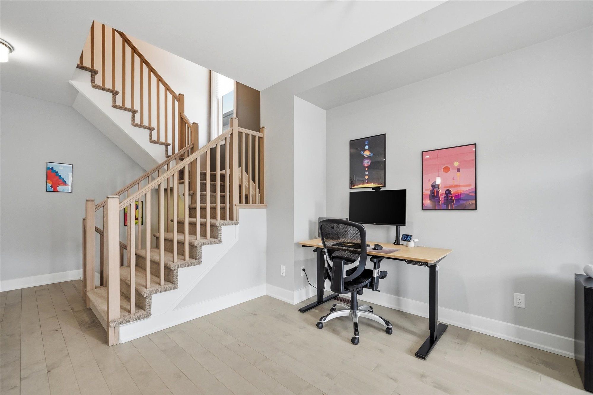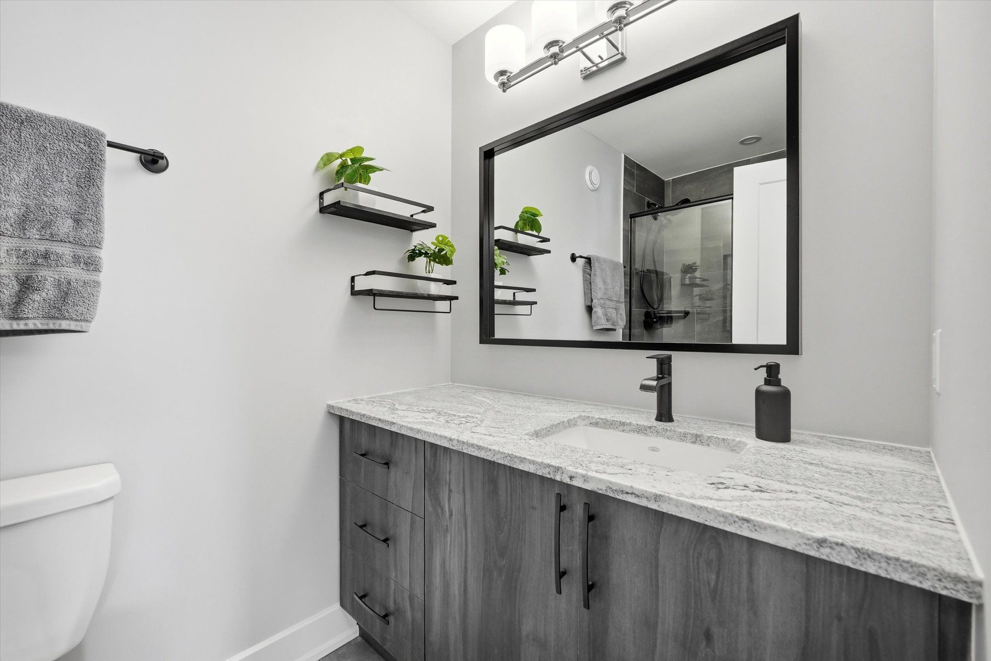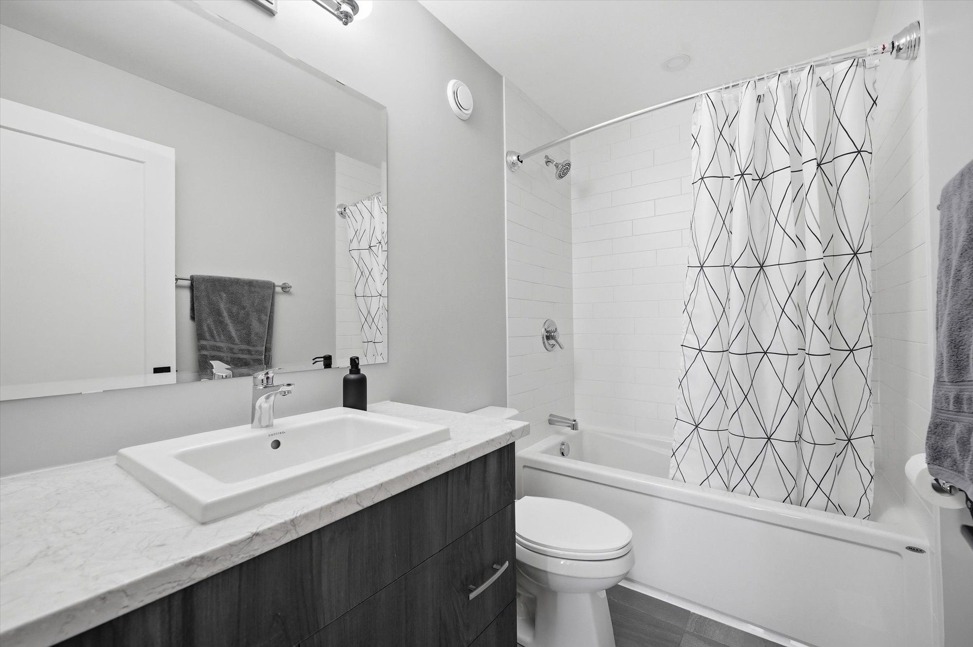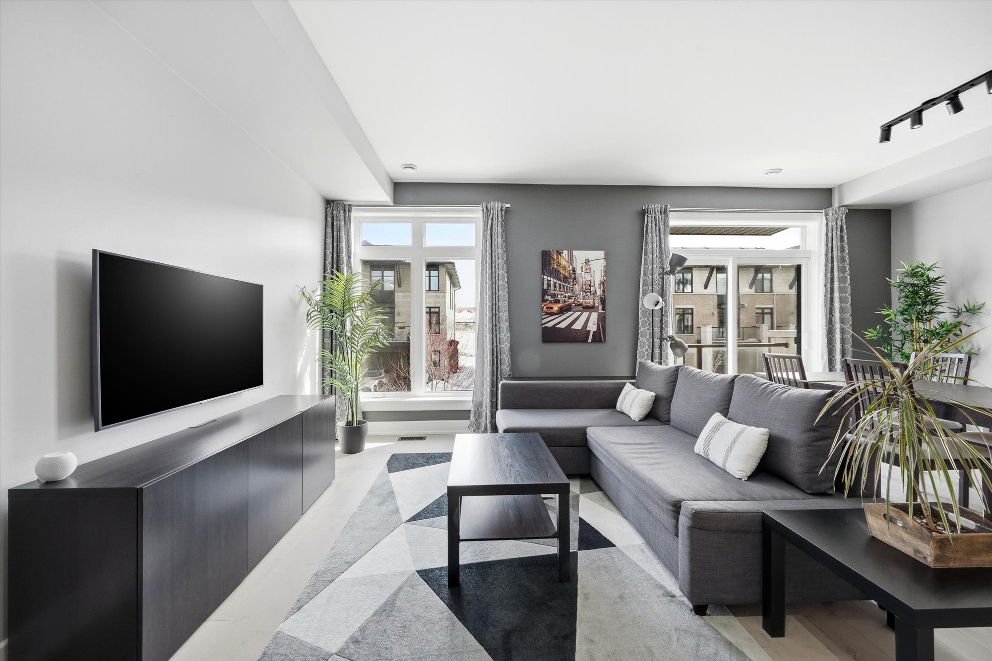 Welcome to this beautifully designed tamarack ashton - a end-unit freehold townhome offering 2 bedrooms, 3 bathrooms and a basement, this stylish home blends modern finishes with a practical layout ideal for everyday living. Arrive to a private driveway with space for two vehicles before stepping inside to the inviting main level featuring 12" x 24" tile flooring, inside access to the garage, and a sleek powder room. Head up to the second level where the bright open-concept living space unfolds with gleaming maple hardwood flooring throughout. The stunning kitchen is both functional and eye-catching, showcasing white shaker cabinetry, granite countertops, stainless steel appliances, microwave hood fan, soft close cabinets & drawers, under cabinet lighting, a walk-in pantry, and a spacious island with seating. The kitchen flows seamlessly into the dining and living areas, all illuminated by large patio doors that lead out to a private balcony and allow natural light to pour in. The upper level offers comfortable sleeping quarters including a spacious primary retreat complete with a generous closet and a stylish 3-piece ensuite with upgraded glass shower, granite counters and soft-close cabinet/drawer. A second well-proportioned bedroom, a full bathroom, and a convenient laundry room with additional storage complete this level, along with a large linen closet for added practicality. The basement provides excellent storage space. Set on a quiet street in a desirable neighbourhood, this home enjoys easy access to the highway, nearby lrt, and is just minutes from shopping, dining, parks and everyday amenities. A fantastic opportunity to own a modern, low-maintenance home in a prime location.