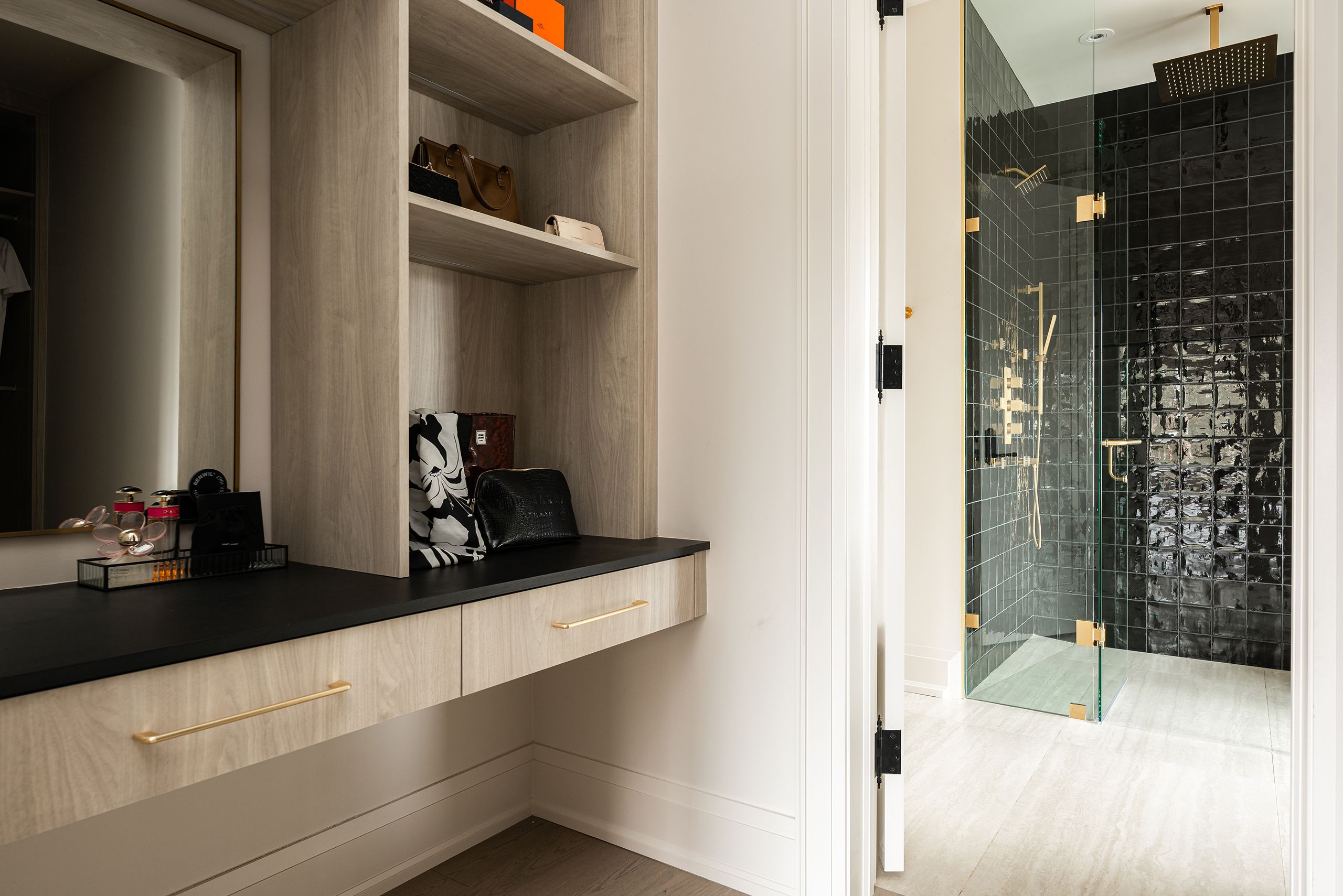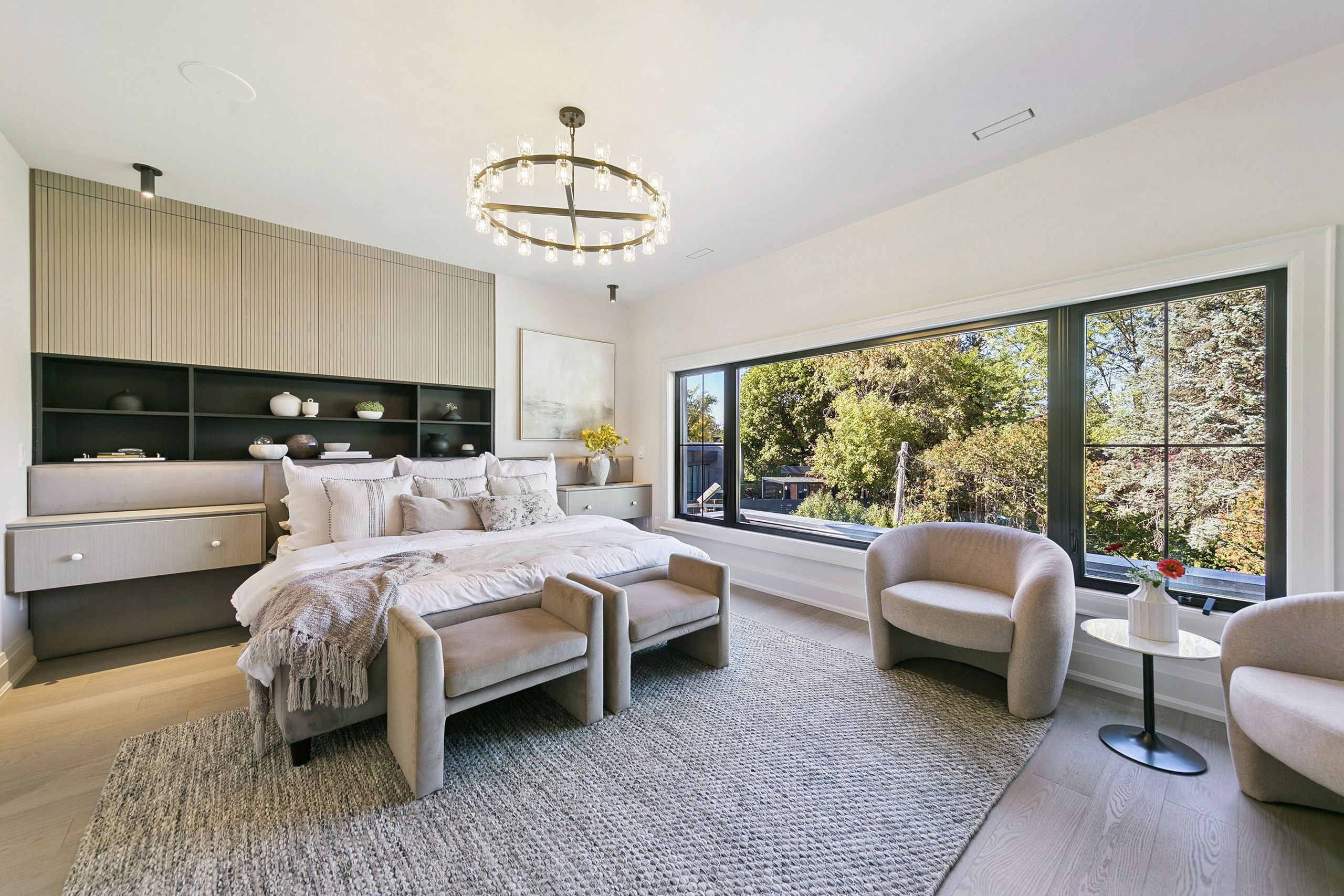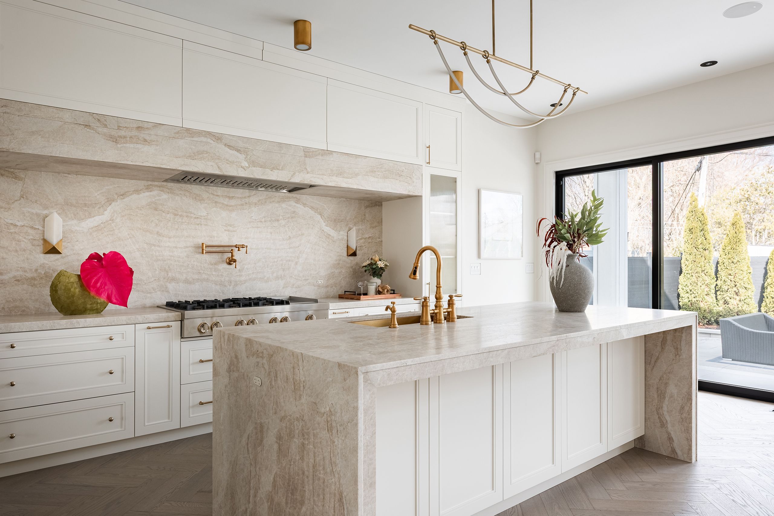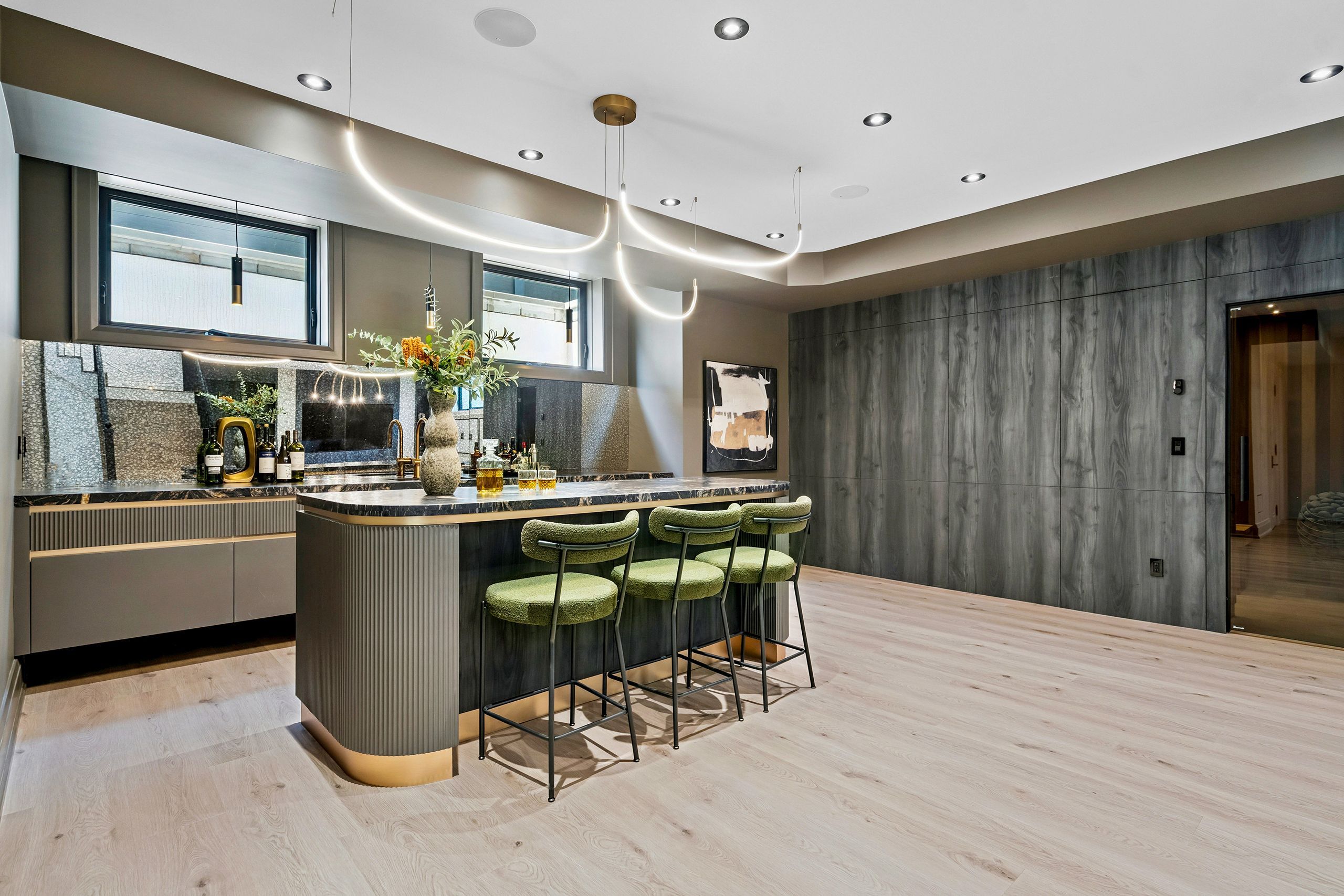 • Luxurious finishes throughout including custom cabinetry and hardwood herringbone flooring.