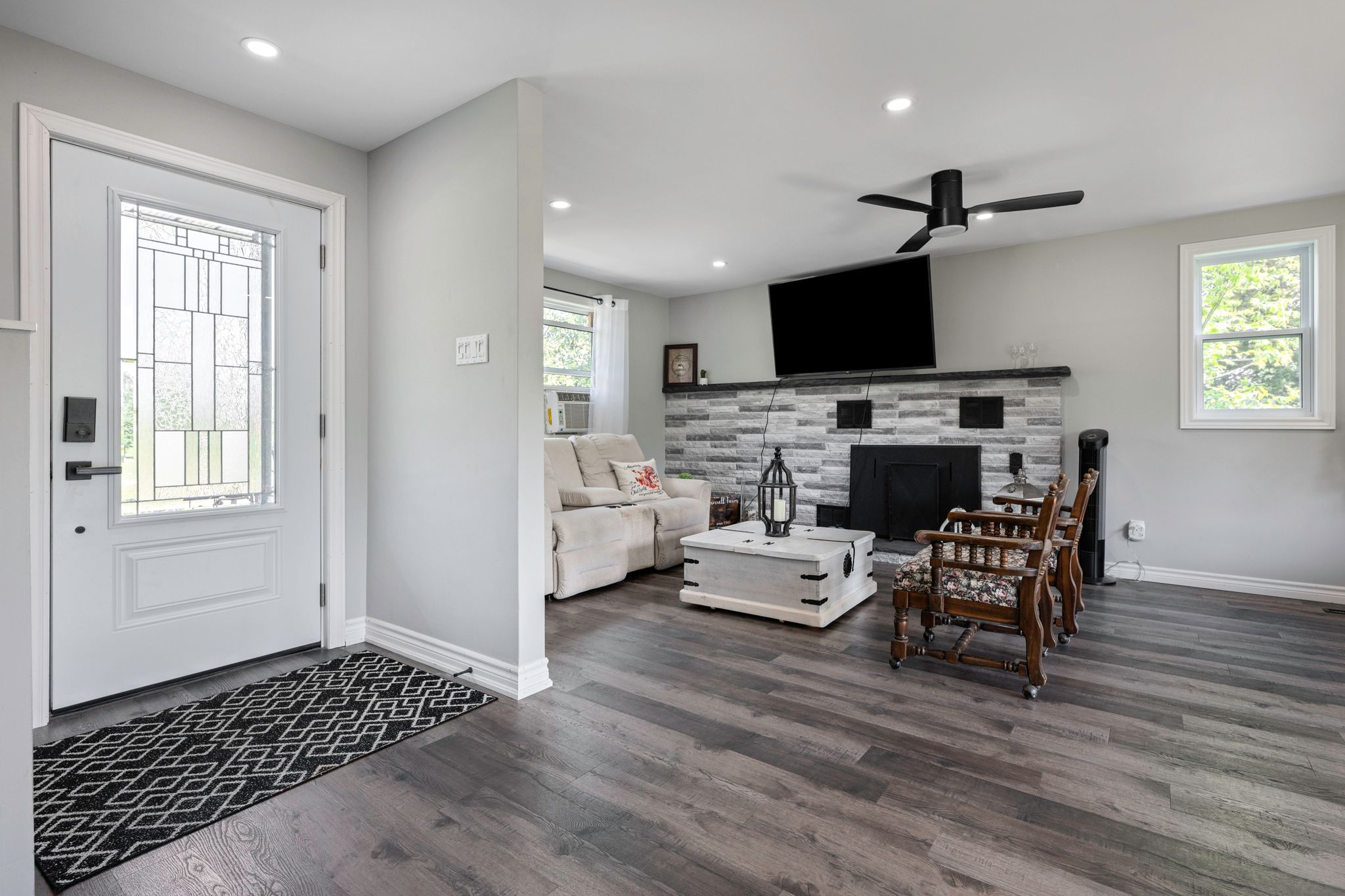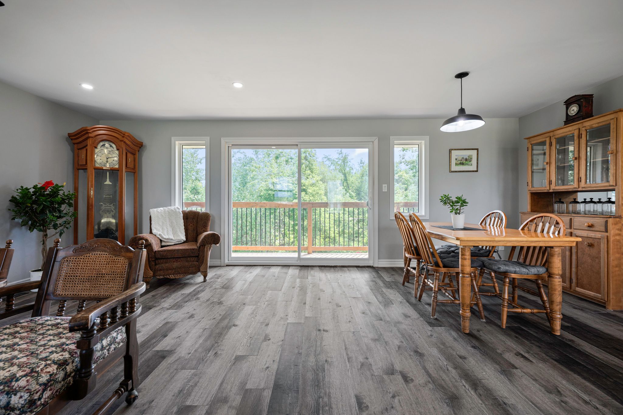 This is the country property you've all been waiting for. This updated bungalow sits on approximately 9. 2 acres of beautiful countryside. The open concept main floor with eat in kitchen, living room and dining room with a walk out to the new raised deck, has been updated with new flooring, ceilings, electrical fixtures and more. With a main floor primary bedroom and office, and three more bedrooms in the walk out basement, this home is perfect for everyone. New windows and doors through out, as well as new vinyl siding, new steel roof, and new soffit, facia and eavestrough. Bring your ideas to update the basement and make this home your new oasis. Outside you'll find a 25x14 foot work shop with hydro, along with multiple sitting areas to relax and unwind. A power outlet near the trees allows for outdoor entertainment, or rv hook up when friends and family stop by on their cross country tour! Enjoy groomed pathways, large, mature trees and your own creek winding through the land. This is one you don't want to miss.