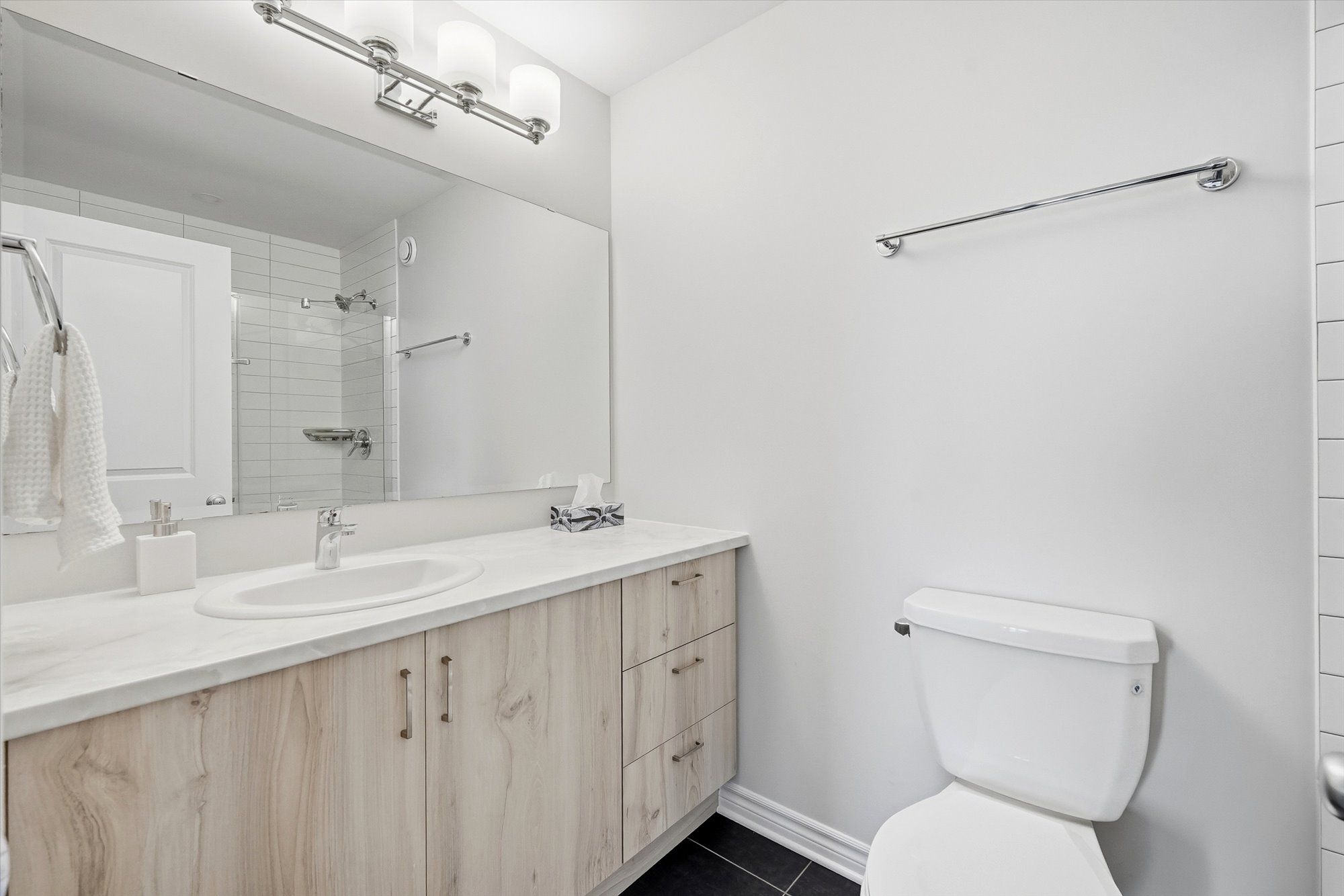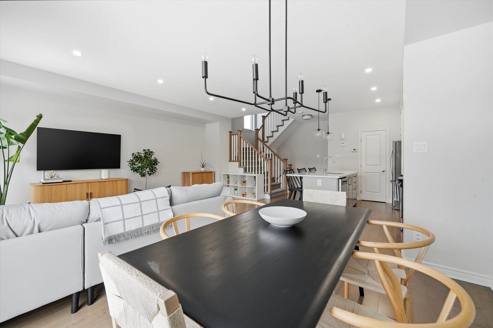 • Open-concept main floor with stylish tile and hardwood flooring.