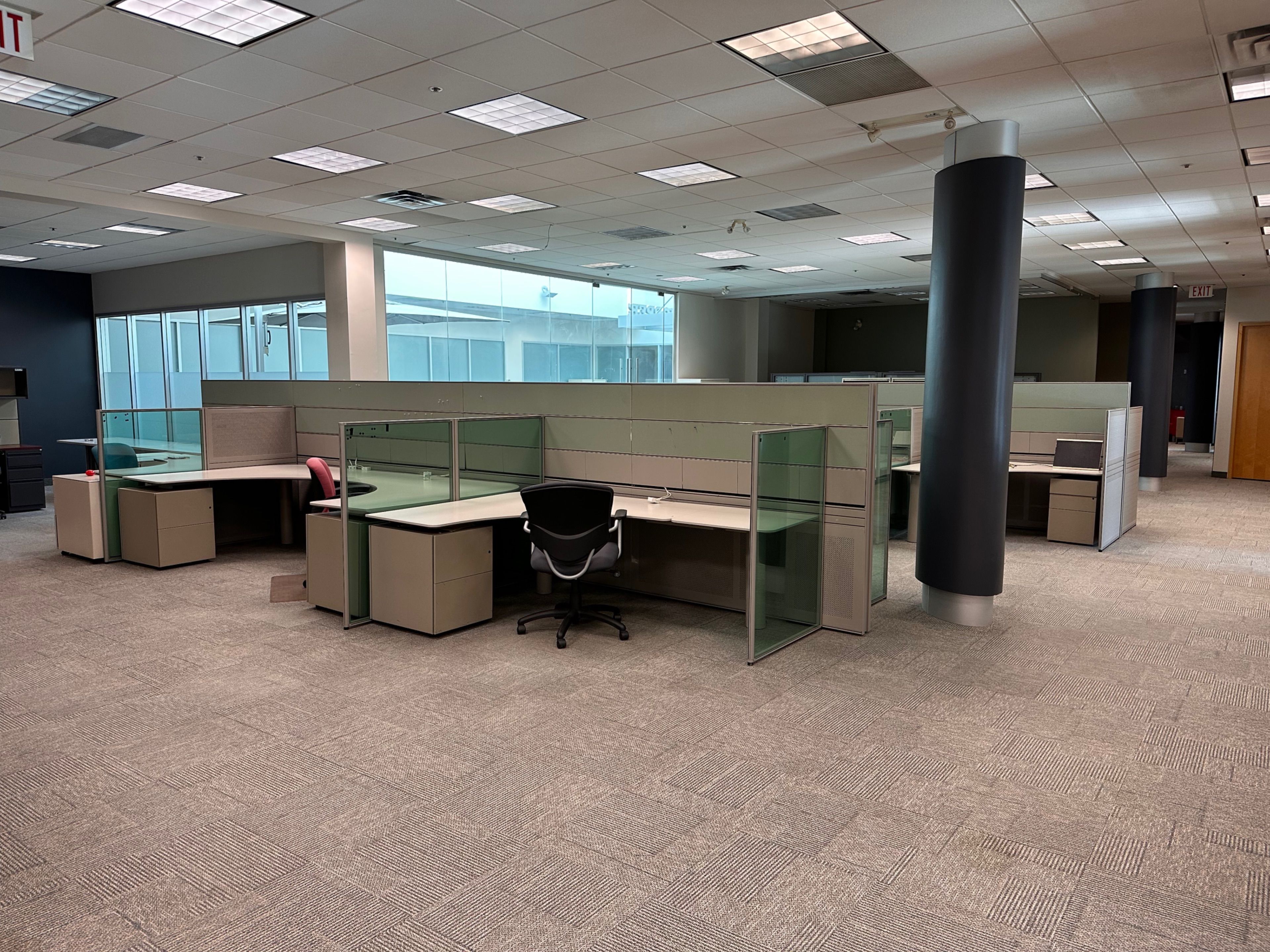 • Combination of open areas and private offices available.