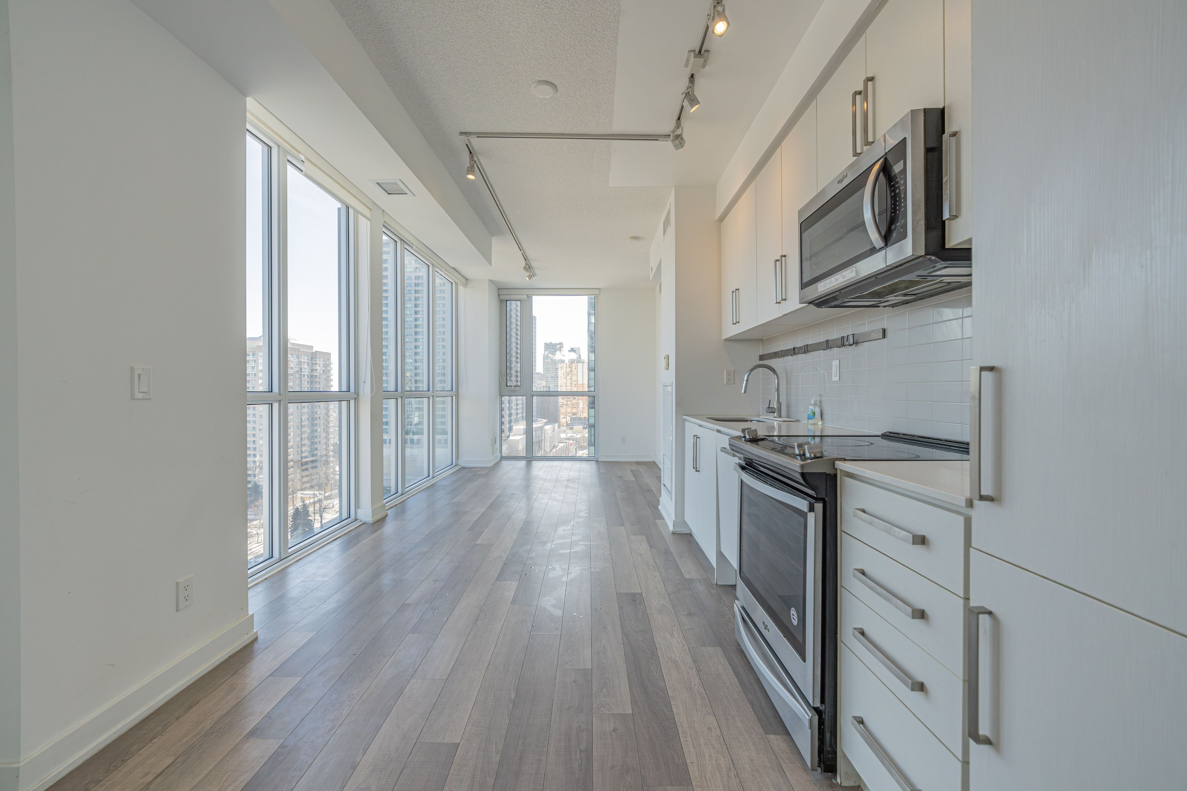 Welcome to this stunning, sun-filled corner suite, offering a spacious open-concept design with a split 2-bedroom, 2-bathroom layout. Enjoy stunning, unobstructed southeast views through 9' floor-to-ceiling windows that flood the space with natural light. Conveniently located with underground access to the subway, empress walk mall, loblaws, shoppers drug mart, and the ny public library. Top-rated schools, banks, restaurants, and cafes are all just steps away, with easy access to the 401 ramp just 2km away. With $20k in upgrades, the suite features smooth ceilings, custom kitchen cabinets and vanities, luxurious marble backsplash, under-cabinet valance and lighting, and a frameless glass shower enclosure with marble wall tiles in the unsuited. The primary bedroom also features a spacious custom closet. With1 underground parking space and 1locker units, you'll have ample storage and convenience. This is the perfect place to call home move in and experience urban living at its best! **extras** enjoy beacon condos' luxurious amenities, including a 24-hour concierge, party and billiard room, gym, theater, outdoor terrace, guest suites, and more.