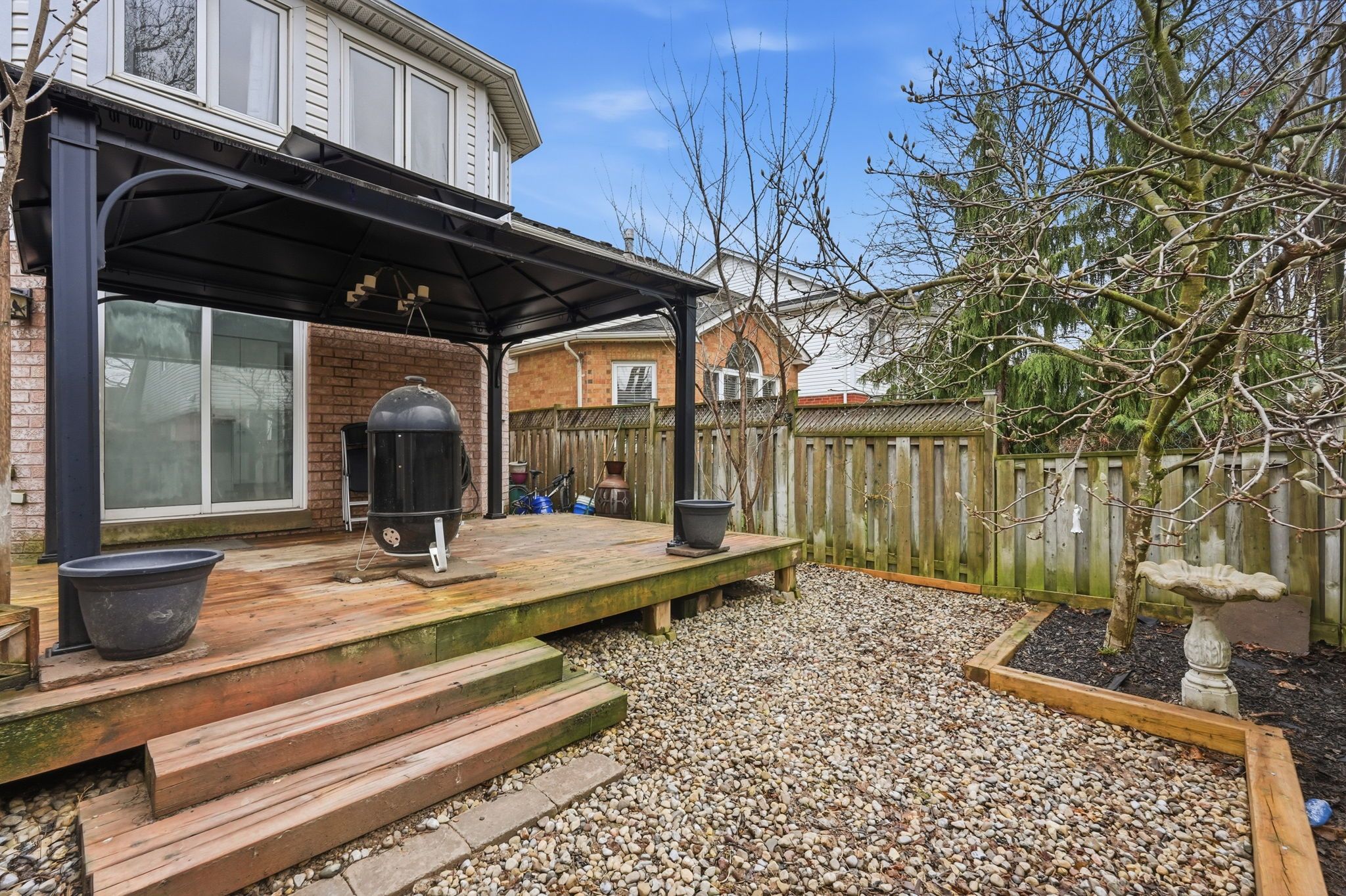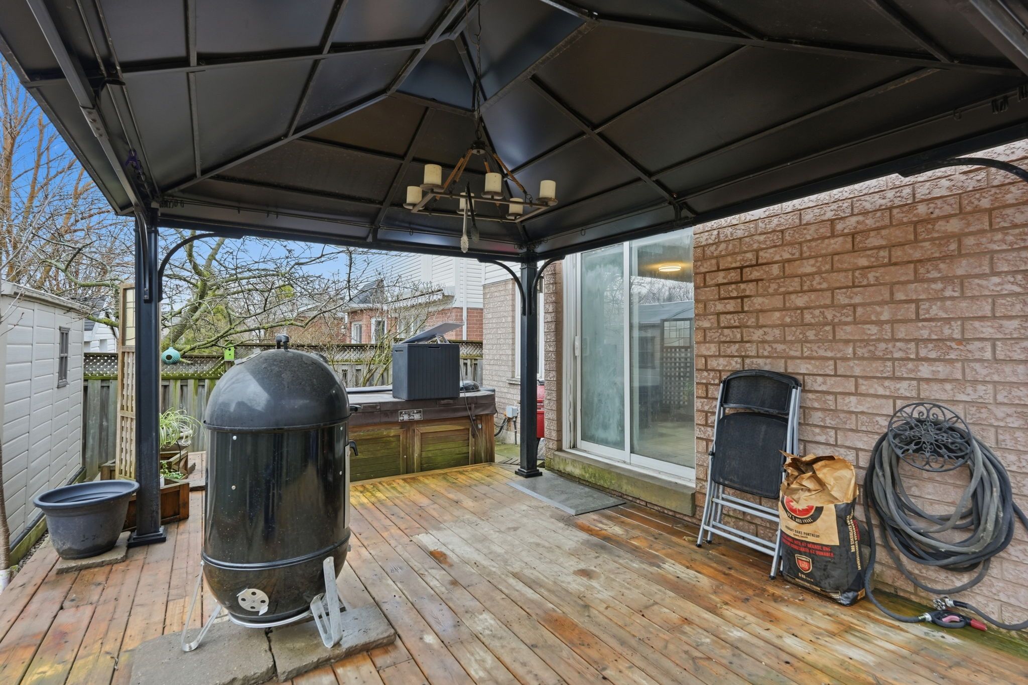• Kitchen opens to a deck, gazebo, and hot tub for entertaining.