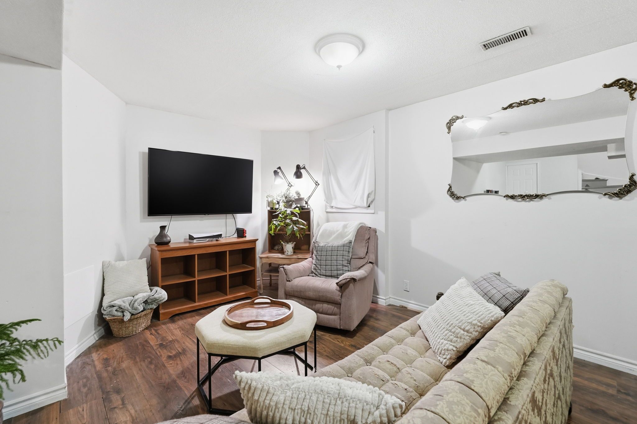 • Fully finished basement with a rec room and fifth bedroom.