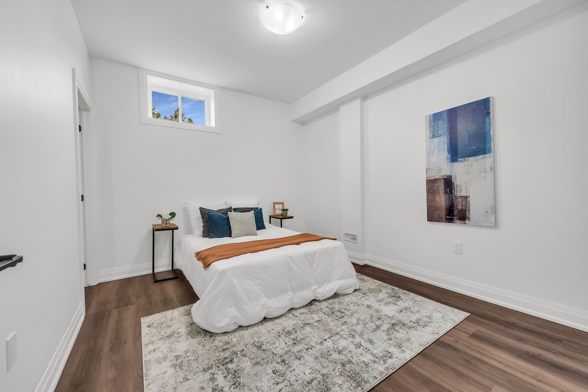 • Bright interior with 9 ft ceilings and hardwood flooring throughout.
