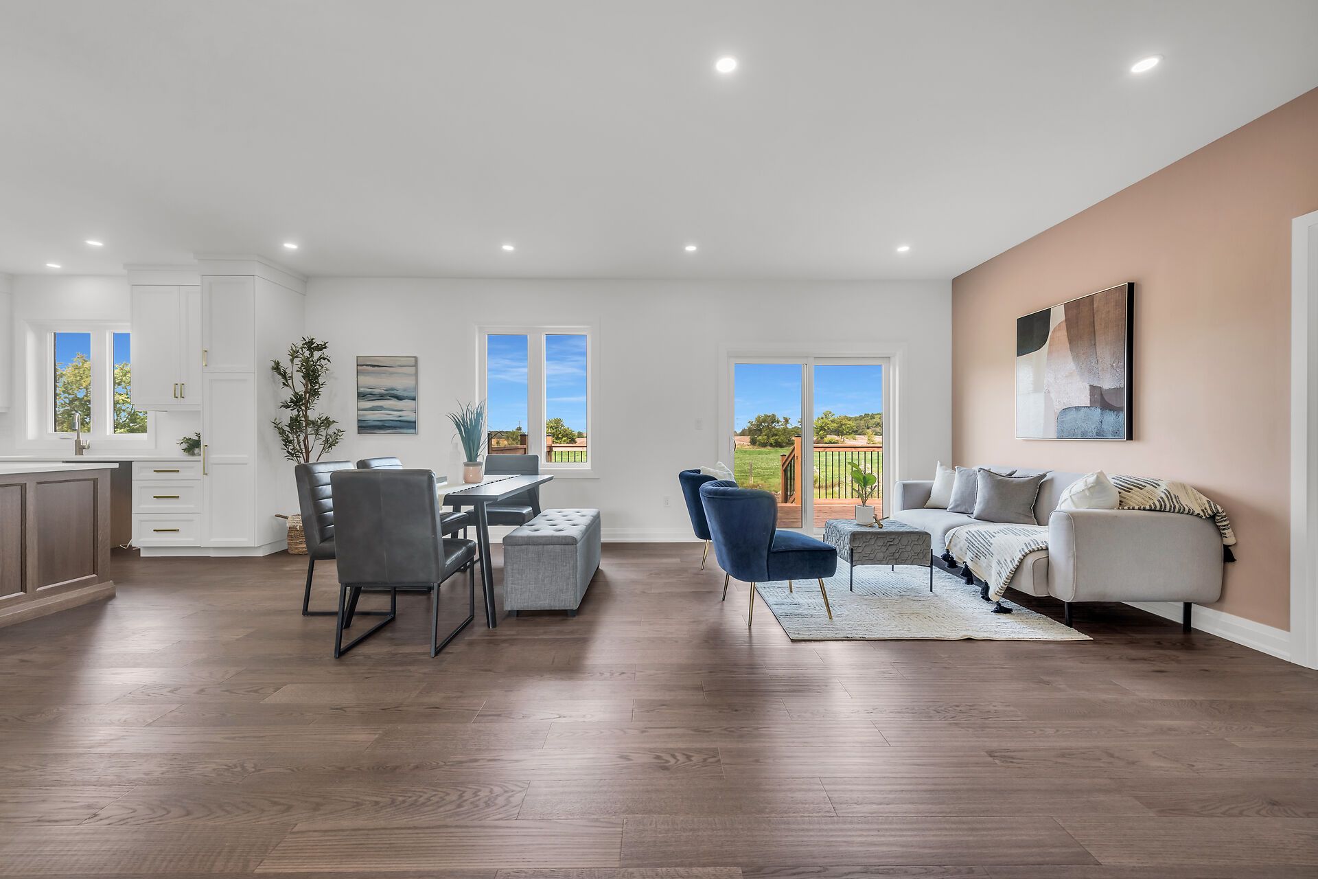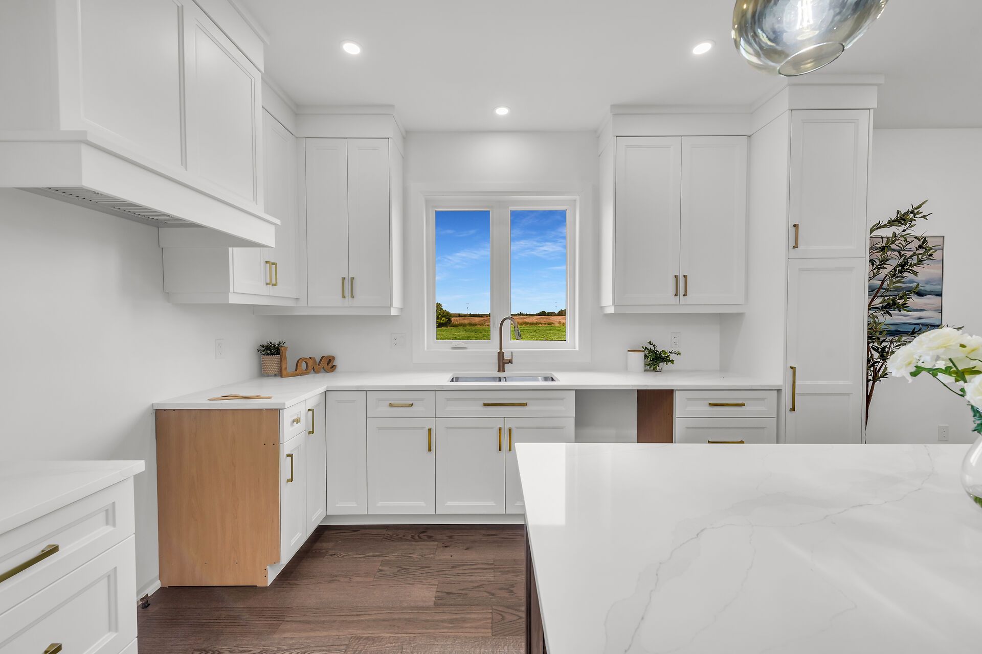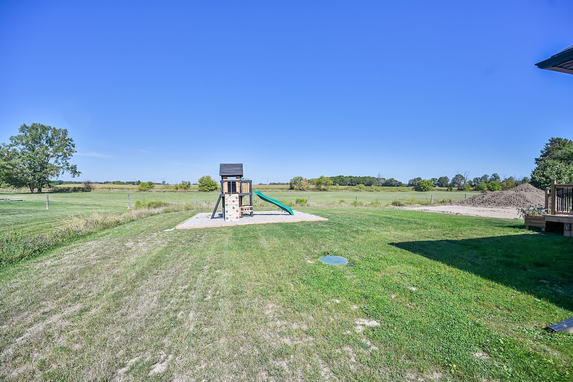 • Custom built bungalow on a large 98 x 200 lot with country views.