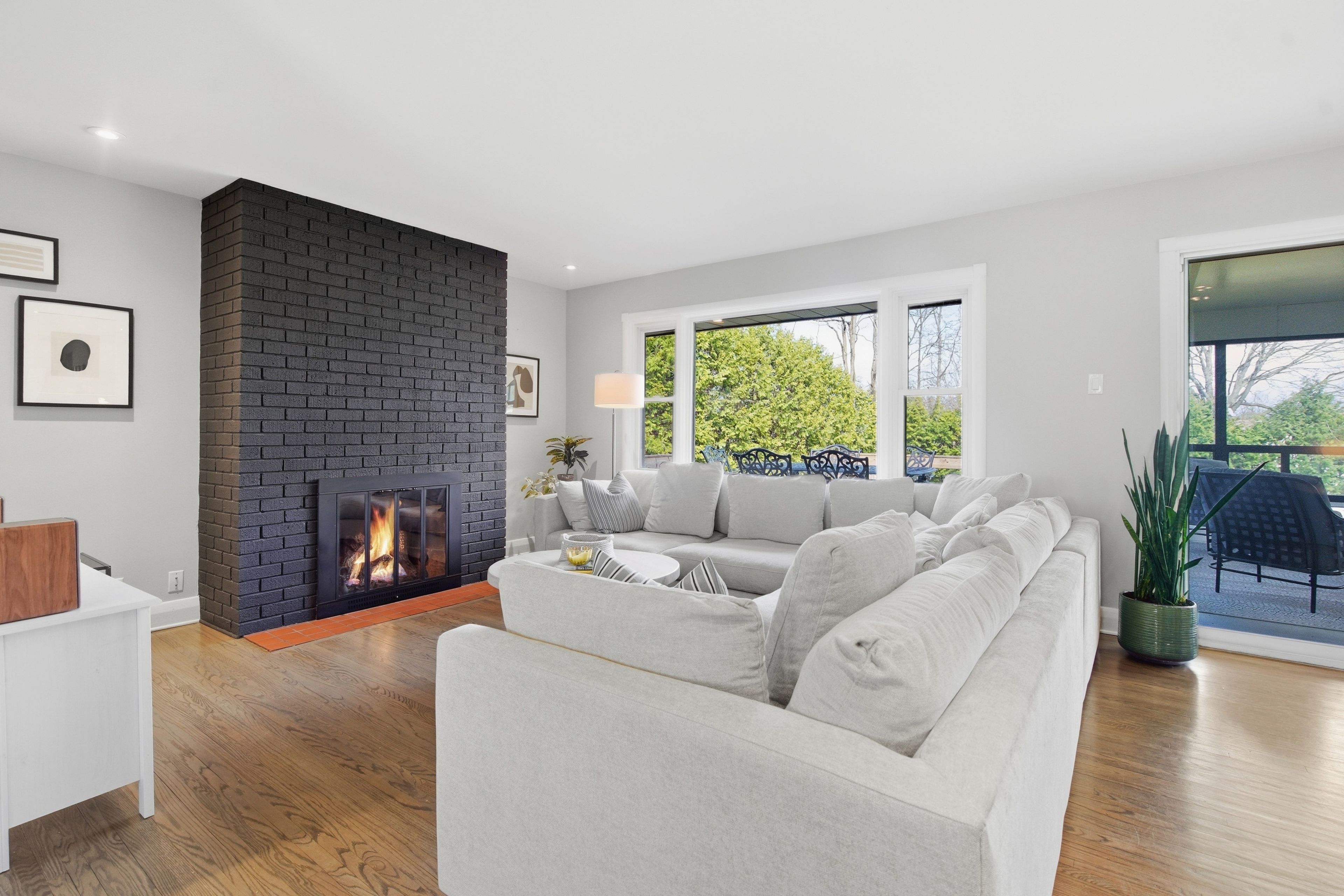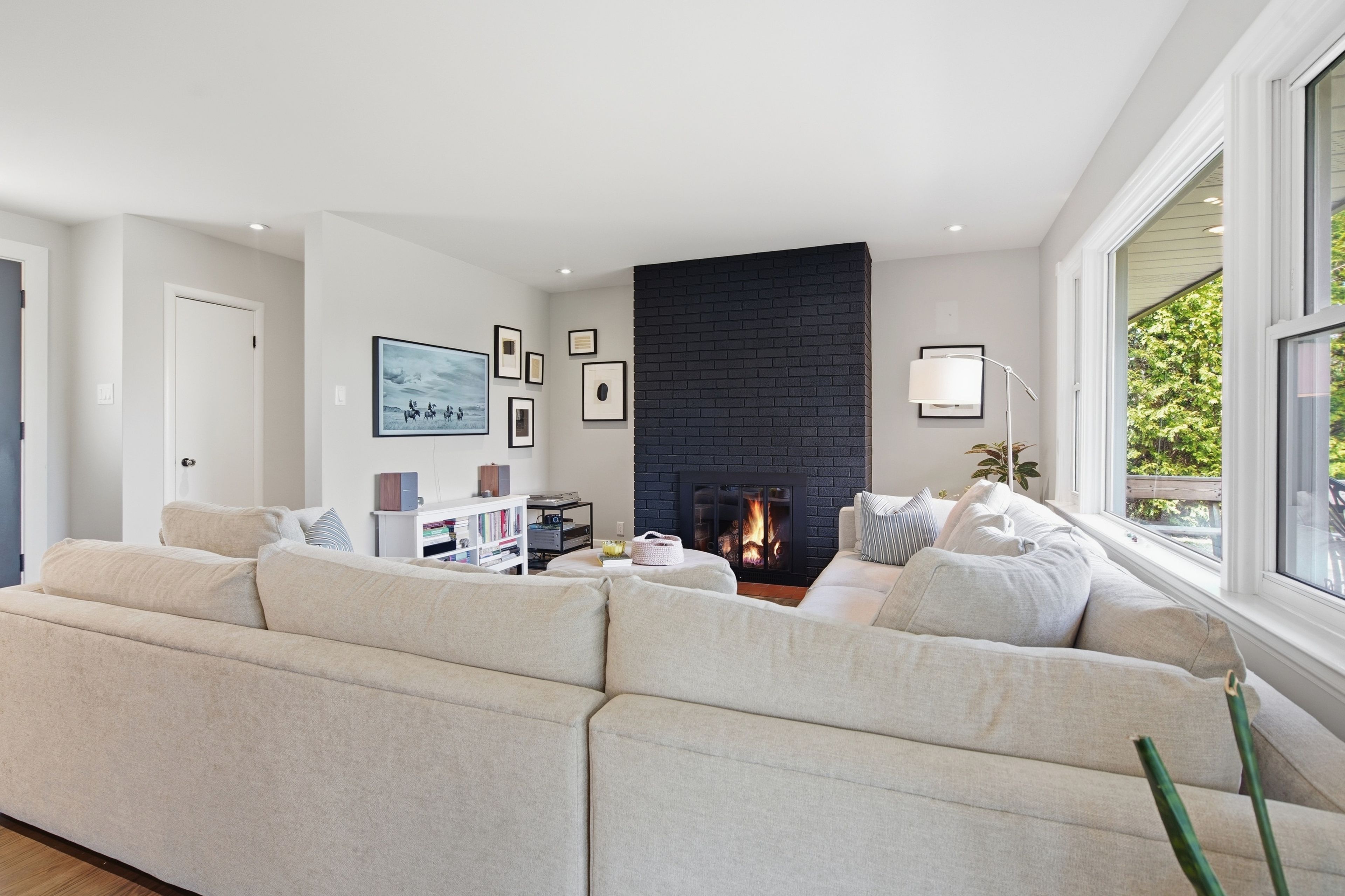 • Bright living room with a gas fireplace, perfect for cozy gatherings.