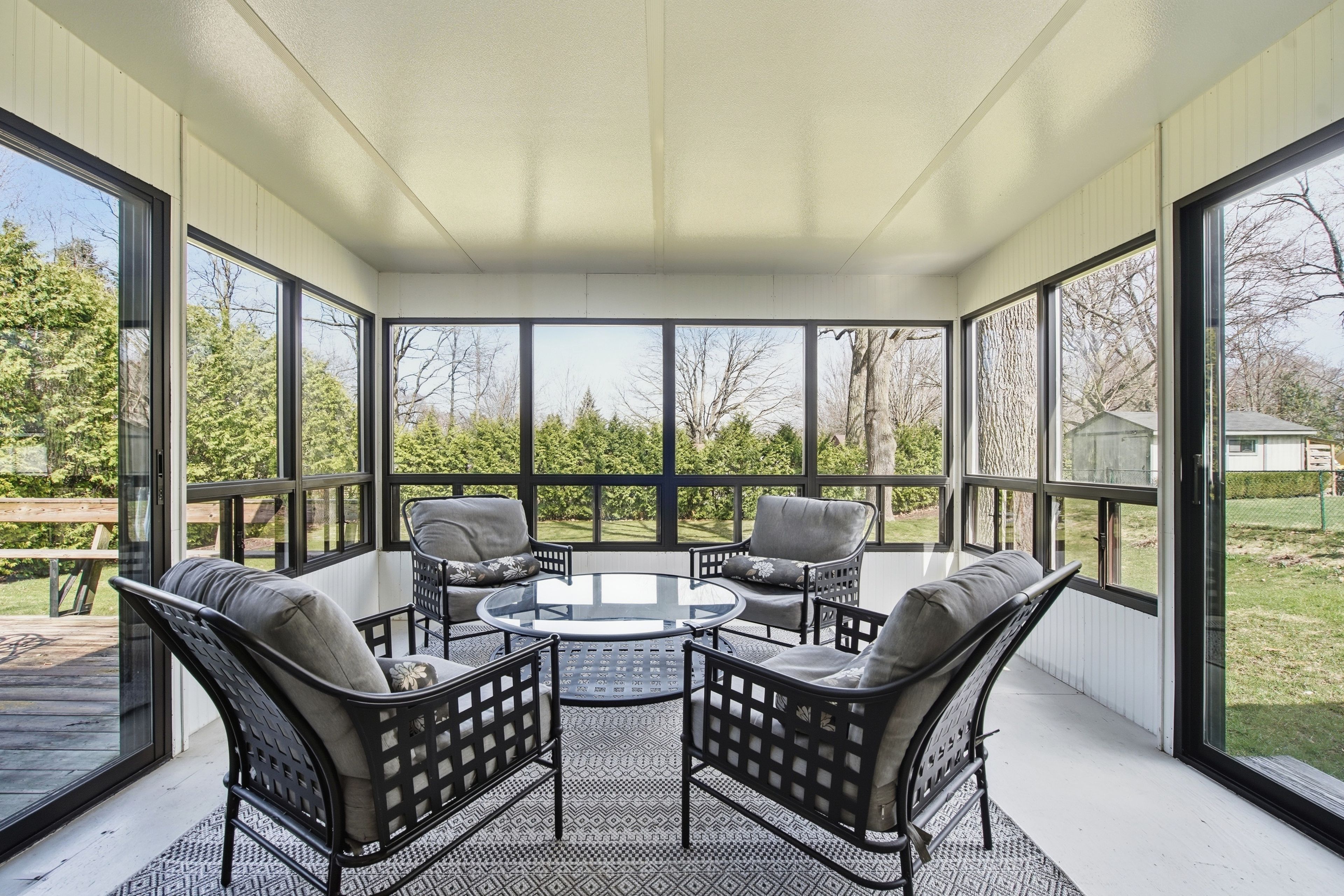 • Seasonal sunroom for entertaining, leading to a landscaped backyard.