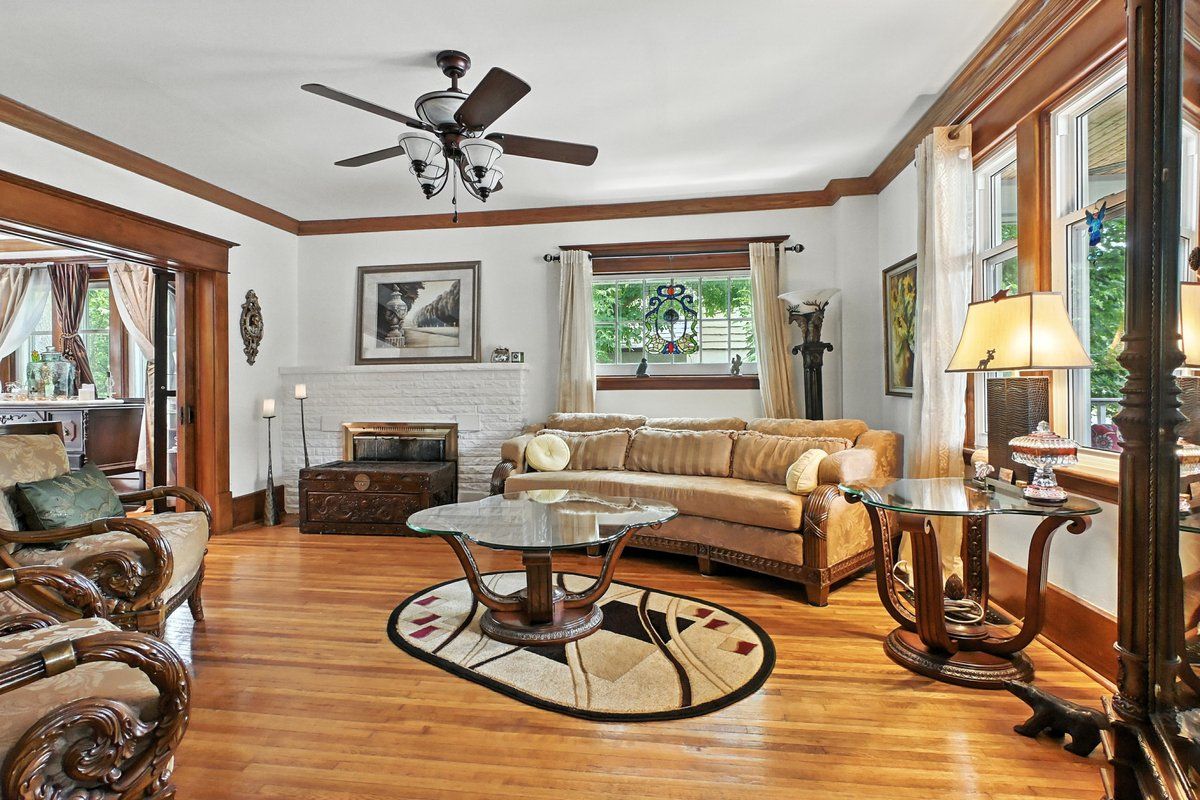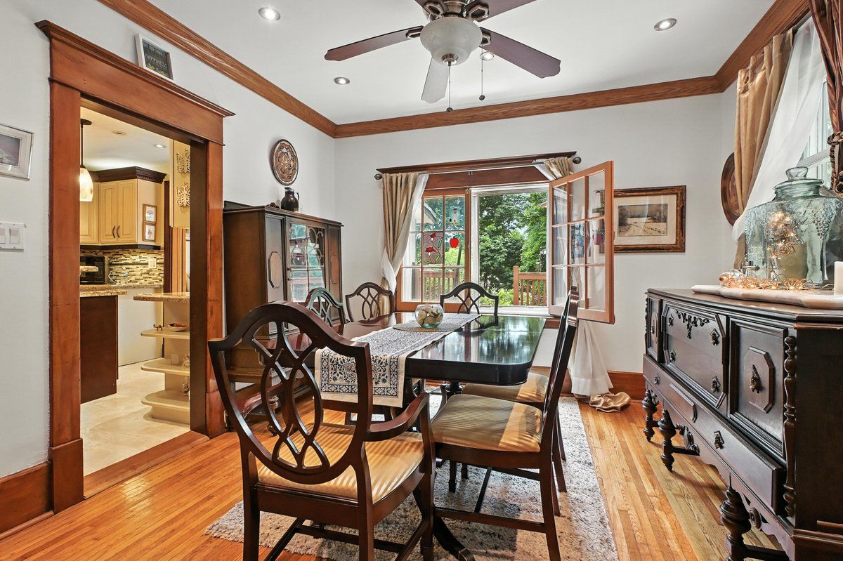 • Original hardwood flooring enhances the warmth of living and dining spaces.