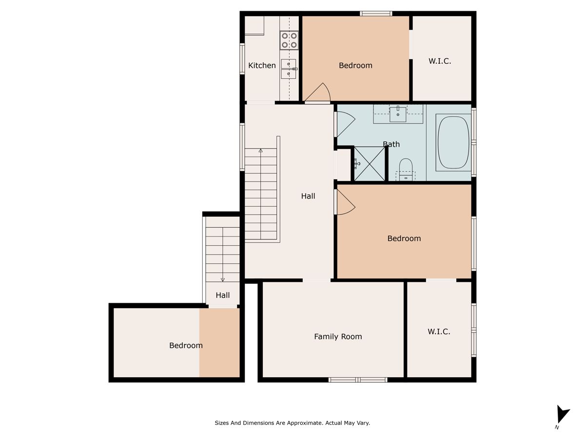 • Spacious upper level with three bedrooms and a convenient kitchenette.