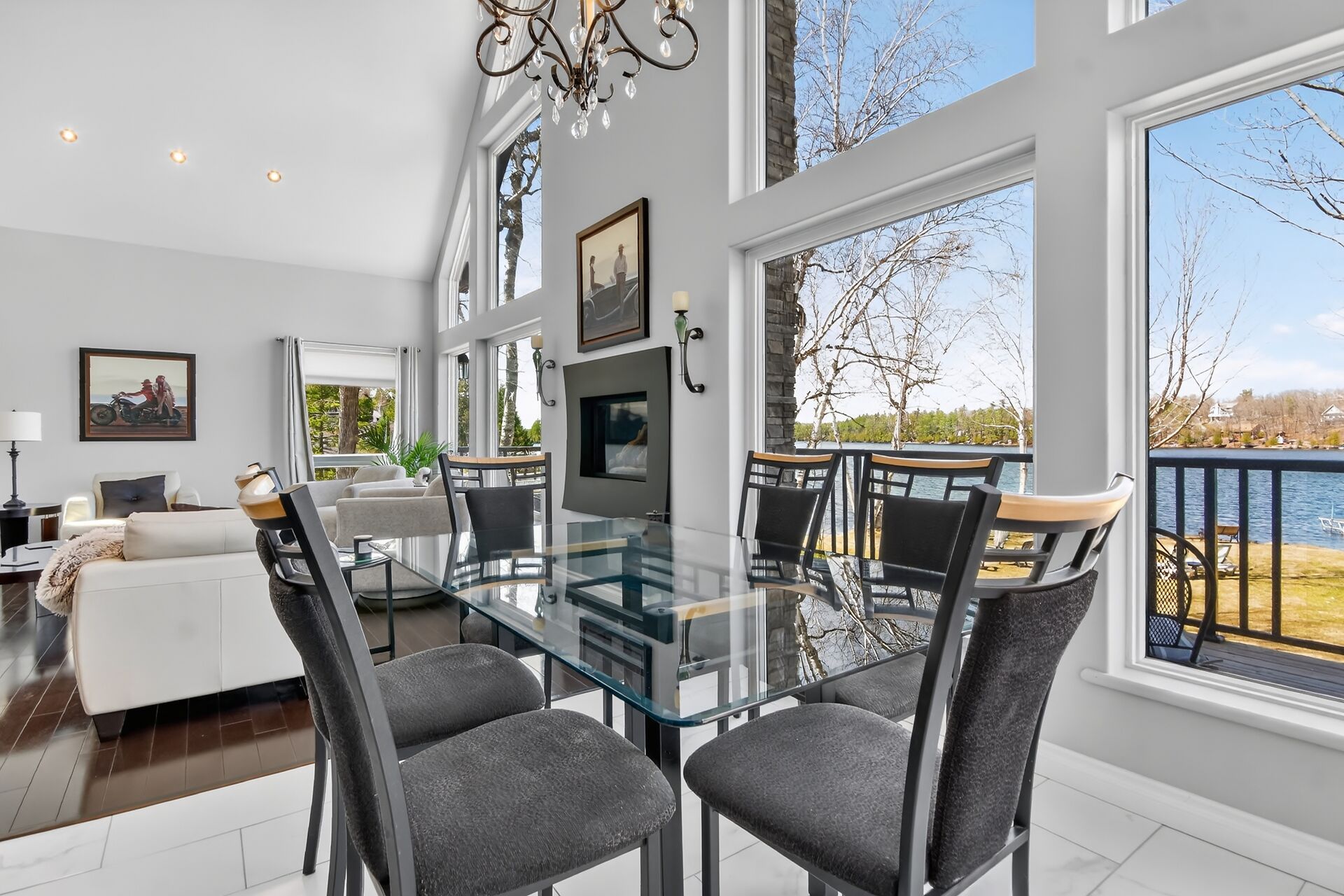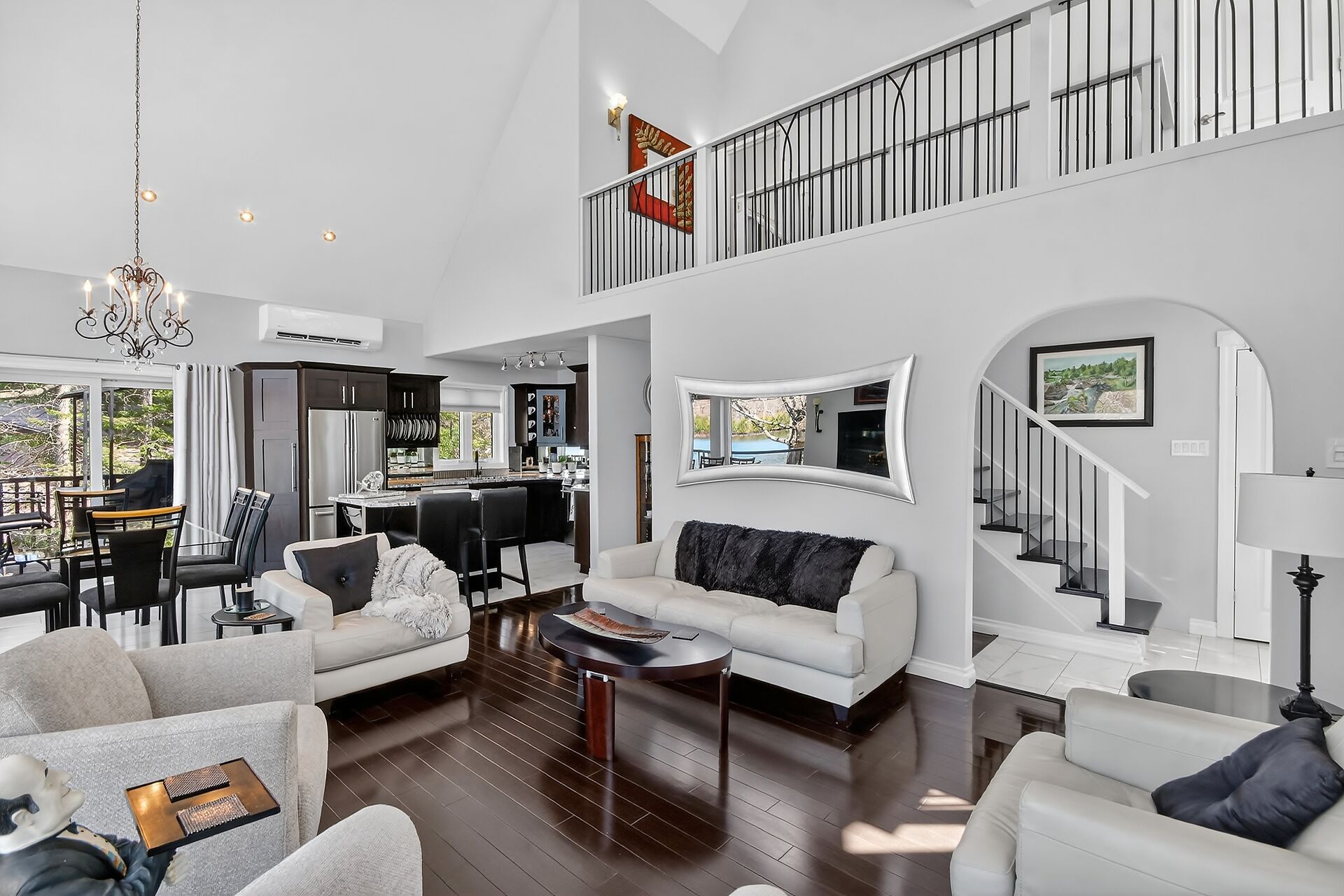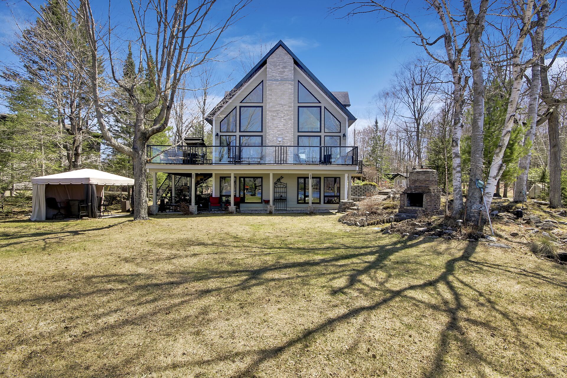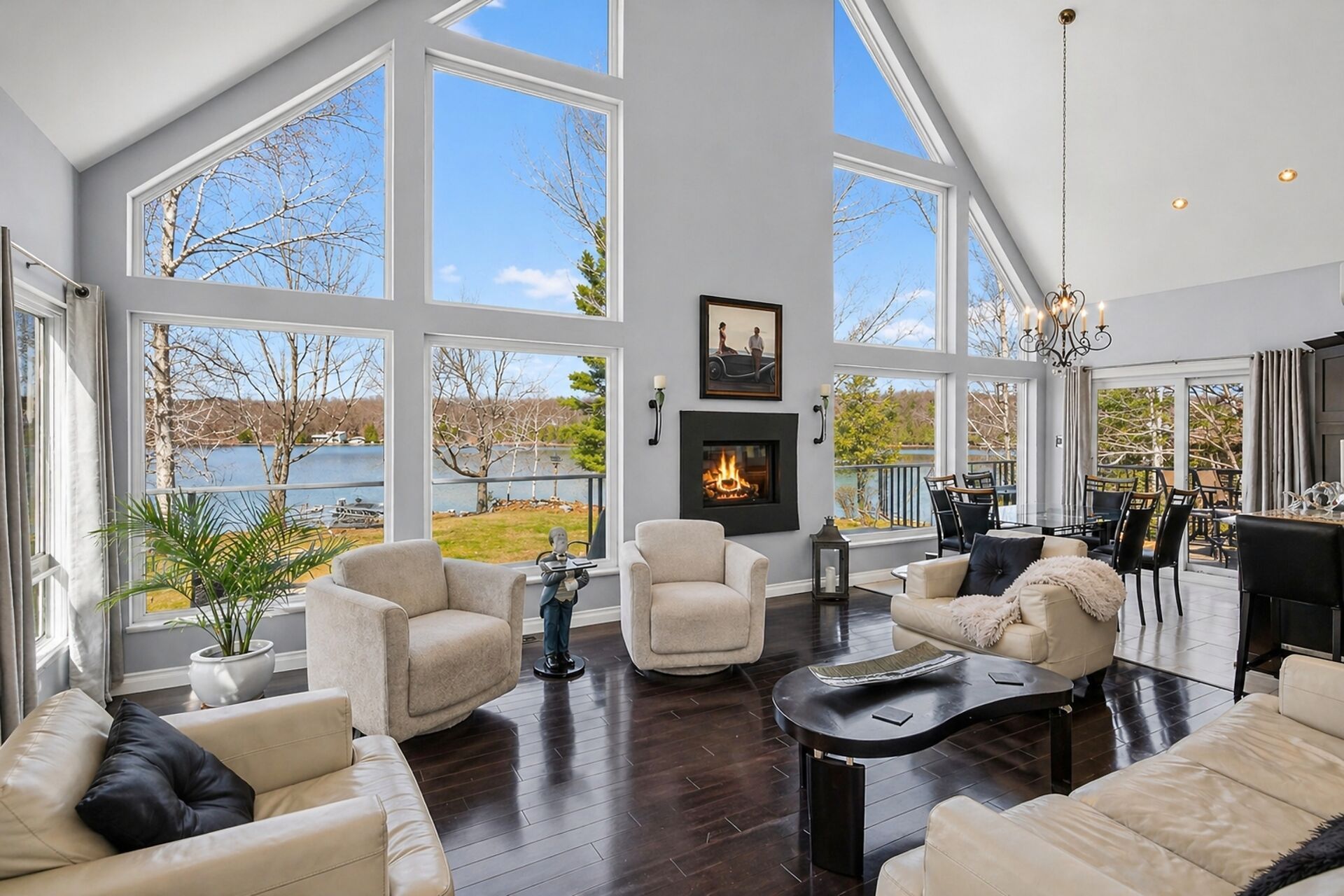 Escape to the perfect blend of home and cottage living at 519 parsons lane, nestled in the scenic beauty of lanark highlands. This exceptional waterfront property offers effortless access to the water and stunning western exposure, delivering breathtaking sunset views from the expansive upper deck and covered patio below-perfect for enjoying every season. The main level features a bright, open-concept design with soaring 20-foot ceilings and a striking propane fireplace in the living room, seamlessly overlooking the dining area and modern kitchen. The kitchen is thoughtfully designed with granite countertops, a central island, and a stylish mirrored backsplash, ideal for both everyday living and entertaining. Two bedrooms are located on the main level, including one with convenient laundry, along with a well-appointed full family bathroom. Upstairs, a loft-style second level overlooks the main living space and leads to a luxurious primary retreat, complete with a spa-inspired ensuite designed for ultimate relaxation. The fully finished walk-out lower level adds even more living space, featuring radiant in-floor heating, a cozy family room, a pool table area, and a sleek bar-all surrounded by large windows that frame picturesque lake views and beautifully landscaped grounds. Additional features include an insulated two-car garage, a utility shed, and a separate toy shed near the waterfront-perfect for storing all your recreational gear. Two docks and a sandy entry into the water makes it great for swimming and water activities. Meticulously maintained and landscaped, this property offers direct lakefront access and an unparalleled lifestyle. Whether you're looking for a year-round residence or the ultimate weekend getaway, this is a rare opportunity to own a true home-and-cottage in one.
