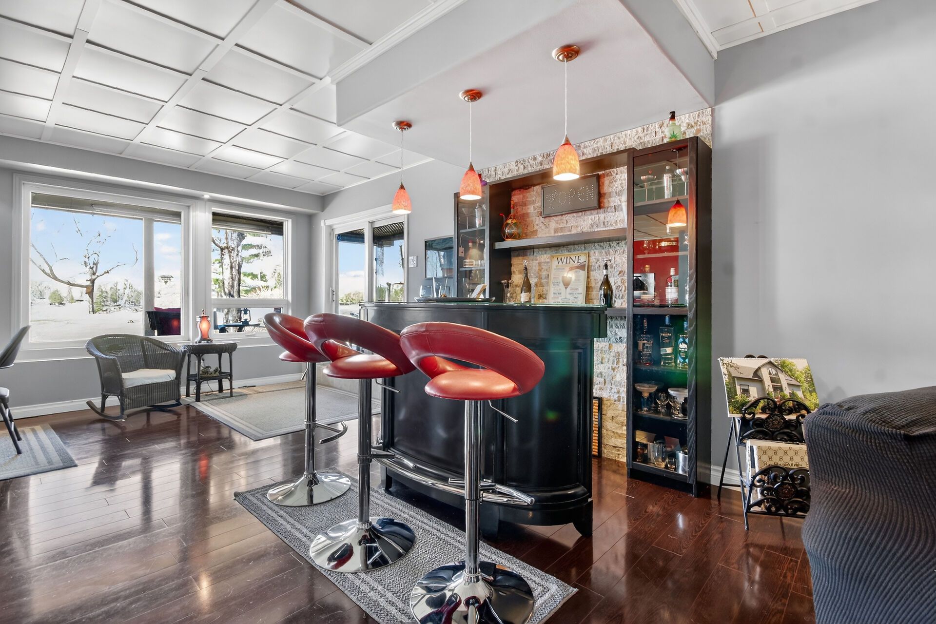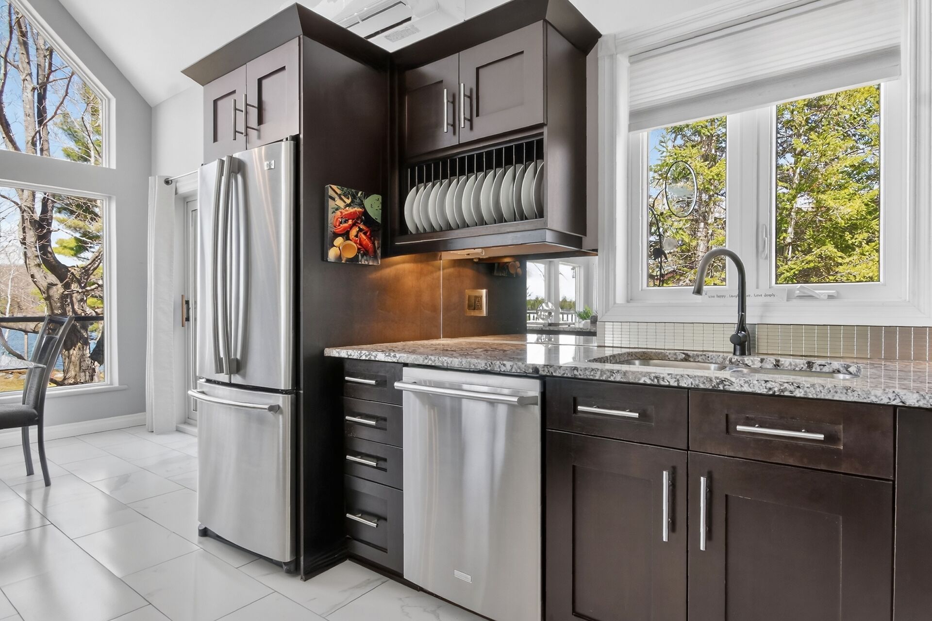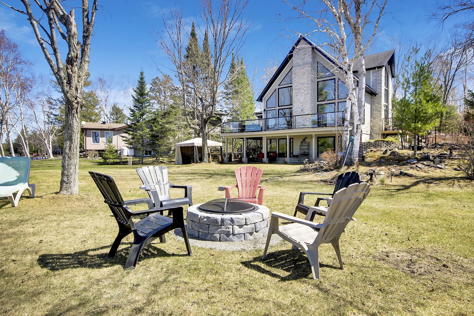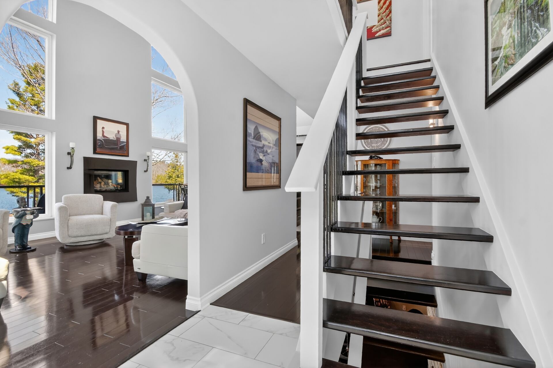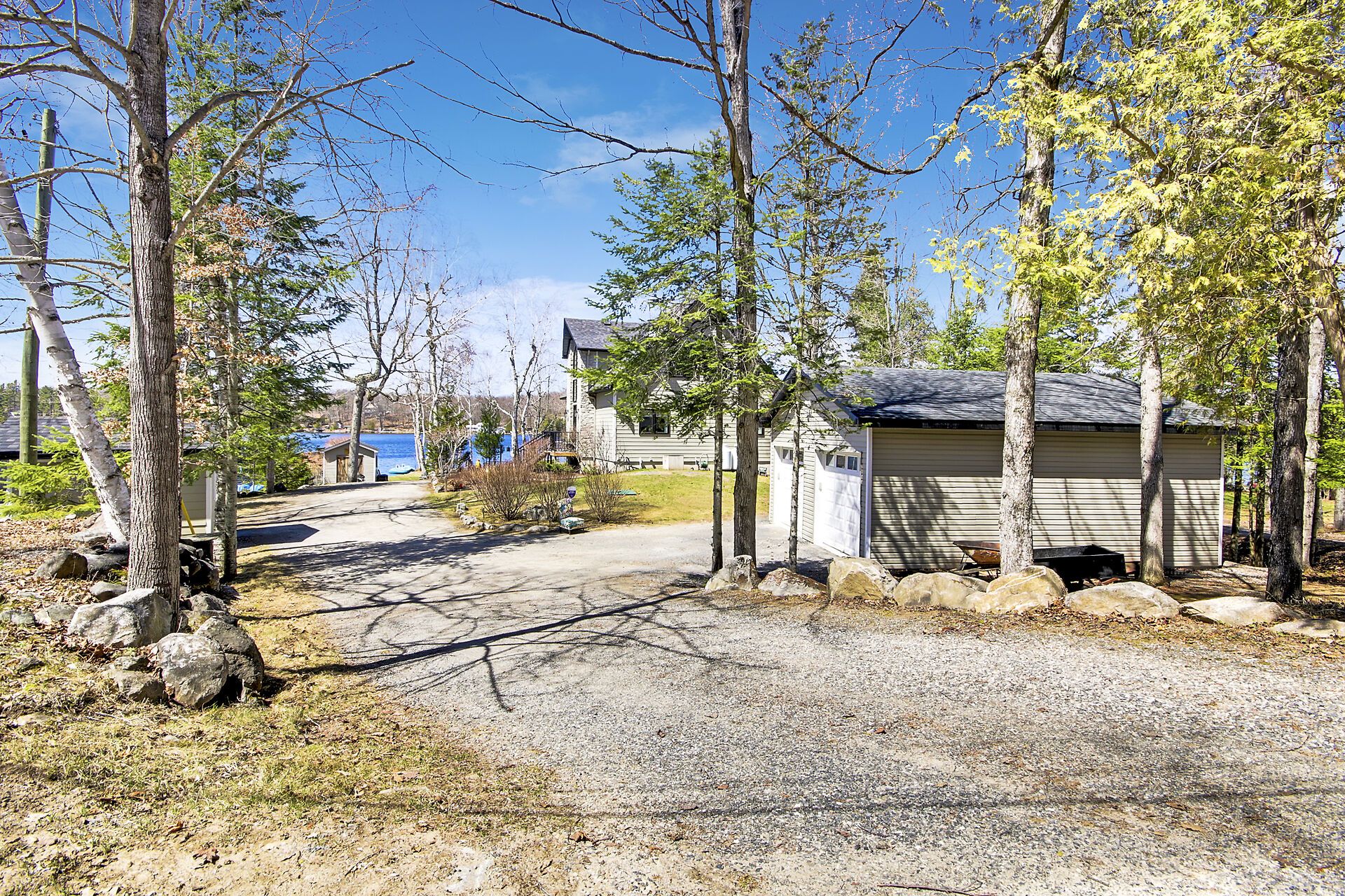 Escape to the perfect blend of home and cottage living at 519 parsons lane, nestled in the scenic beauty of lanark highlands. This exceptional waterfront property offers effortless access to the water and stunning western exposure, delivering breathtaking sunset views from the expansive upper deck and covered patio below-perfect for enjoying every season. The main level features a bright, open-concept design with soaring 20-foot ceilings and a striking propane fireplace in the living room, seamlessly overlooking the dining area and modern kitchen. The kitchen is thoughtfully designed with granite countertops, a central island, and a stylish mirrored backsplash, ideal for both everyday living and entertaining. Two bedrooms are located on the main level, including one with convenient laundry, along with a well-appointed full family bathroom. Upstairs, a loft-style second level overlooks the main living space and leads to a luxurious primary retreat, complete with a spa-inspired ensuite designed for ultimate relaxation. The fully finished walk-out lower level adds even more living space, featuring radiant in-floor heating, a cozy family room, a pool table area, and a sleek bar-all surrounded by large windows that frame picturesque lake views and beautifully landscaped grounds. Additional features include an insulated two-car garage, a utility shed, and a separate toy shed near the waterfront-perfect for storing all your recreational gear. Two docks and a sandy entry into the water makes it great for swimming and water activities. Meticulously maintained and landscaped, this property offers direct lakefront access and an unparalleled lifestyle. Whether you're looking for a year-round residence or the ultimate weekend getaway, this is a rare opportunity to own a true home-and-cottage in one.