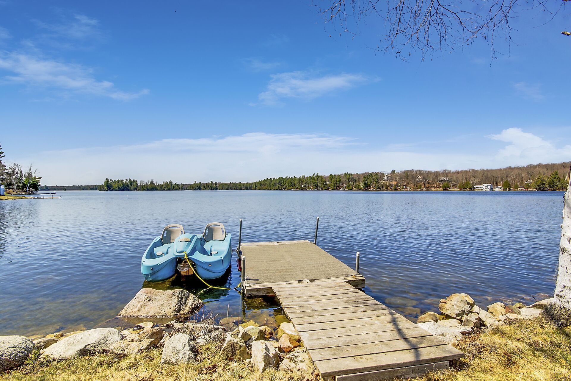 • Two docks and sandy water entry, perfect for swimming and recreational activities.