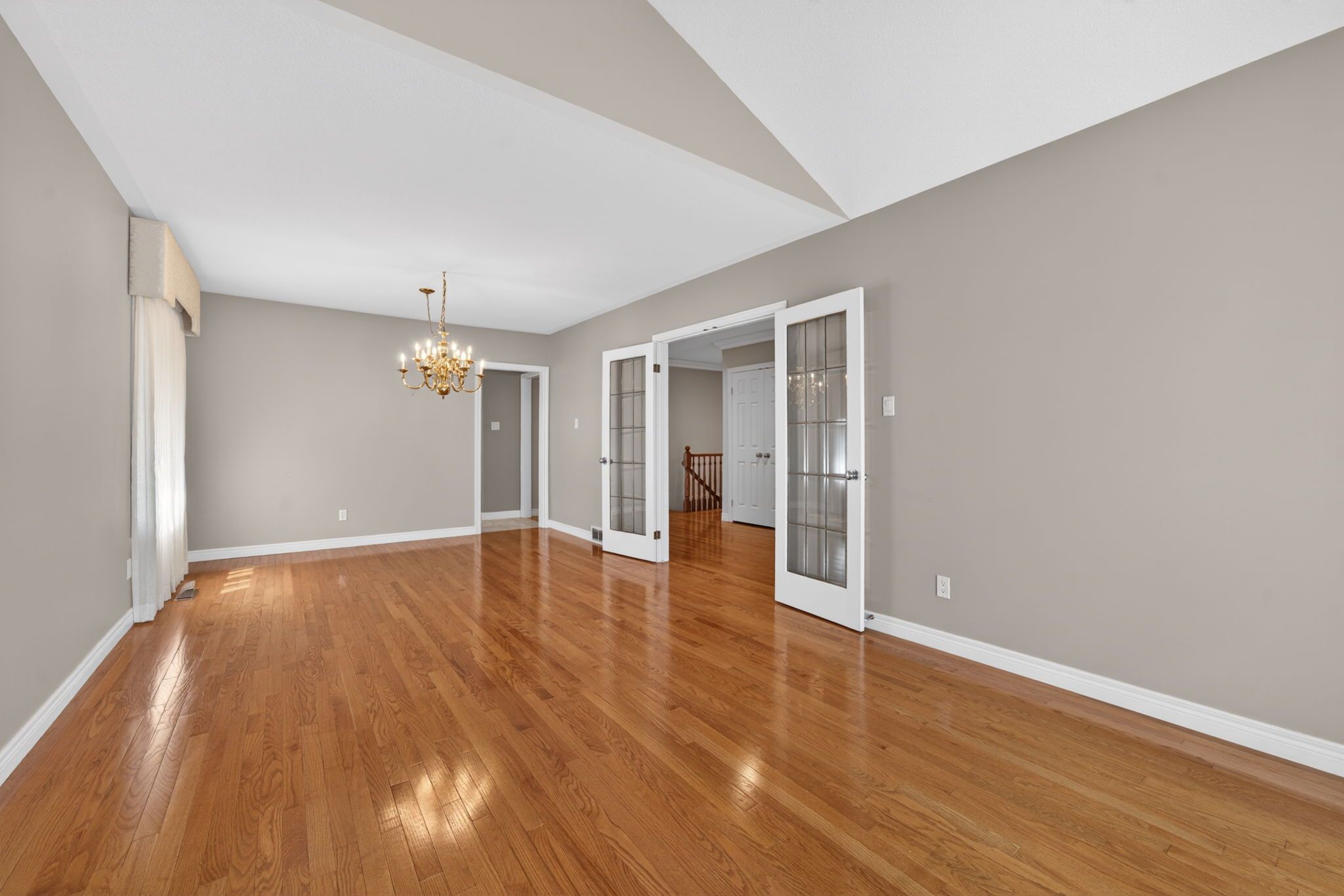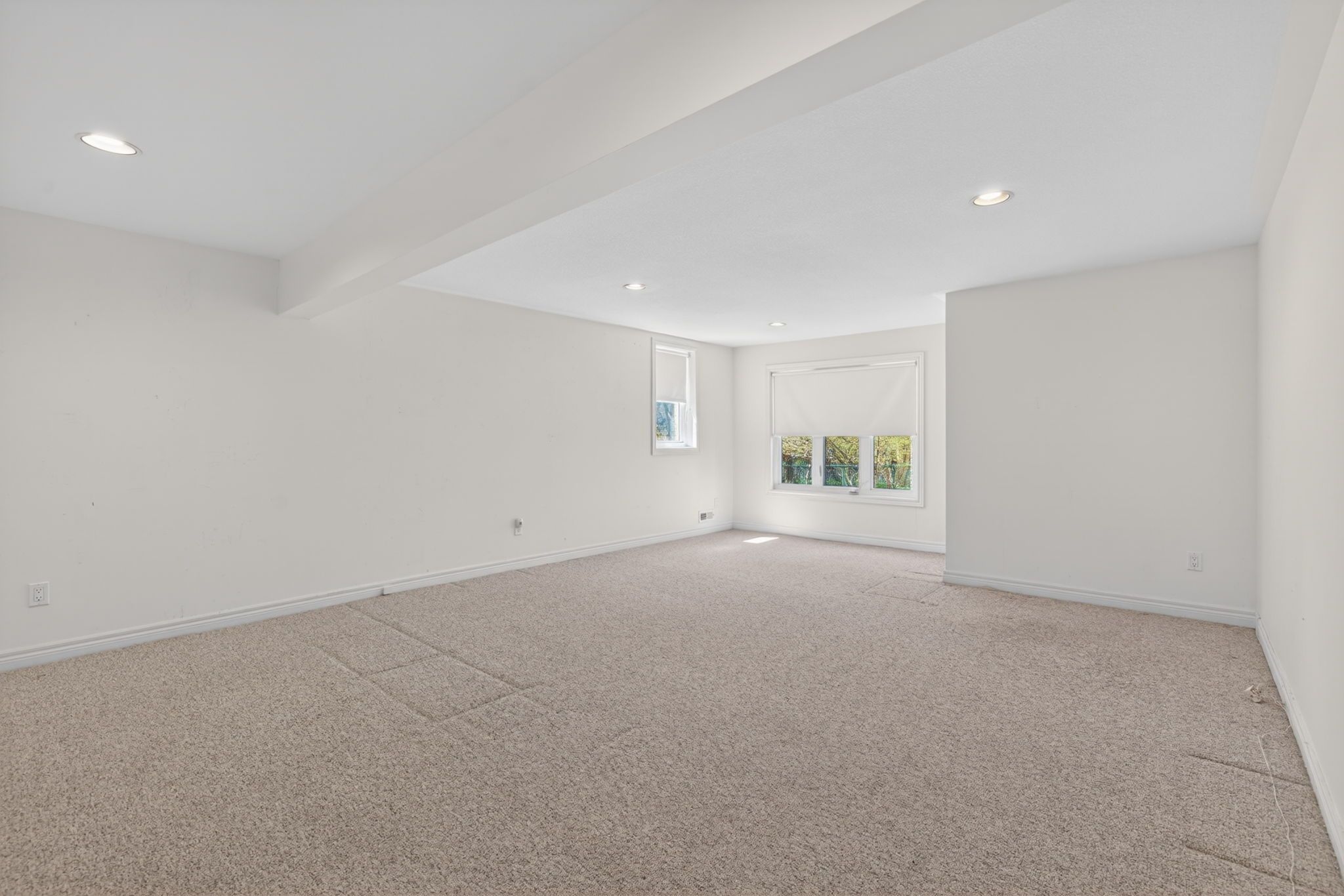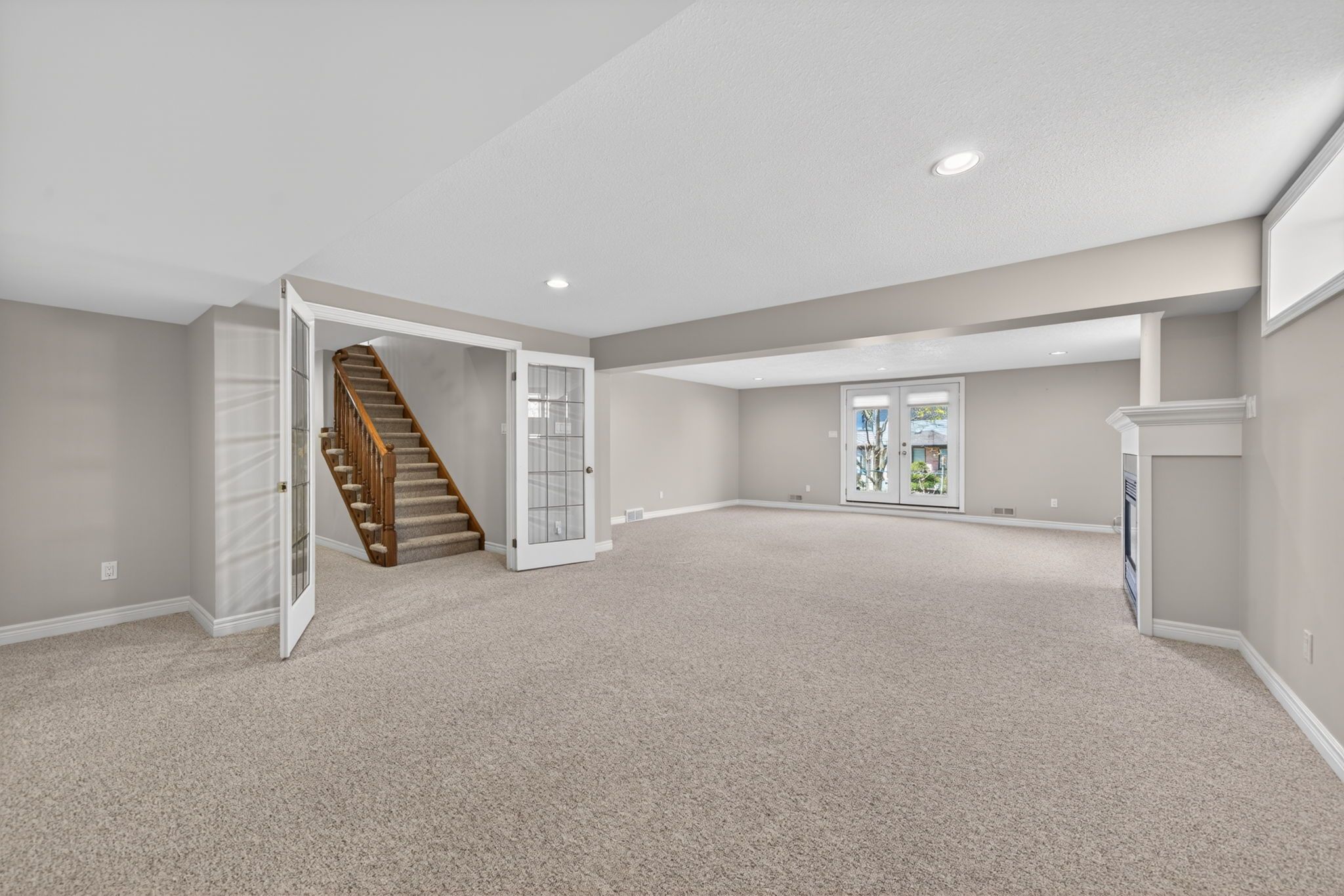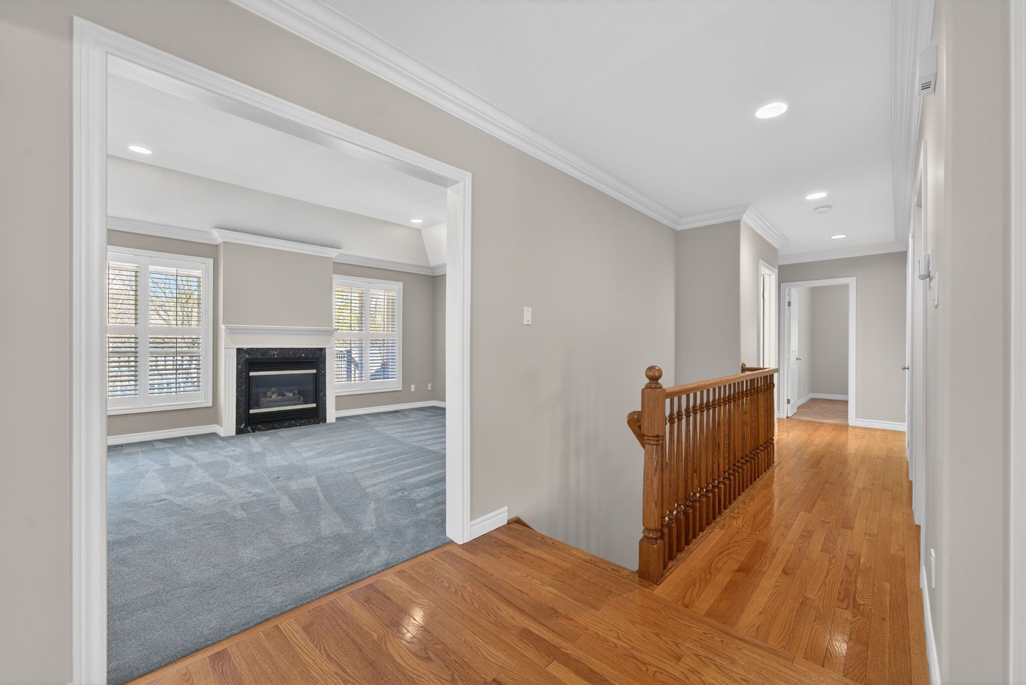 • Spacious family room features a gas fireplace and large windows.