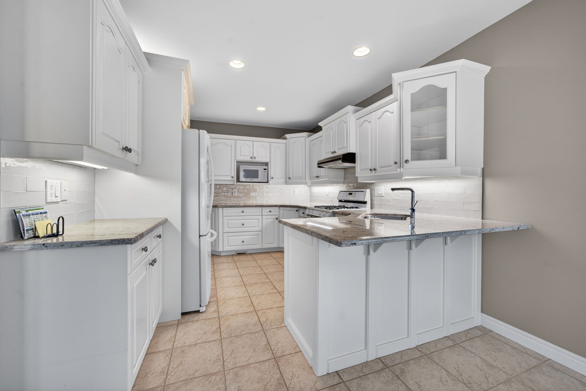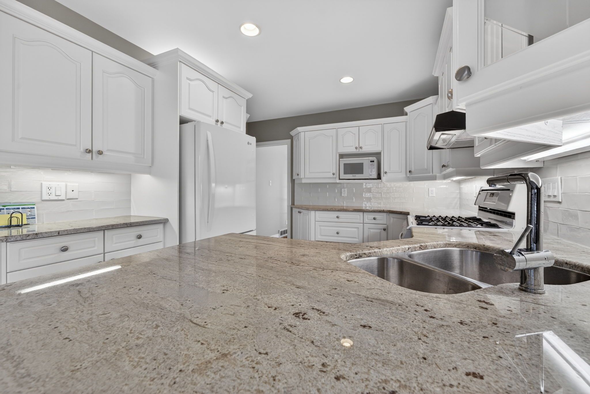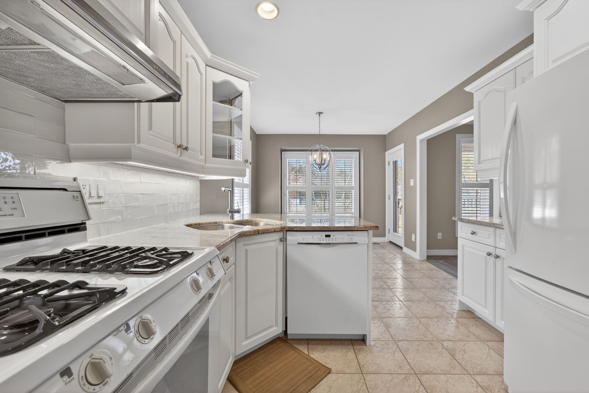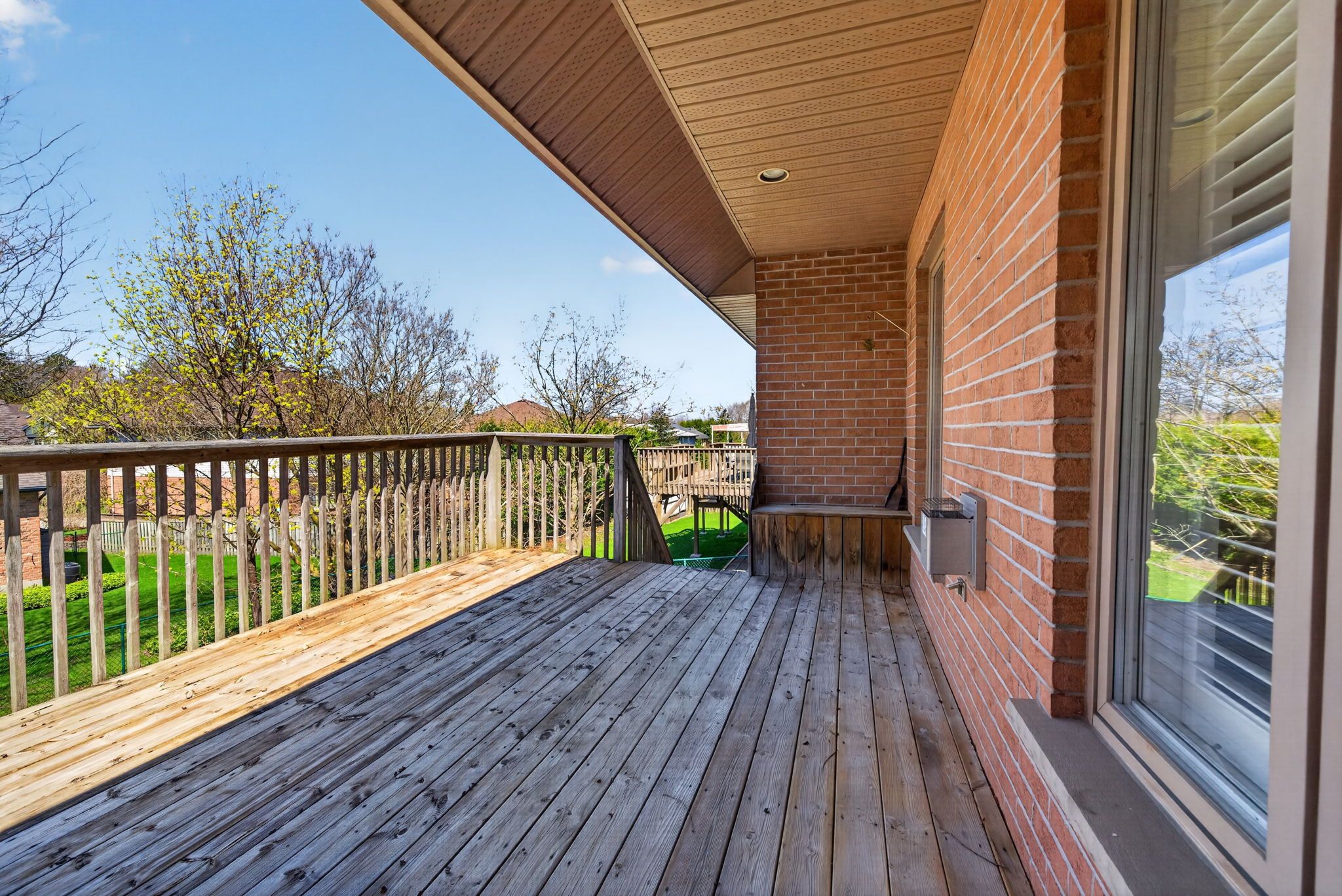 • Well-equipped kitchen has quartz countertops and opens to a large deck.