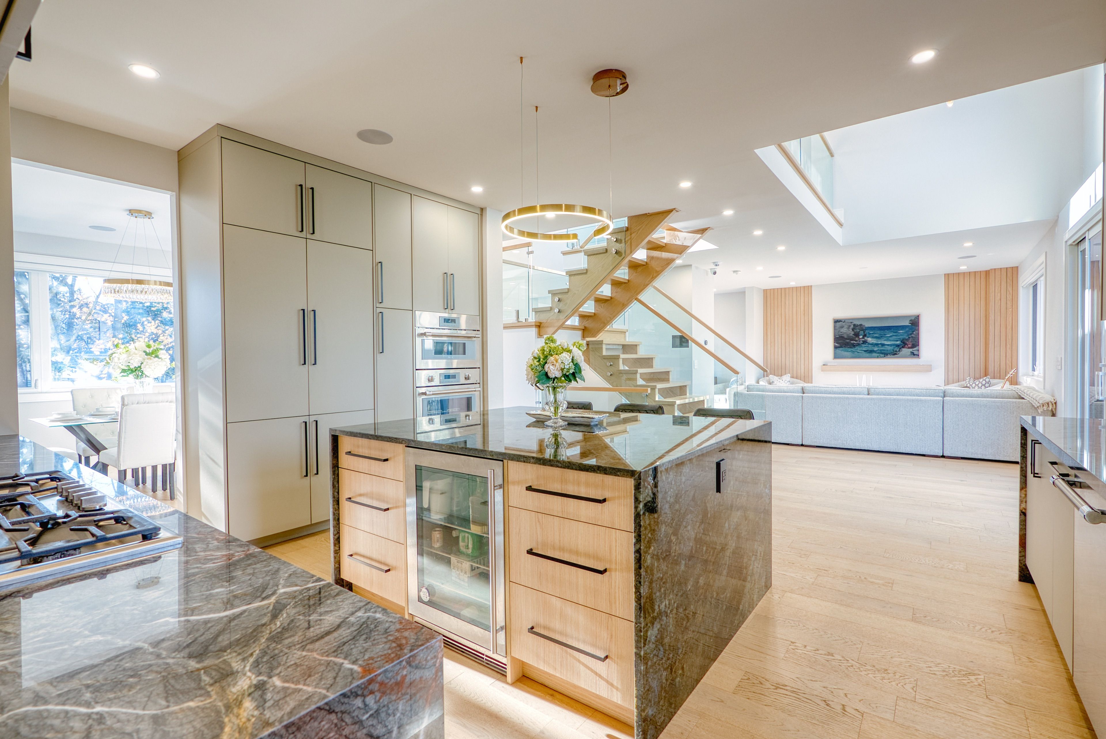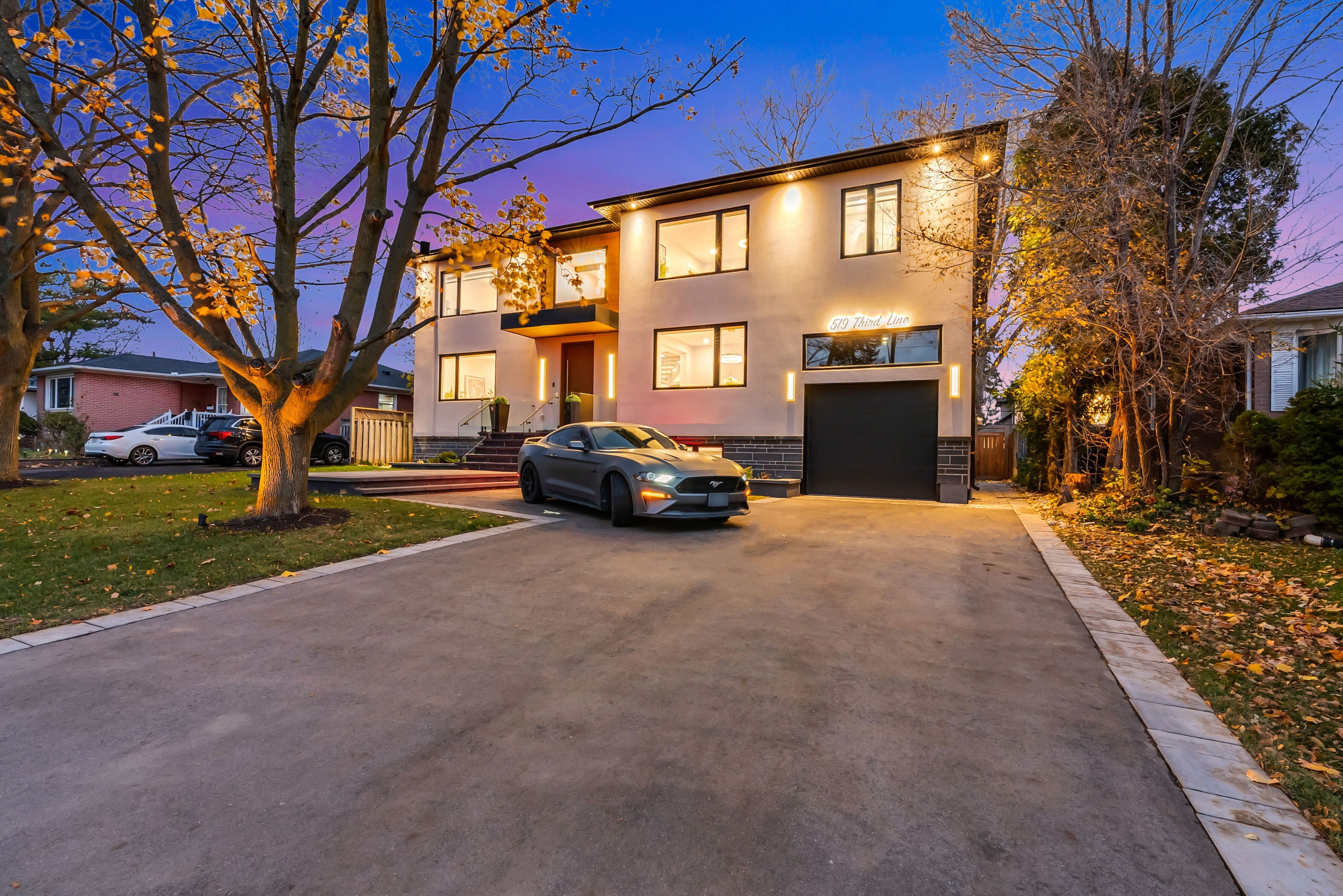 519 third line - a masterpiece of intelligent luxury. Step into a home where cottage-inspired calm meets cutting-edge technology. Framed by clean stucco and automated lighting, the 17. 5-ft foyer features rich faux wood beams that immediately set a tone of sophisticated tranquility. With a main-level bedroom with separate entrance, the main floor is an entertainer's dream, featuring engineered white oak floors and a breathtaking venetian plaster feature wall. The chef's kitchen is the showstopper, anchored by a rare lemurian blue granite island imported from madagascar, surrounded by top-tier dacor and thermador appliances. The upper level is designed for ultimate comfort, featuring three primary-sized bedroom suites. Each of these three bedrooms includes its own private walk-in closet and a 5-star ensuite bathroom with heated floors and curbless showers. The main primary retreat offers a floating double vanity, backlit mirrors, and smart toilet. Tech lovers will appreciate the comprehensive smart home system controlled by built-in ipads, managing audio, lighting, and security. The experience continues in the basement with 8-ft ceilings, oversized windows, and a wet bar finished in leathered quartzite. Complete with a commercial-grade lennox hvac and automated irrigation, this home offers elevated, worry-free living.