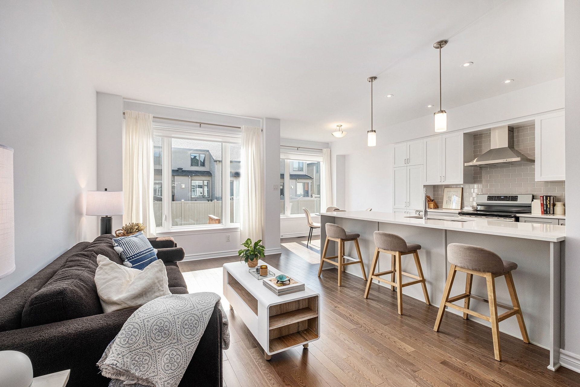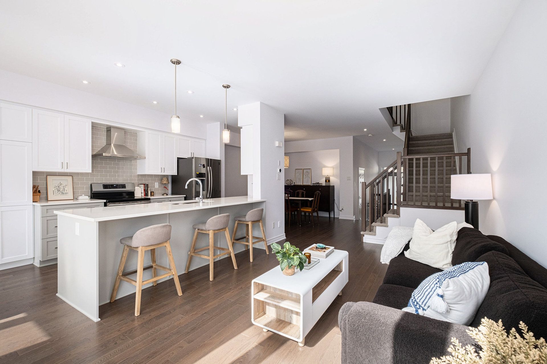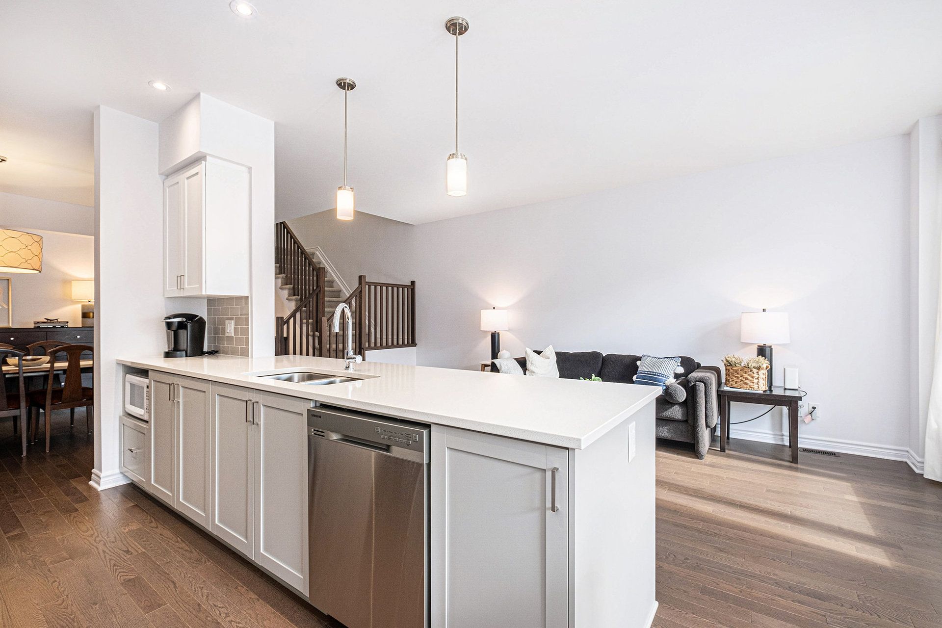 Welcome to this beautifully maintained townhome in stittsville, offering over 2,000 sq. Ft. Of stylish, open concept living space. Built just 5 years ago, this modern home combines comfort, functionality, and a prime location. Step inside to find hardwood flooring throughout the main floor, setting a warm and inviting tone. The spacious layout is perfect for both everyday living and entertaining, with seamless flow between the living, dining, and kitchen areas. Upstairs, you'll find 3 generously sized bedrooms, including two with walk-in closets, and a convenient second-floor laundry room. The primary suite features ample closet space and a spa-inspired ensuite, while a second full bathroom serves the additional bedrooms. The fully finished basement adds valuable living space, complete with a cozy gas fire place ideal for movie nights or a comfortable family retreat. Enjoy outdoor living in the fully landscaped backyard, perfect for relaxing or hosting guests. Located in a family-friendly neighbourhood, you're just minutes from schools, parks, shops, and transit. With 2. 5 bathrooms, smart layout, and quality finishes throughout, this townhome offers everything you need in one of most desirable communities.