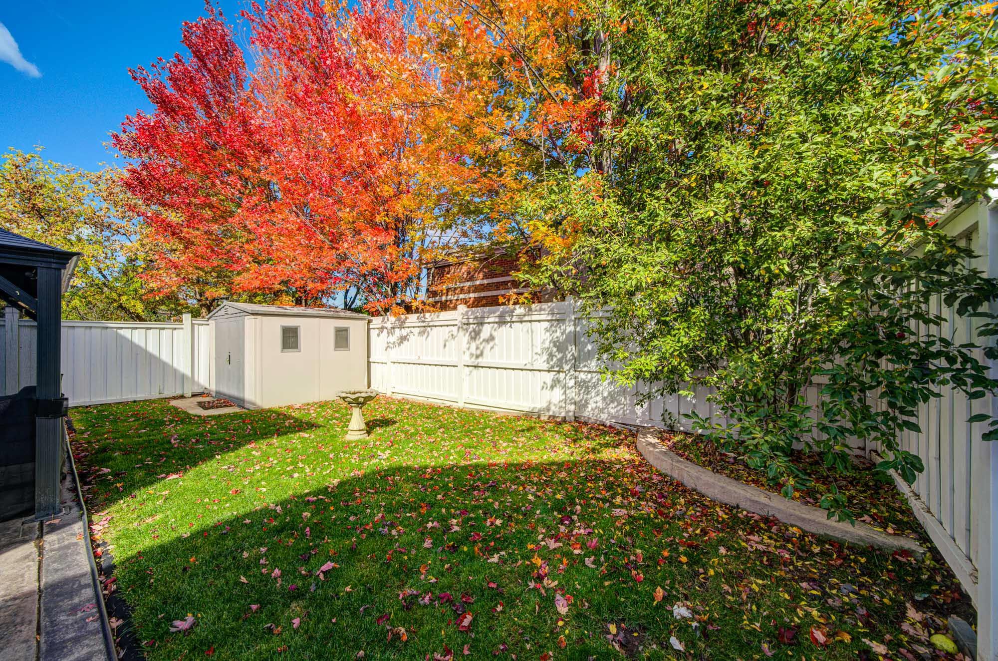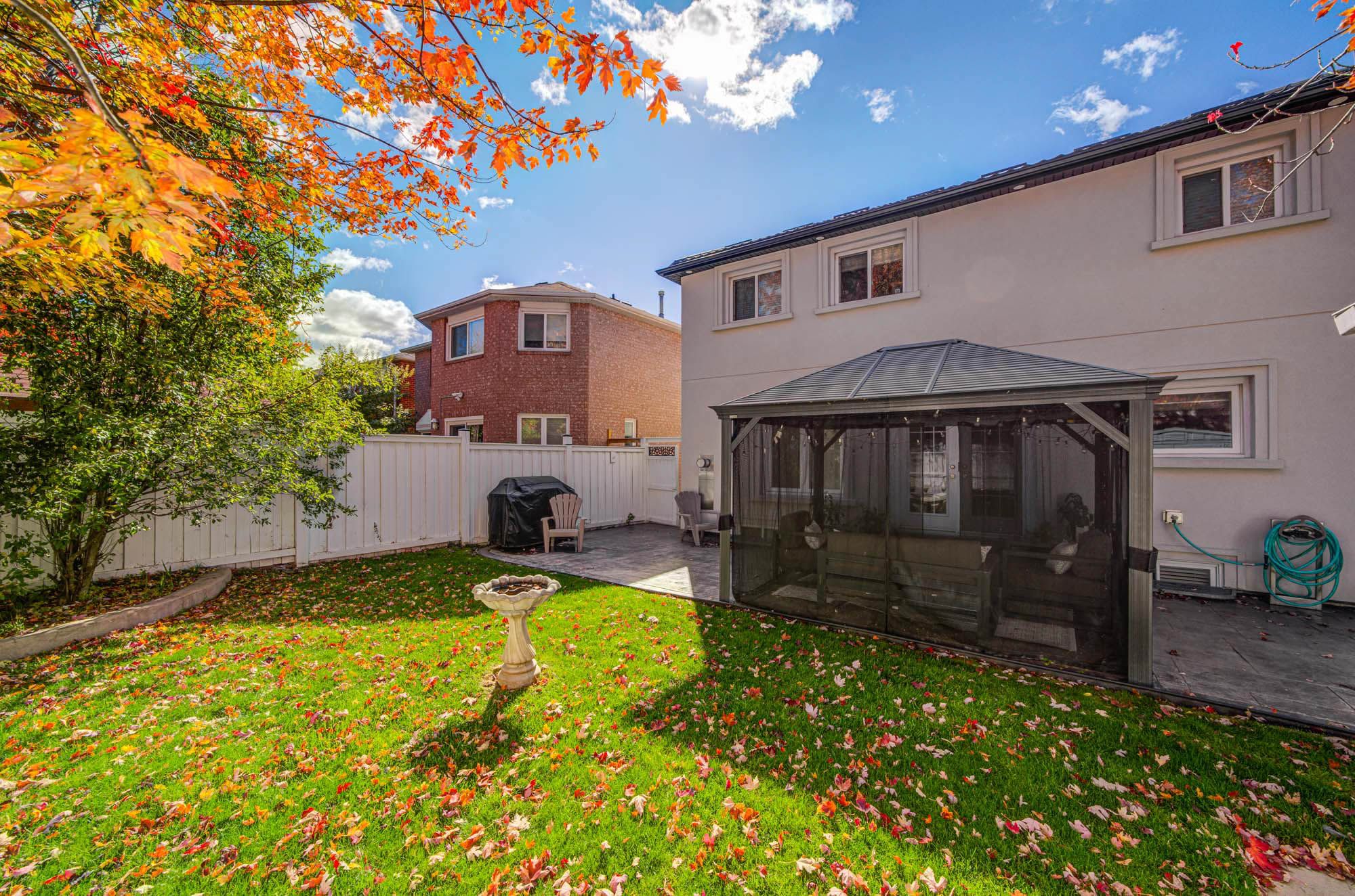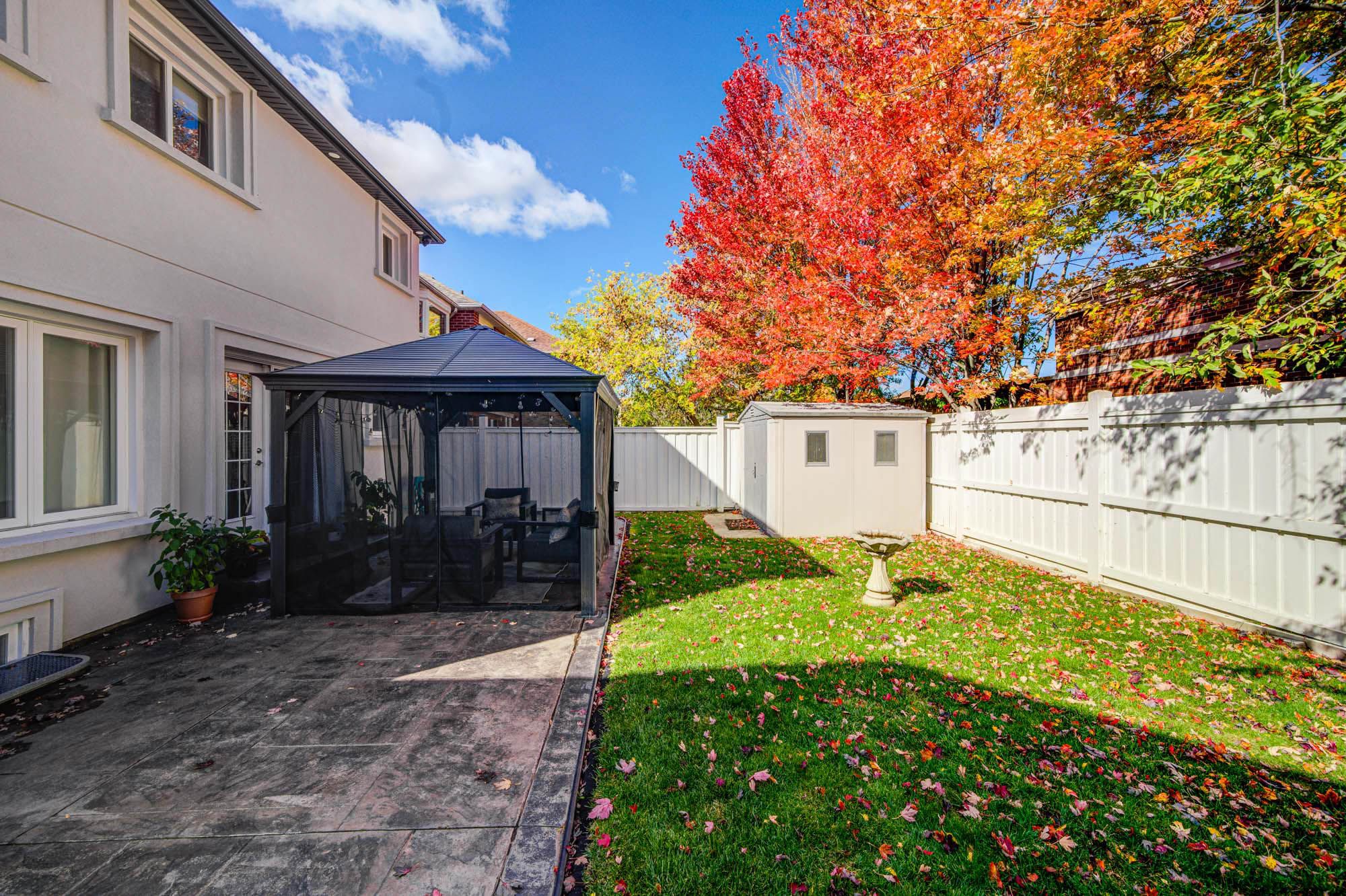 • Large private backyard surrounded by mature maple trees for great privacy.