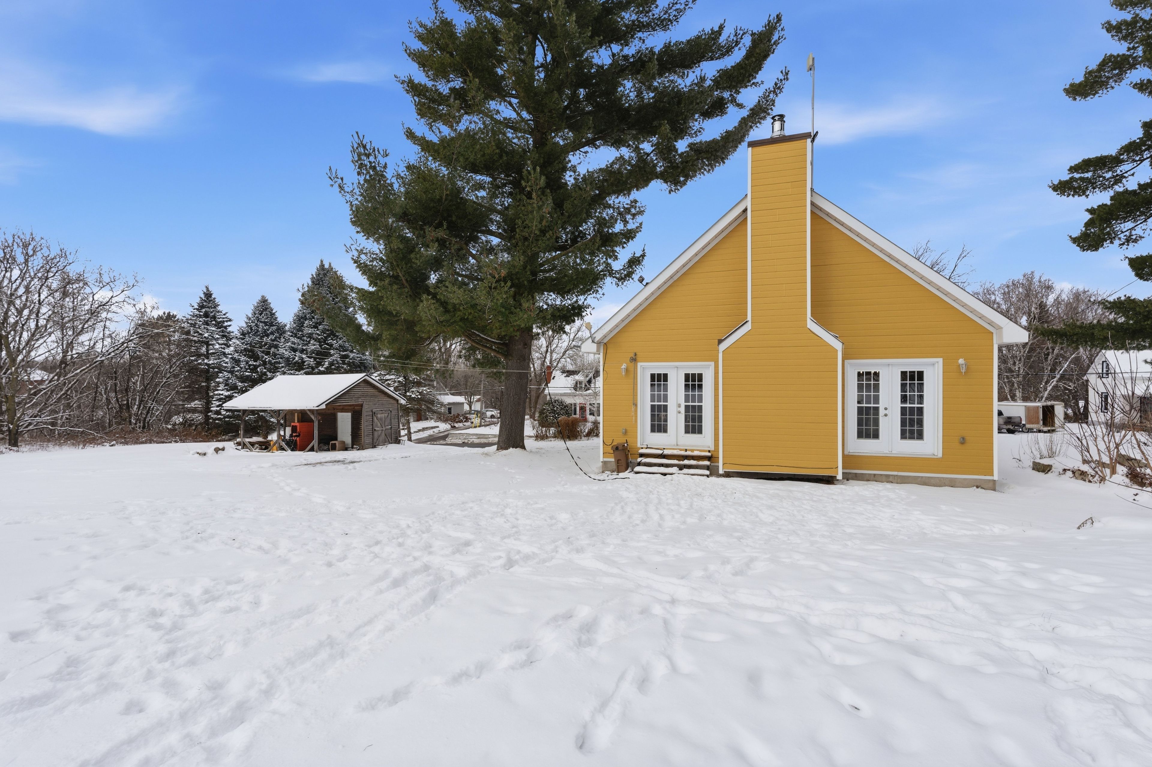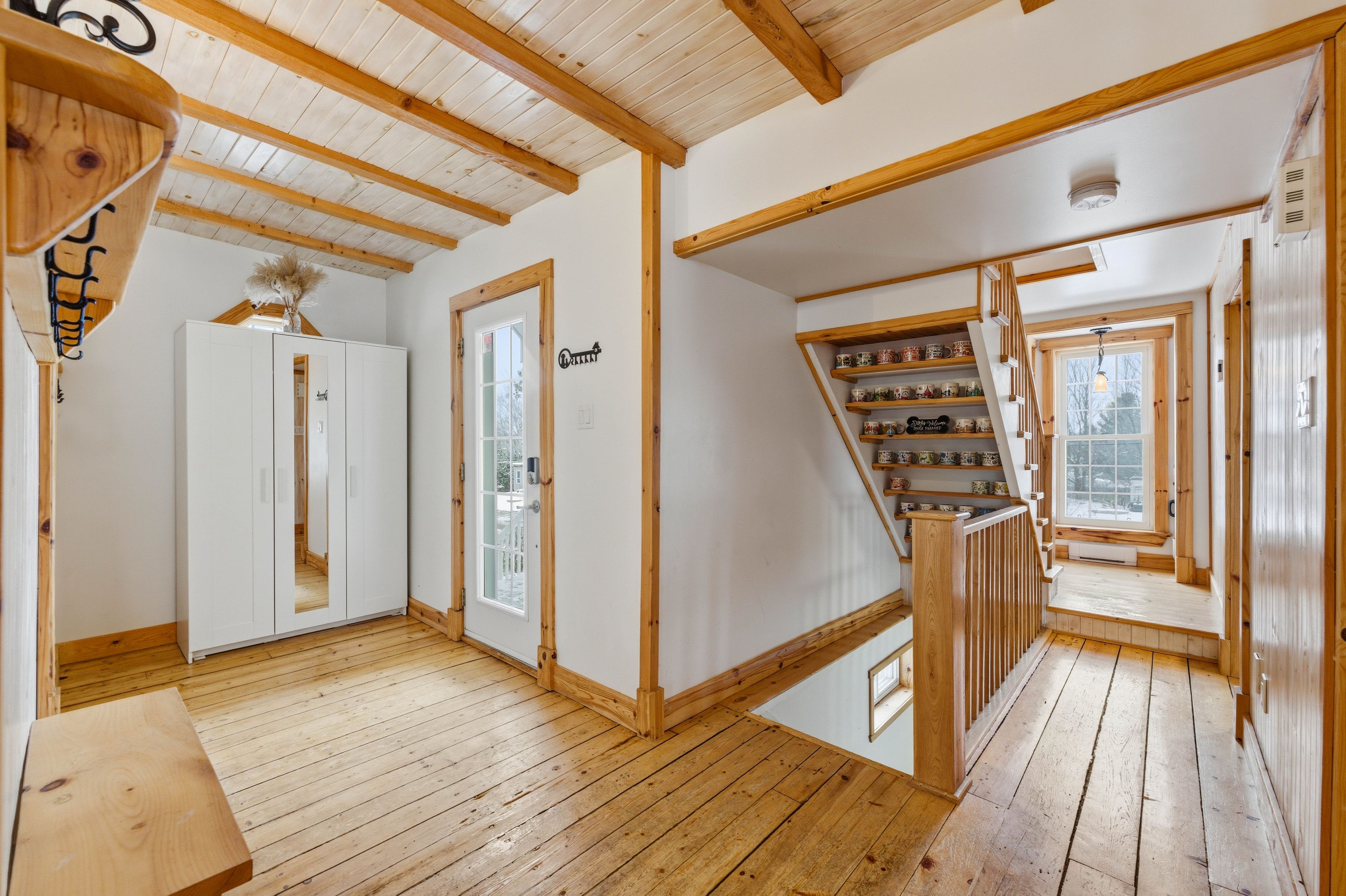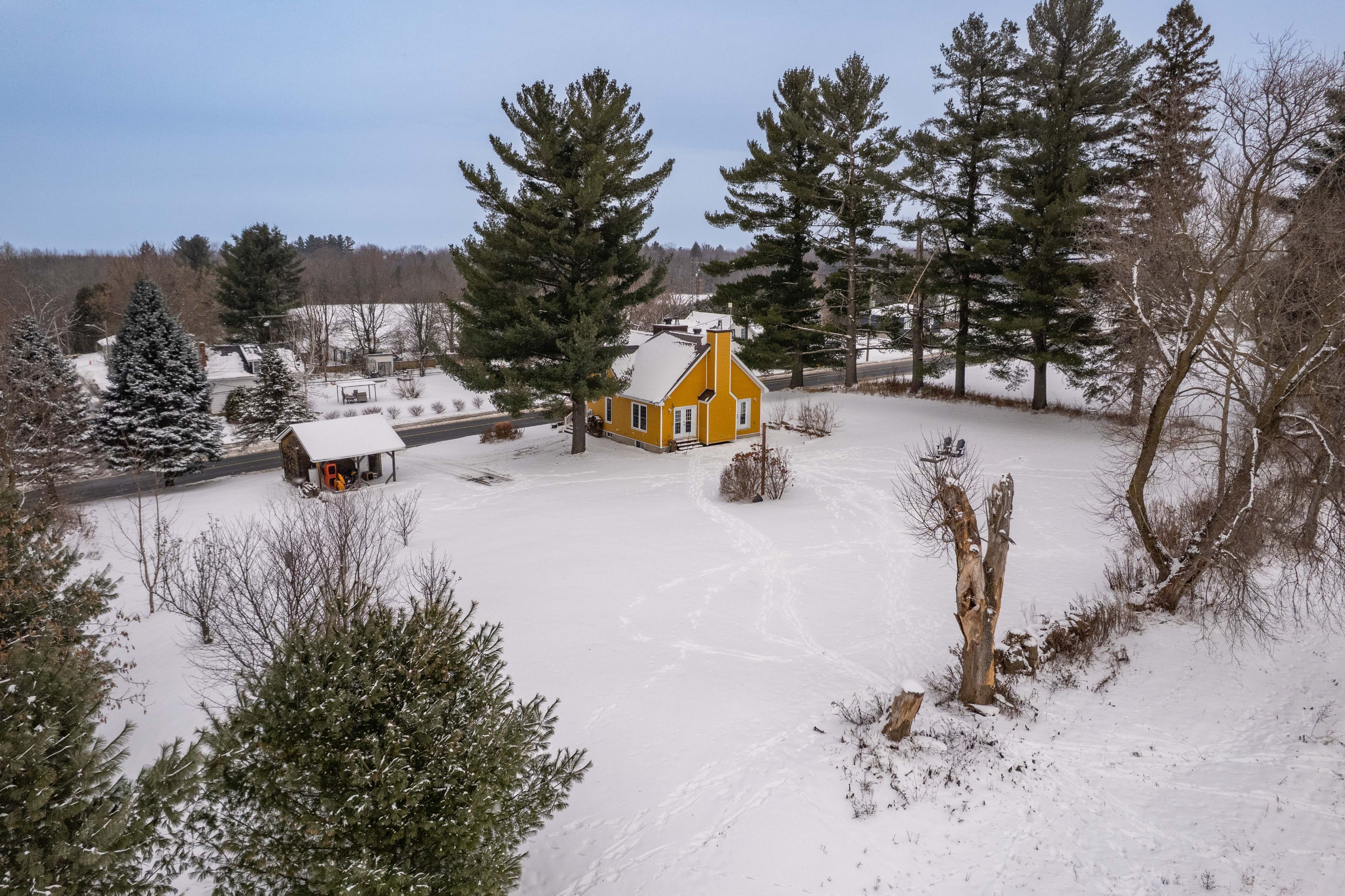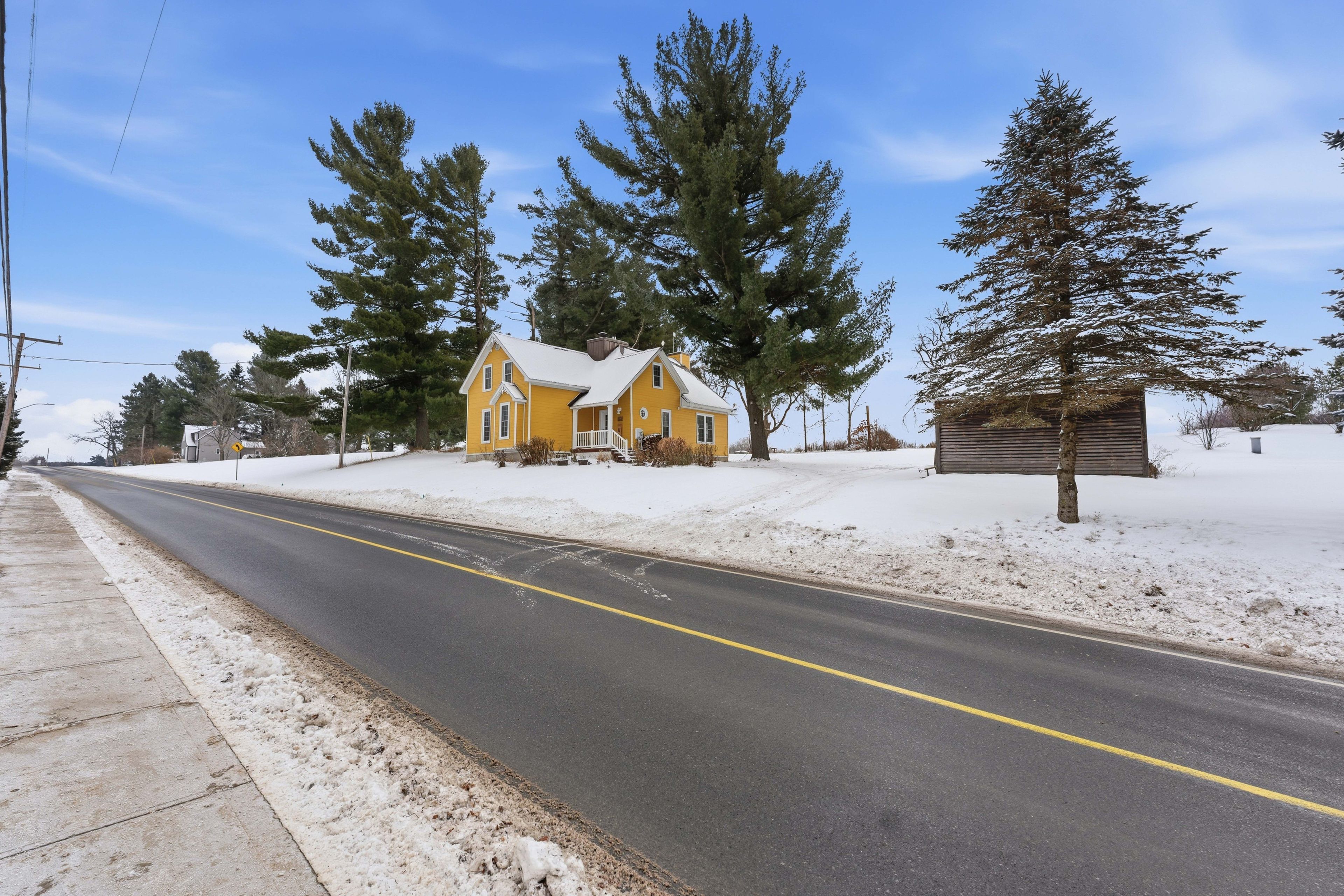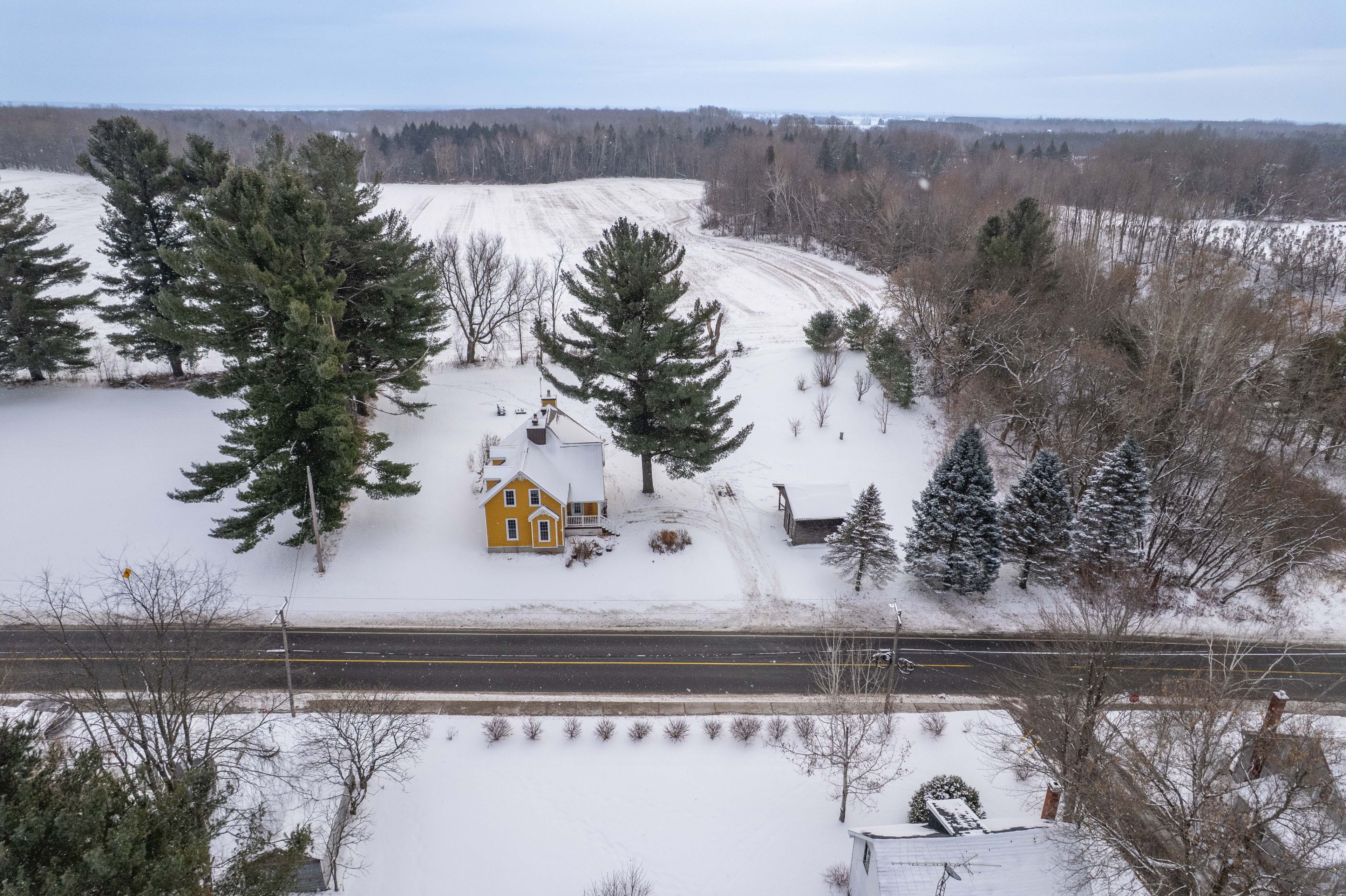 This charming warm and inviting home, thoughtfully renovated in 2014. Sitting on just under one acre of land, this property is perfect for anyone looking to escape the city and enjoy peaceful country living. Step inside and fall in love with the spacious open-concept living and dining area, highlighted by beautiful cathedral ceilings and exposed ceiling beams that bring warmth and character. This inviting space is filled with natural light thanks to large windows and two french doors leading out to the backyard. The country-style kitchen features a large wood butcher-block island and a beautiful farmhouse sink, creating the perfect blend of charm, function, and style - ideal for cooking, entertaining, and everyday living. The main level also includes a bedroom, powder room and a laundry room for added convenience, while the second floor offers two additional bedrooms and full bathroom giving everyone space and privacy. The home also features two wood-burning stoves for cozy, efficient heat during the colder months. Unfinished full basement gives plenty of space for storage or potential family room/ play room. If you're searching for charm, comfort, and the tranquility of the countryside, this property truly has it all.
