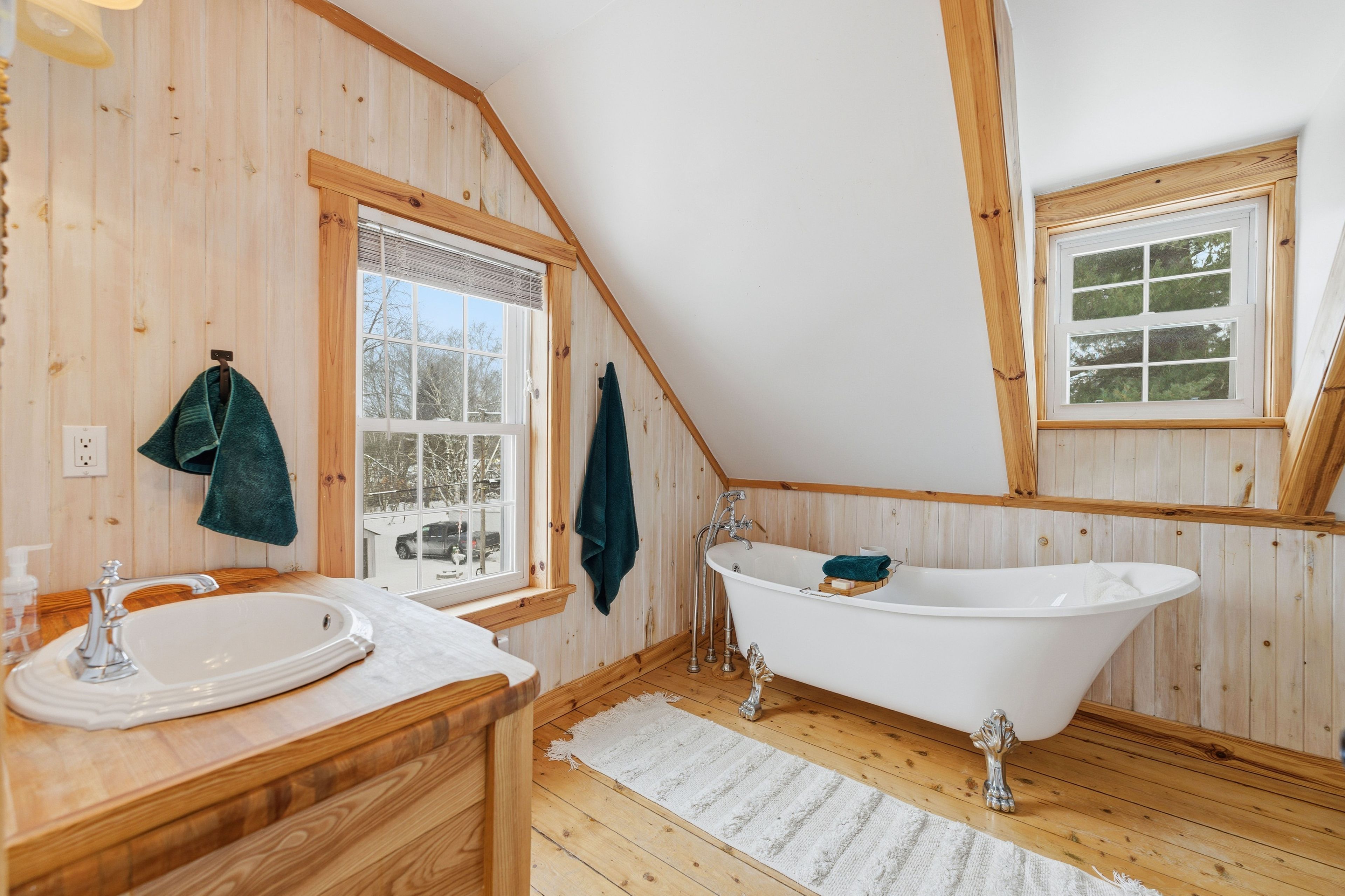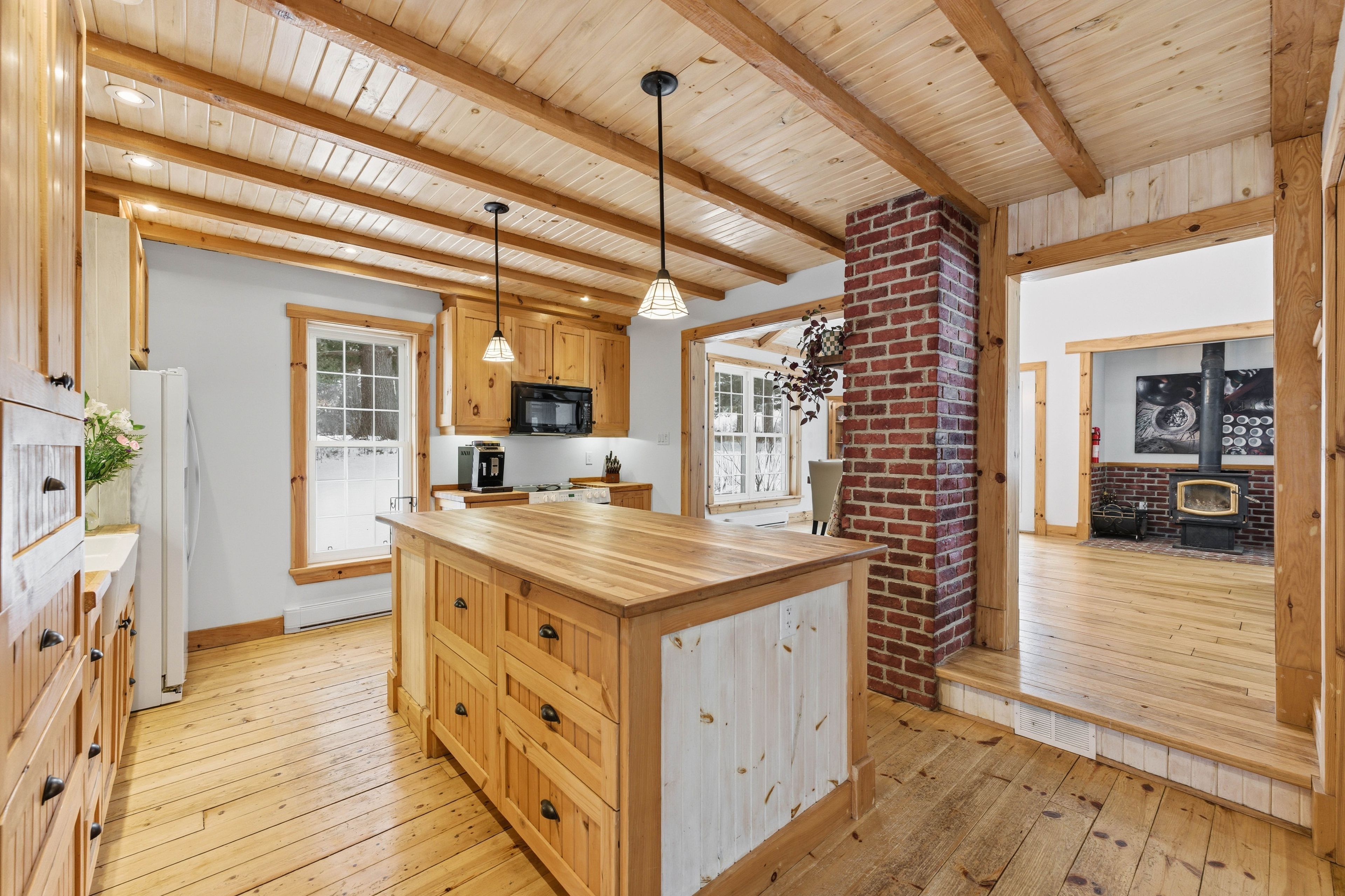 • Two wood-burning stoves provide cozy heat during colder months.