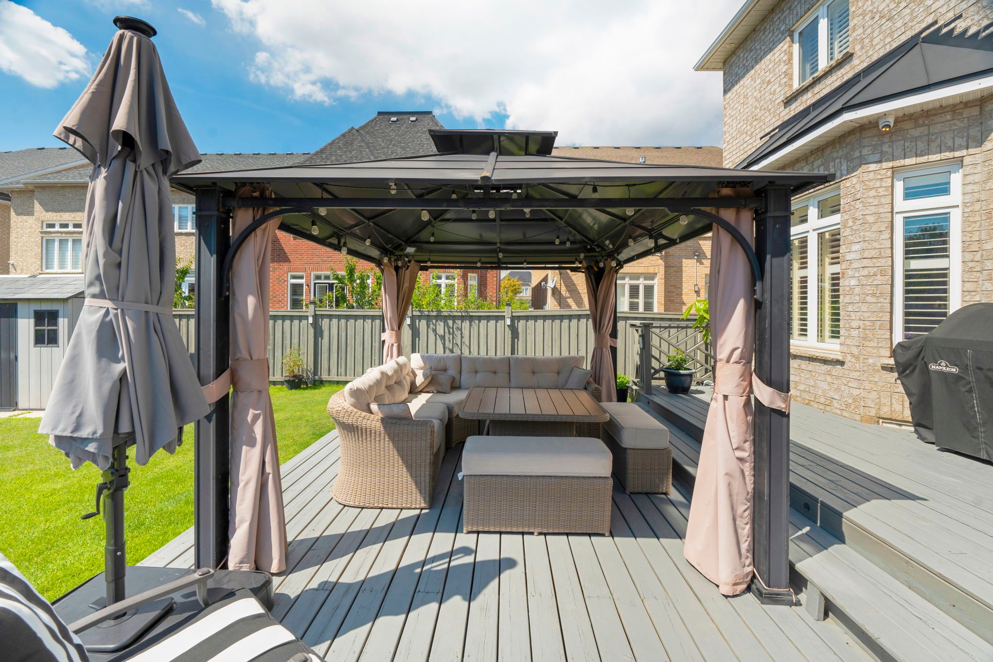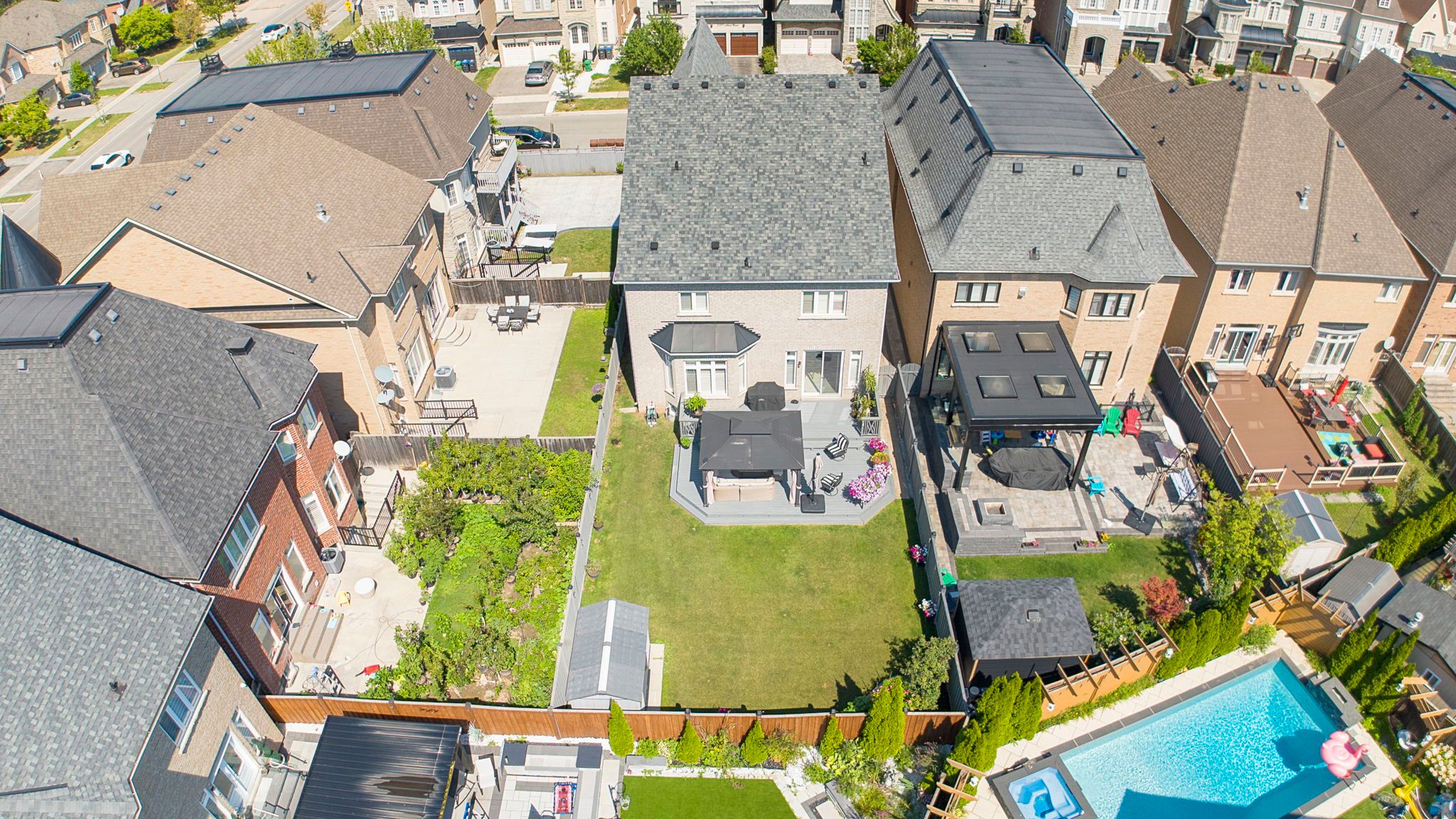 Introducing stunning 5-bedroom home featuring ensuites with luxury finishes on a pool-size lot. Welcome to this beautifully maintained 3819 + 1894 sq. Ft. Finished basement, set on a rare no-sidewalk, 135' deep pool-size lot with a gorgeous patio and elegant stucco-stone front elevation. Featuring 10' ceilings on the main floor, 9' ceilings on the second level and basement, this home offers an open, airy feel throughout. Inside, enjoy 5 spacious bedrooms and 5 full bathrooms, including a luxurious basement suite. The modern chefs kitchen boasts a gas stove, built-in microwave, dishwasher, and abundant storage, while the family room is enhanced by a gas fireplace and split library design. Multiple living and dining areas create the perfect balance of elegance and comfort. Smart living features include a 3-level intercom system connected to a hikvision doorbell (no monthly fees), a russound 8- zone music system with app/keypad control and built-in speakers, plus a bose home theatre in the entertainment room. Ideally located just 5 minutes from ridgeway plaza, hwy 403, credit valley hospital, erin mills town centre, and top-rated schools. A true luxury family home designed for comfort, entertainment, and convenience. Newly upgraded countertops in all bathrooms on 2nd floor and basement. Must see!!