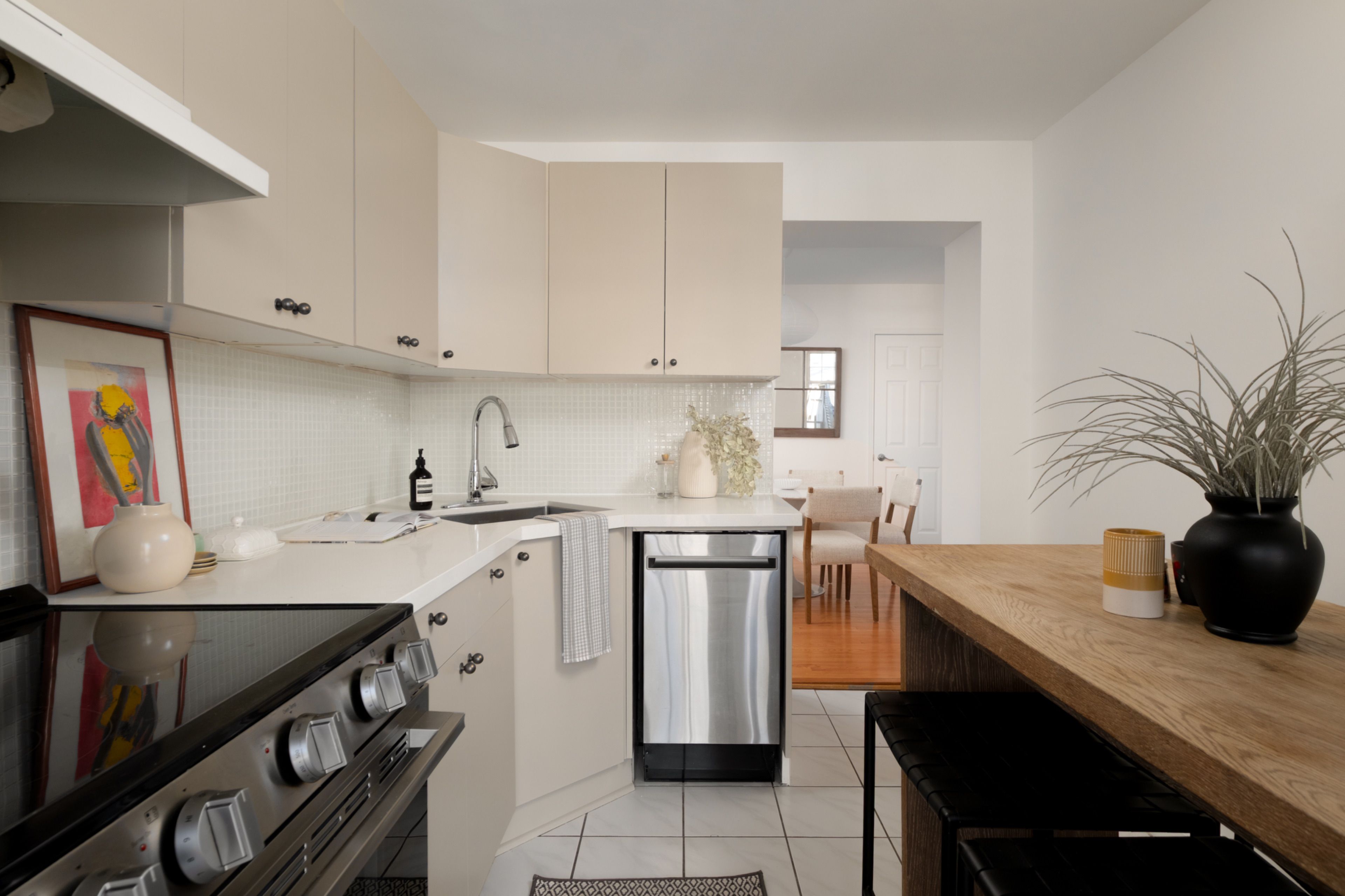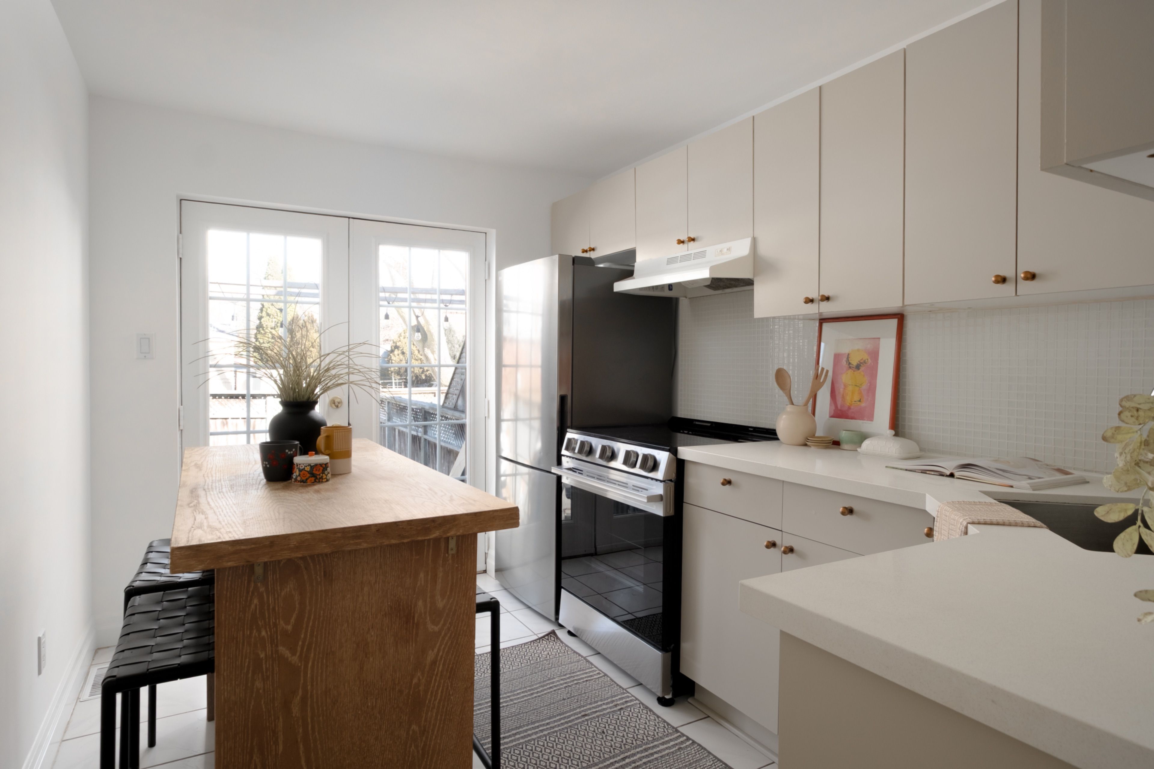 • Updated kitchen with quartz countertops and easy access to backyard.