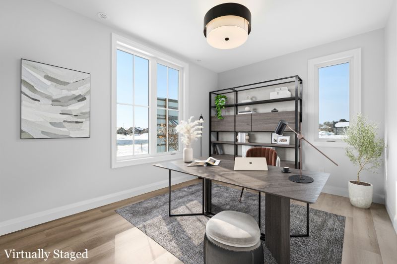 Visit realtor website for additional information. This new home has accessible bungalow with loft design and is accommodating for today and tomorrow's needs. The main floor of this home features primary suite and den, 1. 5 baths and an open concept layout with kitchen, dining area and great room. The interior is contemporary, open and spacious with high 9' ceilings, and tall windows. A screened-in covered patio is accessed off both the dining area and the primary suite. The loft is fully finished with 2 bedrooms and a 3-piece bath for private guests quarters. A large number of builder upgrades are already included in this exciting build. The heat is a dual fuel - both electric heat pump and gas backup.