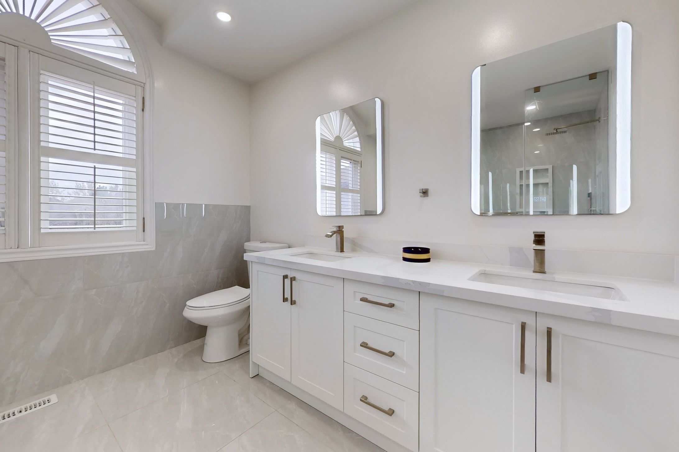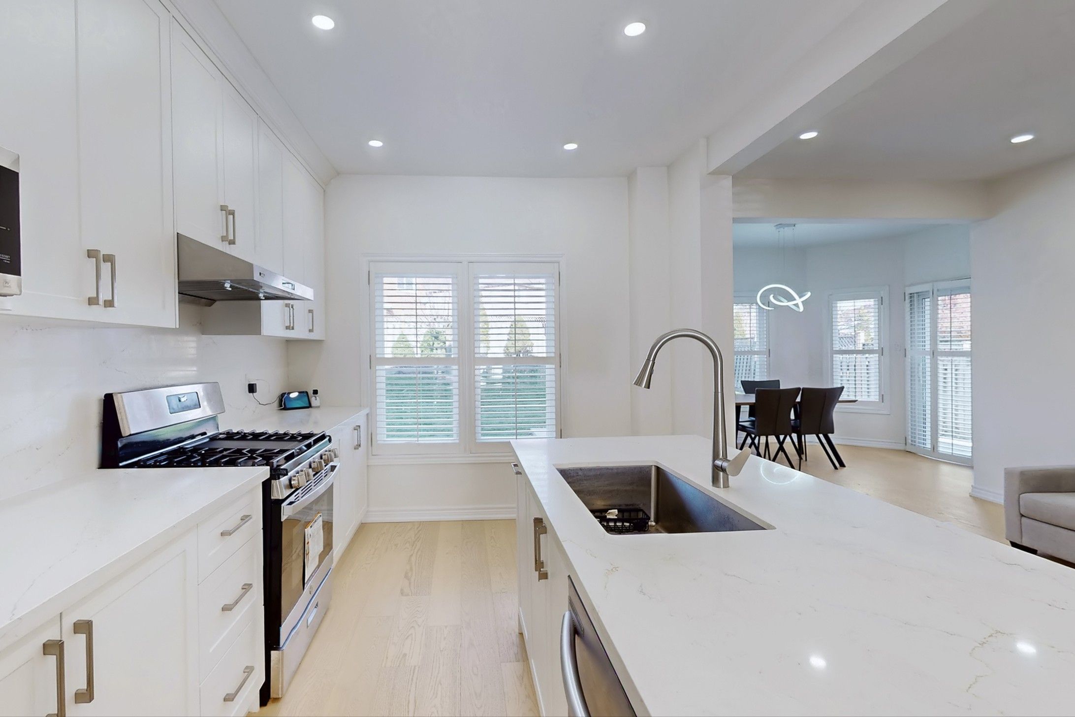 Welcome to this stunning 4+2 bedroom & 5 bathroom detached double garage home in heart of richmond hill, nestled on a quiet court off bayview and elgin mills, spans approximately 2,391 sqft on a premium pie-shaped lot, offering abundant space and privacy. North-south facing for optimal light and ventilation. $$$ upgrades, tastefully renovated from top to bottom, hardwood floor, pot lights and california shutters through out. Remodelled open-concept kitchen with chef's gourmet gas stove(2024), quartz countertop and central island, connected to bright dinning room and walk-out to the yard. Cozy family room with sleek electric fireplace. Back yard interlock & landscaping(2023), lifetime steel roof protects your house, engineering hardwood floor(2024), main floor laundry room (2024) has direct access to the garage. All the bathrooms renovated(2024), skylight(2024) above the stair brings bright natural light throughout. 4 bedrooms upstairs with extra extend space, primary bedroom with 5pc ensuite. Functional bedroom & office layout features spacious living space for life & work balance life style. New ev charger installed(2025) in garage. Furnace & insulation(2021). Finished basement features 2 bedrooms, full kitchen and bathroom(2023), offering additional living space and recreation use. Walking distance to trail and parks. Mins to bayview avenue, major hwy, go transit, restaurants, costco, plaza, and top schools: redstone ps and richmond green ss. A good opportunity for refined family living in richmond hill.