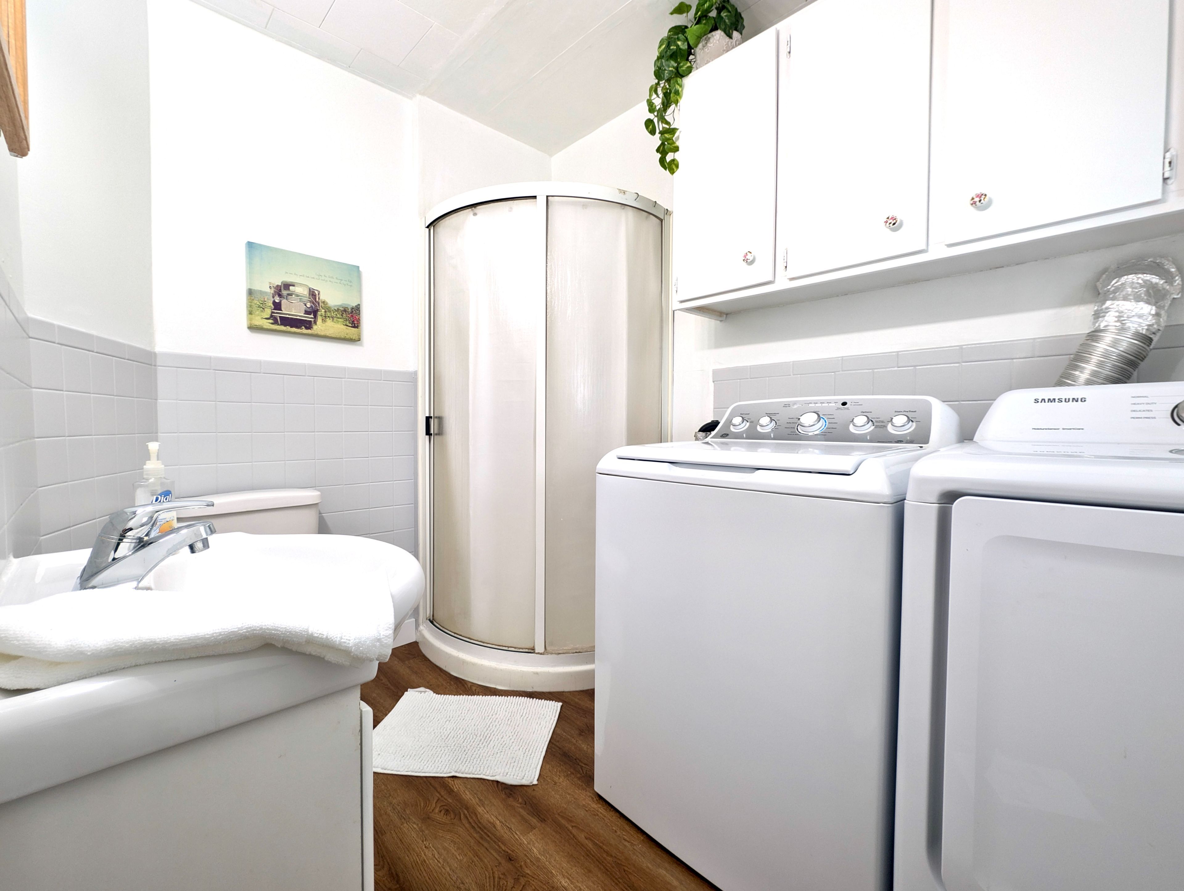 • Eat-in kitchen, living room fireplace, and main floor laundry for convenience.