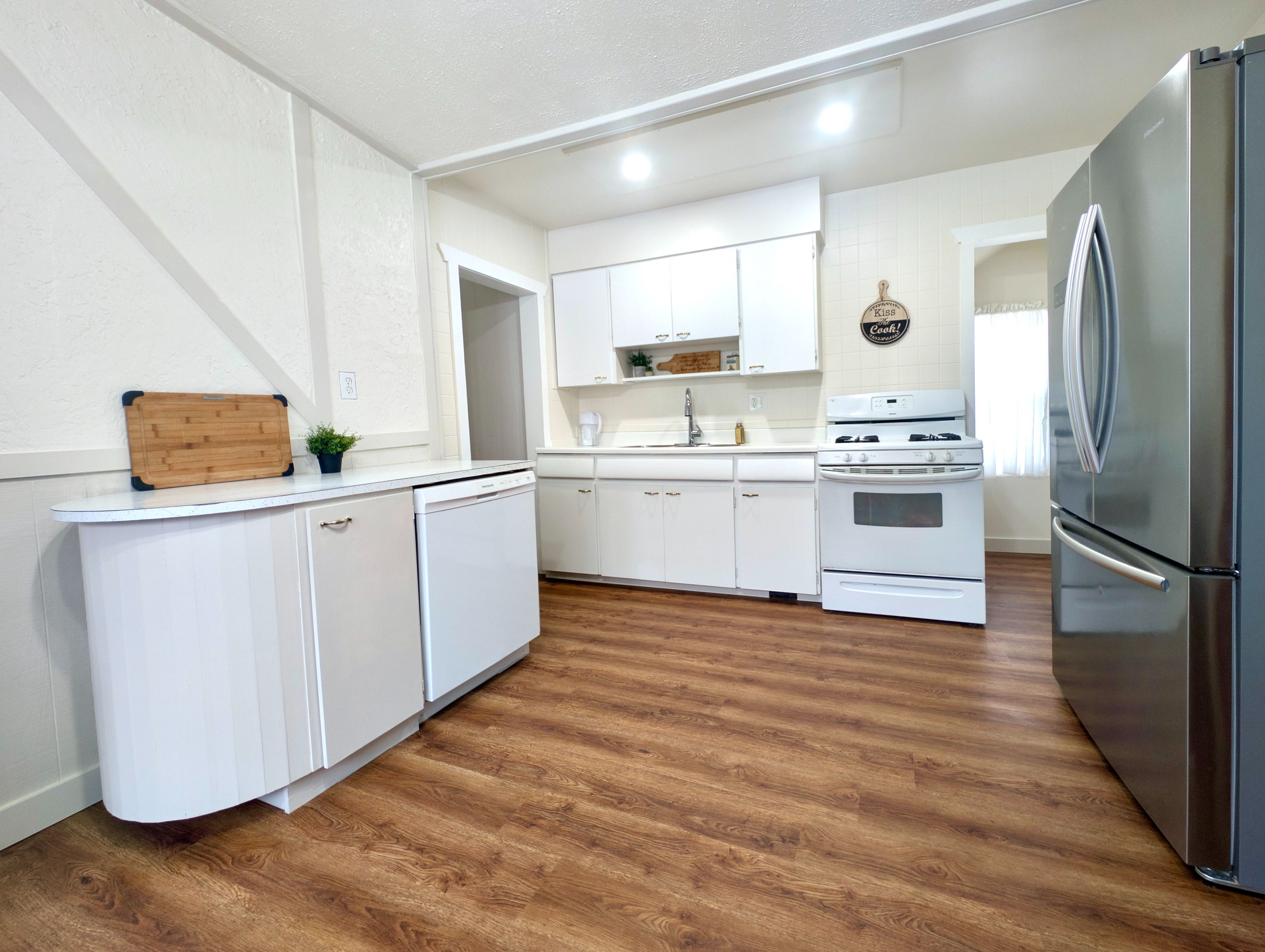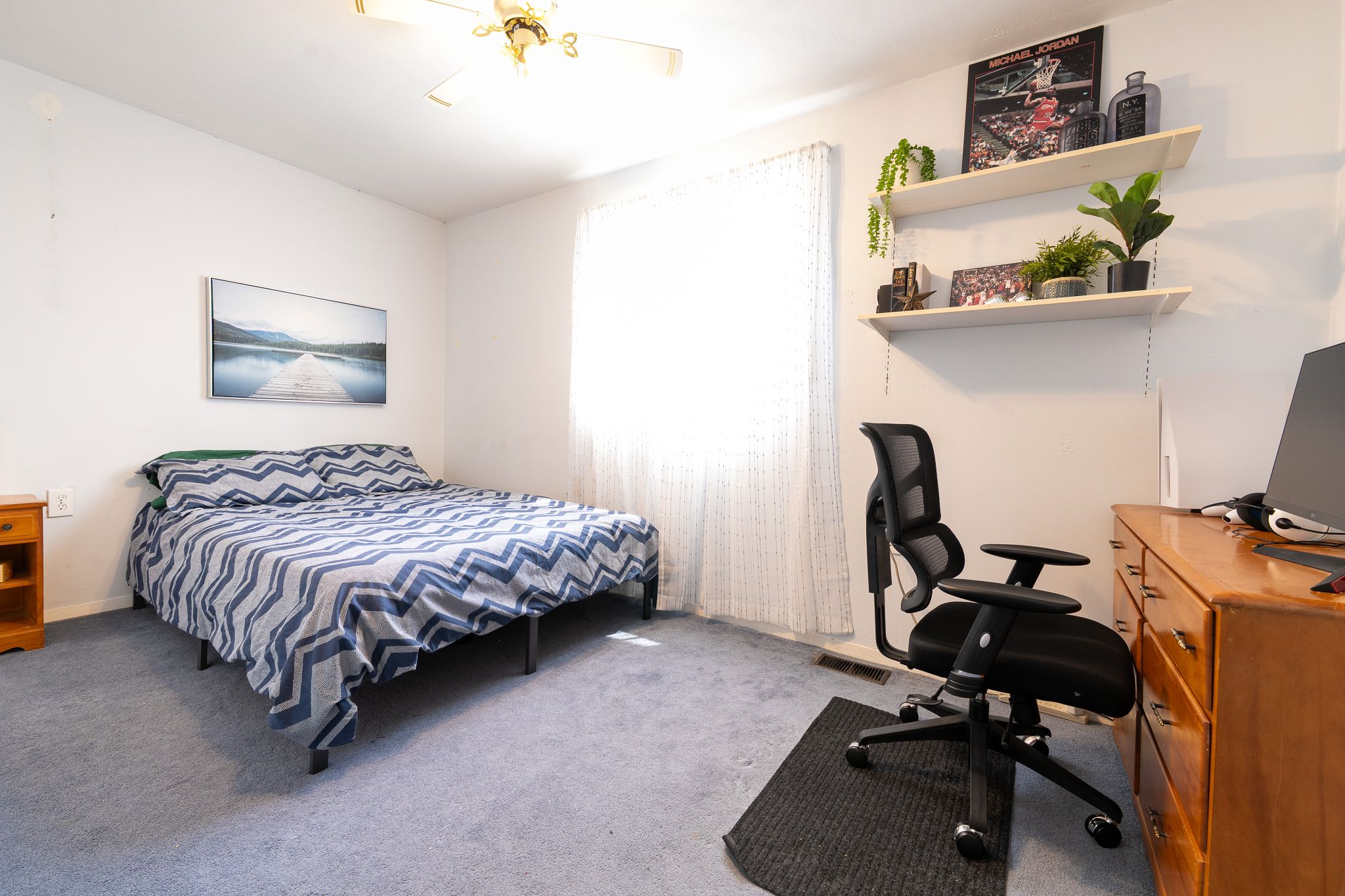 This large family home just got some updates to help welcome you into it's 1943 sq ft of living space! It's sporting some fresh paint and new luxury vinyl flooring in the kitchen/diningroom, back foyer and main bath! With four large bedrooms (you have to see them to believe it!) plus a main floor den, this home is looking for new folks to move in and make it spectacular! With a family sized, eat-in kitchen, a fireplace in the living room, foyers at both the front and back door, main floor laundry and storage in the basement, and ac, this home invites you in to stay. Make sure you stop to appreciate the detailed ceilings and character in this home. Outside, there is a 2 car carport plus a great locked storage area for bikes and valuables. You also have a covered back porch, looking out onto your fully fenced yard, complete with raised garden beds. Need access to the yard? You got it! There's a laneway at the back of the property, great for boats and trailers. Upgrades: furnace & ht wtr tank 2024, house roof 2014 & 2024, carport roof 2018, skedaddle humaine pest control 2017, electrical 2013