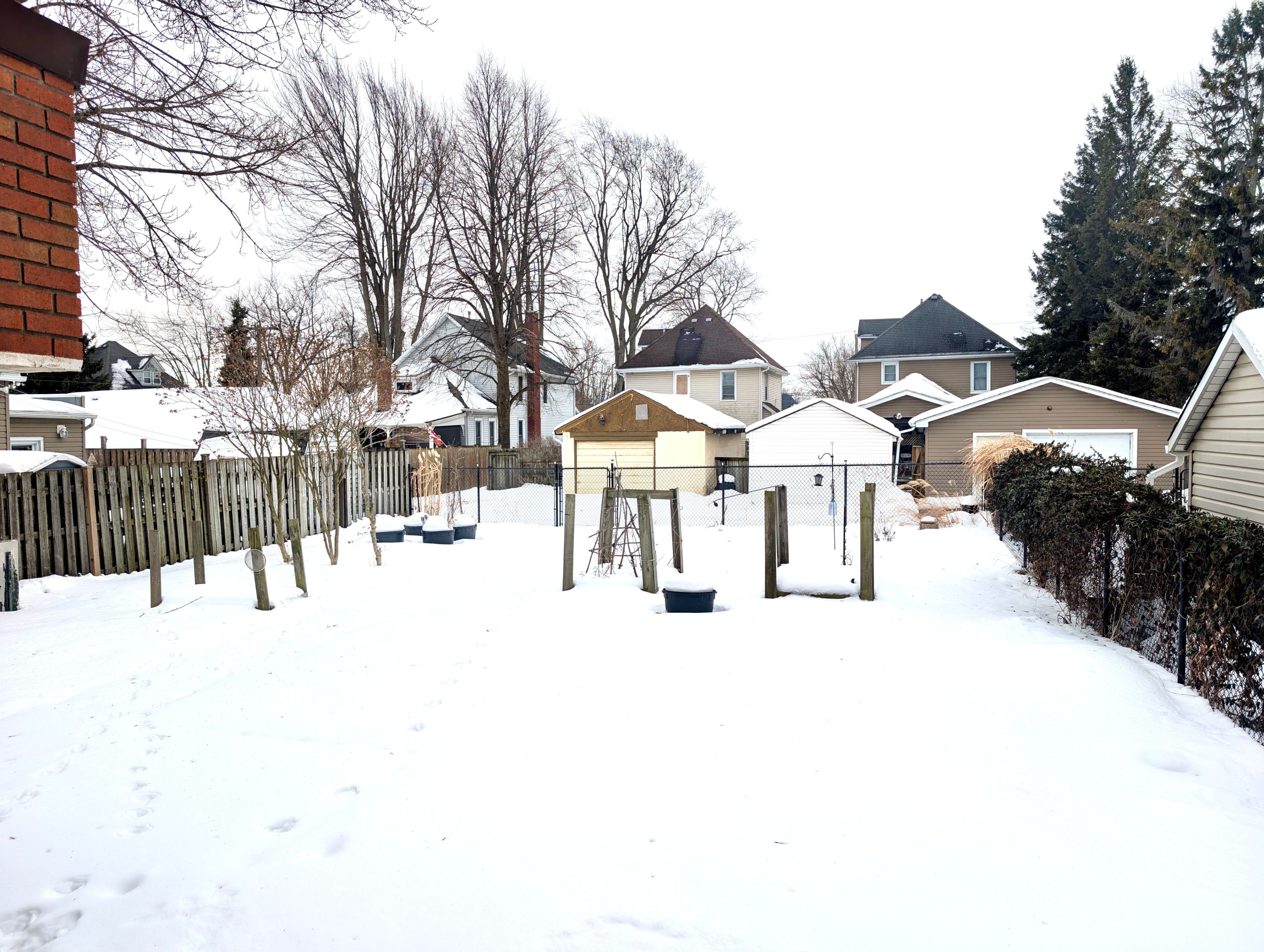 • Fully fenced yard with raised garden beds and direct laneway access.