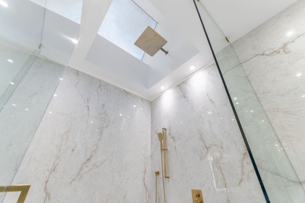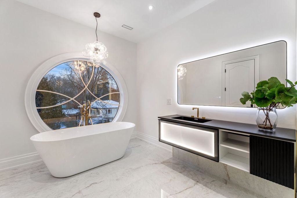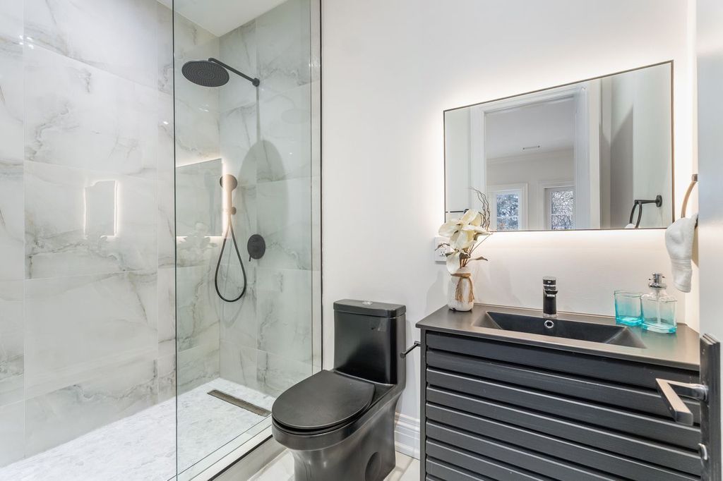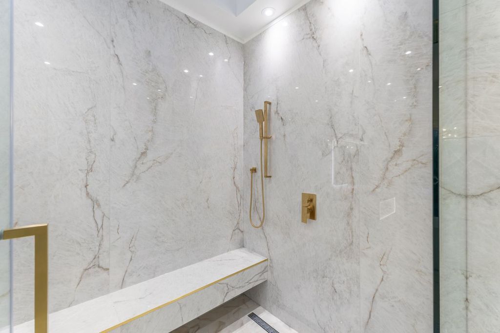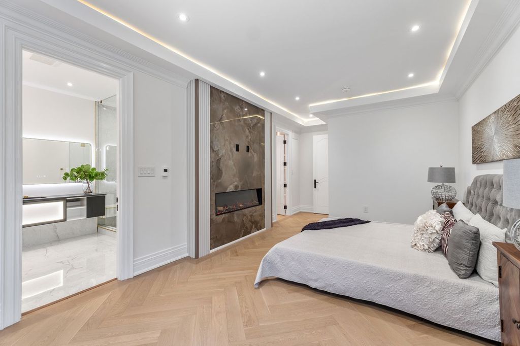 • Spa-like ensuite bathroom with heated floors and custom features.