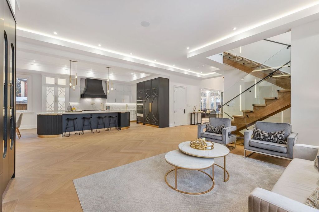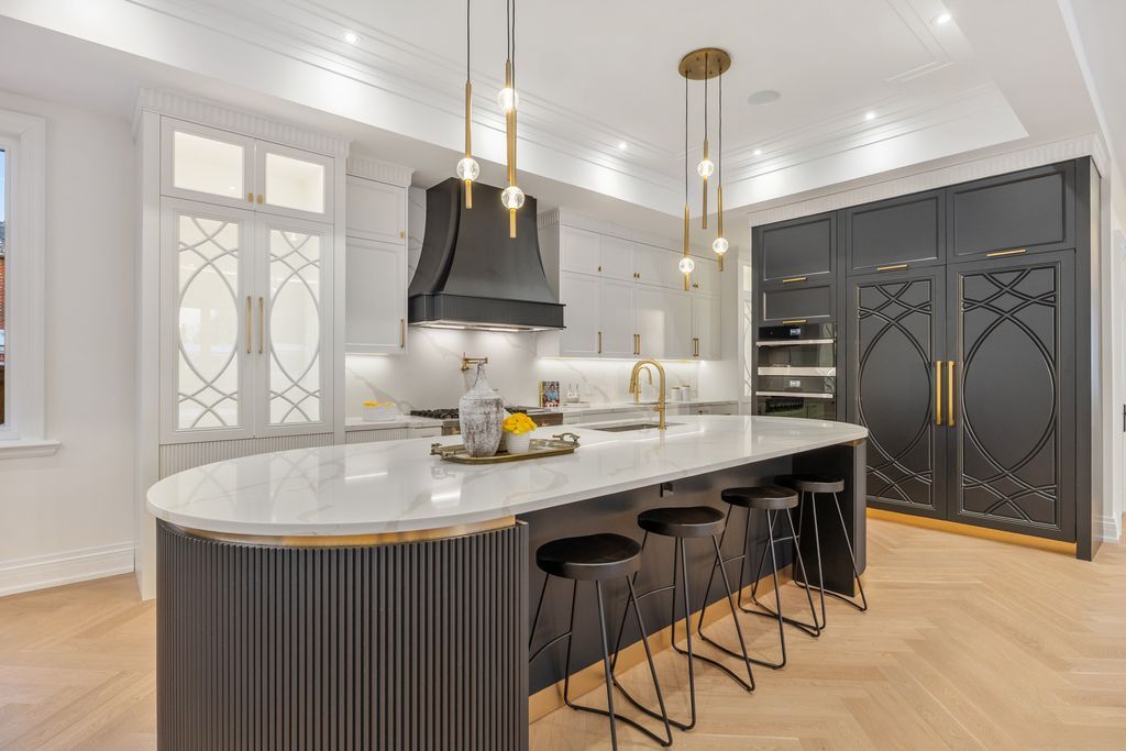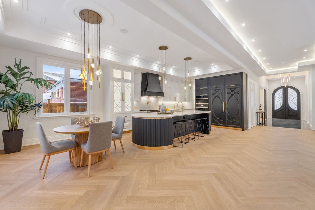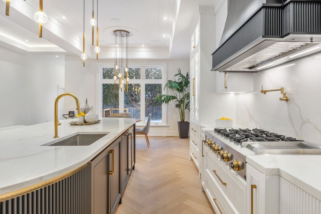 • Chef's kitchen equipped with high-end appliances and a large center island.