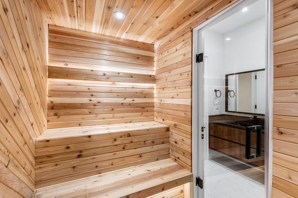 • Finished basement with a separate entrance, theater room, and sauna.