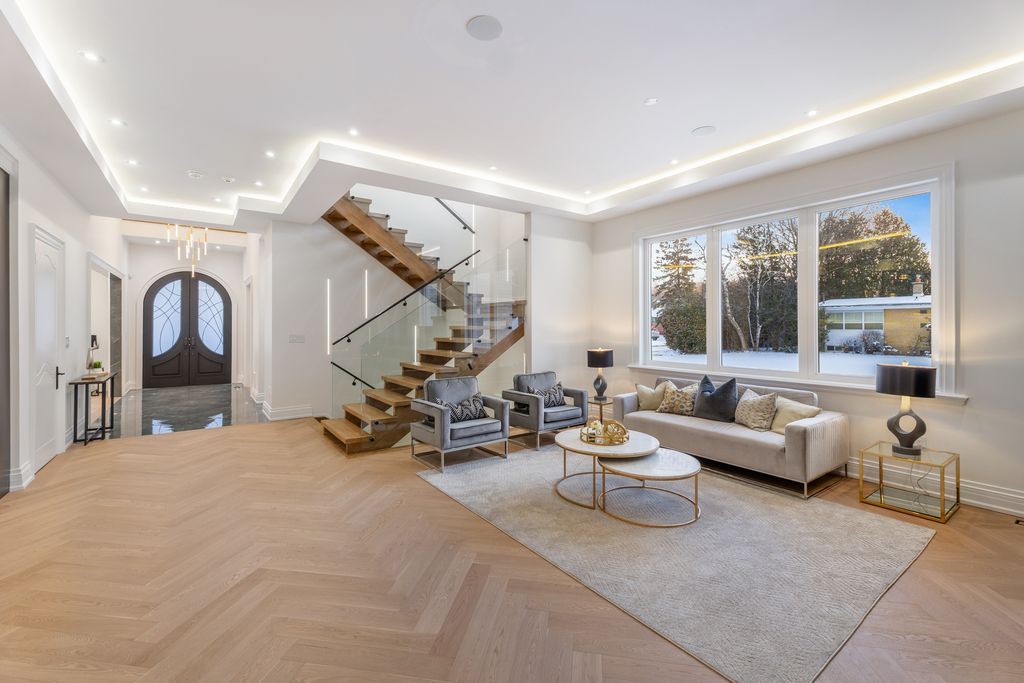 The perfect 4+2 bedroom and 7 bathroom* luxury dream home* premium 61ft x 127ft lot size* sunfilled corner lot* beautiful exterior detailed w/ brick & precast stone surround & grand pillars* enjoy 5,600 sqft of luxury living* modern architect includes 10ft ceilings on main* 9ft ceilings on 2nd & basement* 12ft high ceilings in garage - perfect for car lift* elevator on all levels* skylights & modern black windows throughout* true chef's kitchen w/ coffered ceilings* built-in speakers* high end jennair & dacor built-in apps* panneled refrigerator & dishwasher* gas cooktop w/ pot filler* wall oven & microwave* 2 tone design cabinetry w/ modern hardware* 10ft centre island w/ quartz counters & matching backsplash* under cabinet lighting w/ recess lighting* butler's pantry w/ sink & display cabinetry* breakfast opens w/o to 20x20 sundeck* natural gas for bbq* family rm w/ built-in speakers* 70" floating gas fieplace* custom marble fireplace wall from floor to ceiling* built in display cabinetry* large dining & living w/ custom millwork* modern chandelier* gas fireplace* executive office on main w/ built-in shelving & feature wall* floating staircase w/ glass railing* large skylight* strip led lighting* primary bedroom w/ 10ft ceilings & floating fireplace feature wall* large 400sqft balcony* walk in closets w/ oraganizers* spa-like ensuite w/ heated floors* standing shower* rain shower head w/ skylight* linear drain* glass enclosure & custom shower bench* 24x48 tiles from floor to ceiling* floating vanity & free standing tub positioned by custom window* all bedrooms fit a king size bed w/ ensuites & walk-in closets* 2nd flr laundry w/ built-in linen closet* quartz counters for folding* fin'd bsmnt w/ seperate entrance* outdoor sitting area* large windows* huge open concept multi-functioinal rec area w/ strip led lighting* soundproof theatre room* dry sauna* bedroom for guests w/ 2 bathrooms* massive backyard w/ gazebo* large sundeck* perfect backyard space* must see!