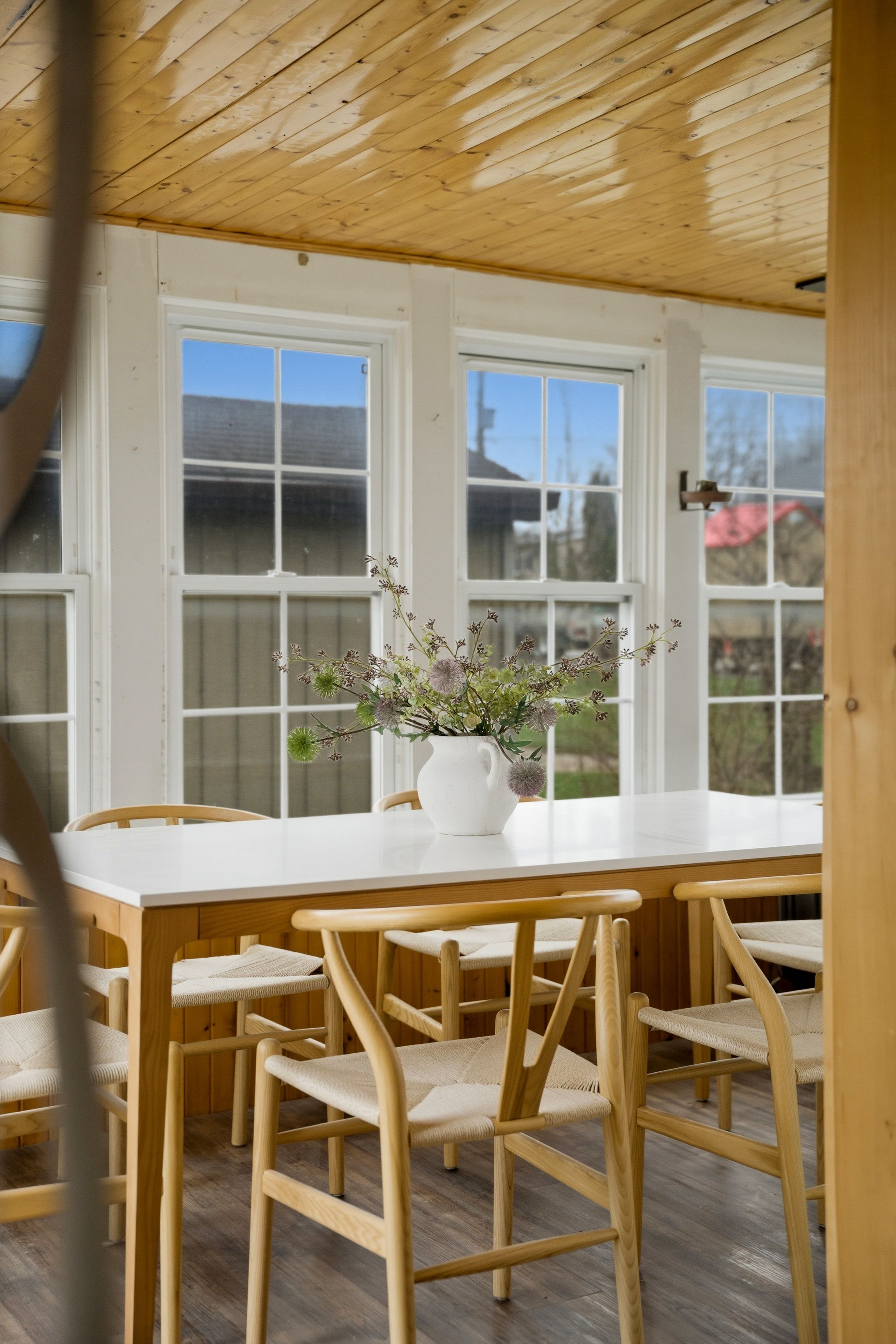 • Bright sunroom with a cozy gas fireplace for year-round comfort.