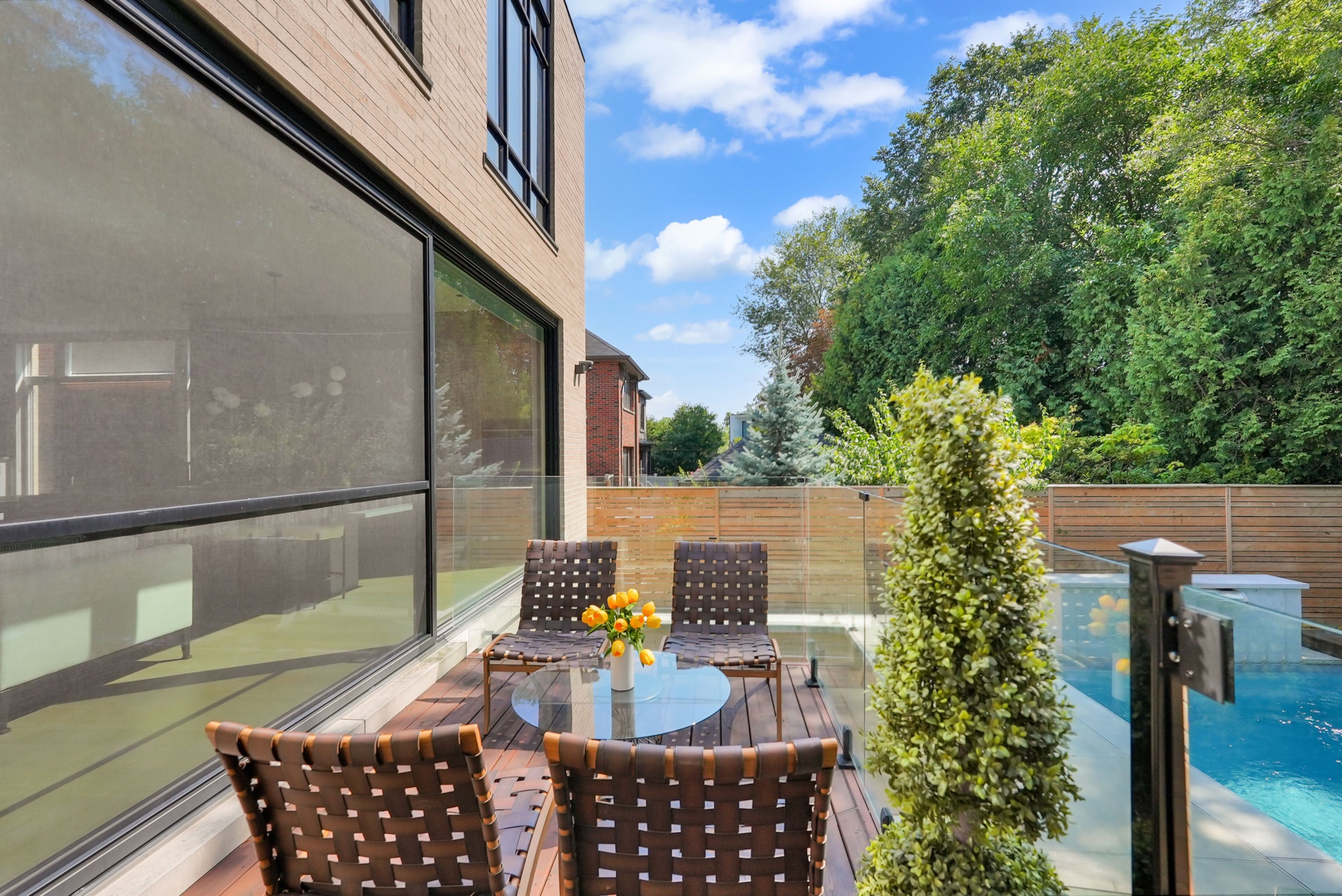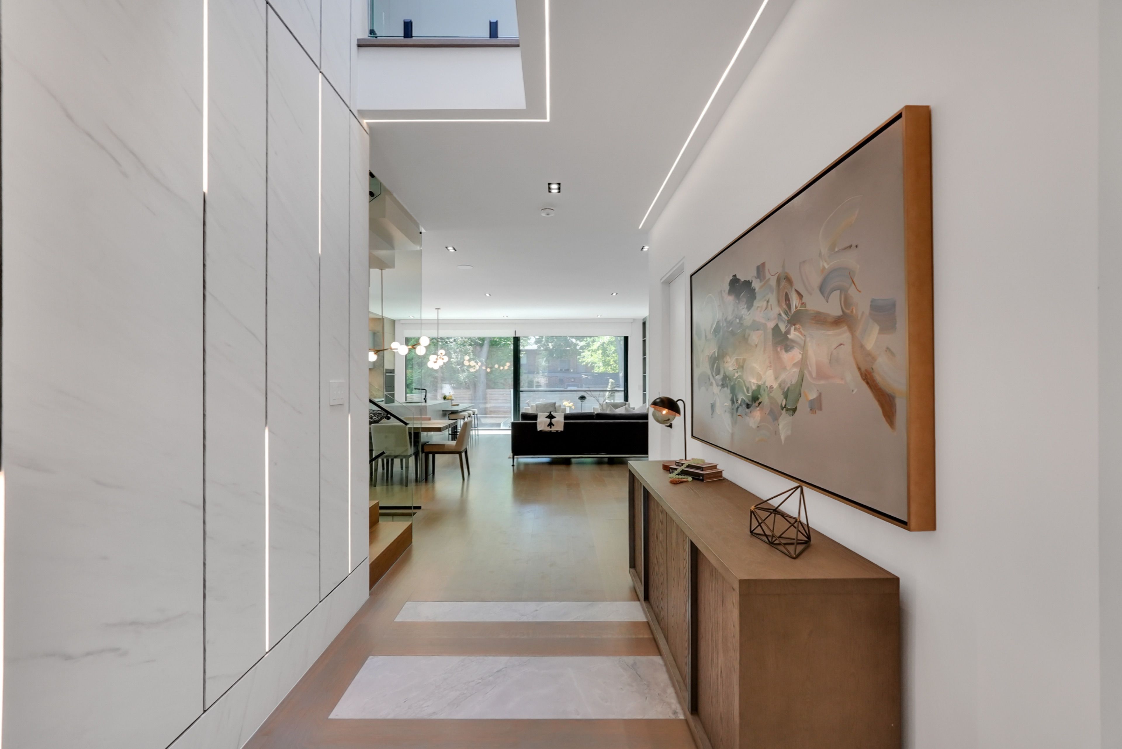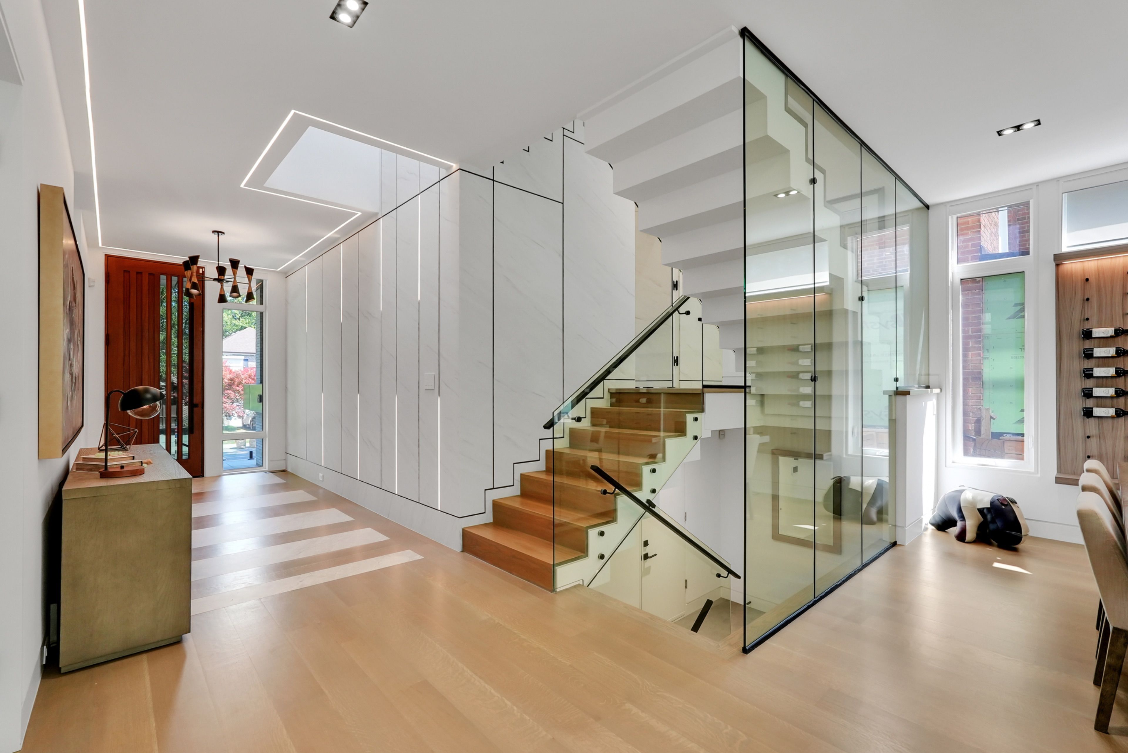 Striking contemporary elegance in prestigious chaplin estates offering inspired living. A dramatic entry with sleek millwork and designer lighting sets the tone, leading into sunlit interiors with soaring ceilings, skylights, and panoramic wall-to-wall windows. The chefs kitchen features a waterfall island and breakfast counter complete w/ wolf & miele appliances, seamlessly connected to the dining and family rooms with a modern gas fireplace perfect for entertaining. The primary suite overlooks the landscaped backyard, complete with a spa-like 5-piece ensuite and walk-in closet. The lower level offers a walk-out, wet bar, recreation room, and flexible bedroom/office ideal as a nanny or guest suite. Step outside to a private backyard sanctuary with a saltwater pool and custom waterfall. Additional highlights include a heated driveway, integrated home automation, and close proximity to top private schools, summerhill market, shops, and ttc/lrt on eglinton.