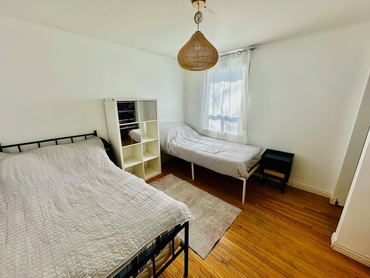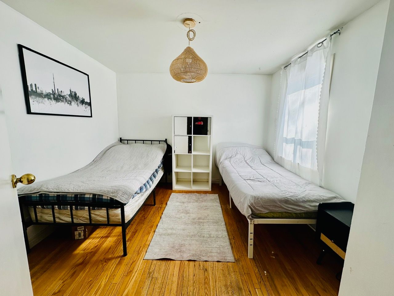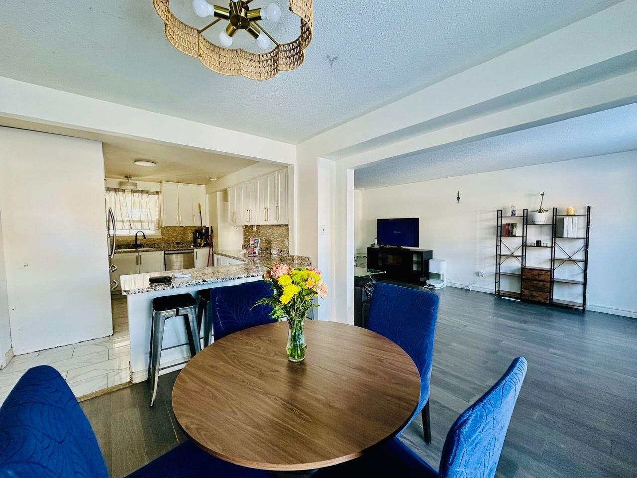 Spacious and bright 2-storey four-bedroom home on a quiet street. Three bedrooms upstairs, a fourth bedroom on the main floor, plus potential for an additional bedroom in the basement. Hardwood floors throughout. Modern eat-in kitchen featuring stainless steel appliances, granite countertops, plenty of cabinetry, and newer kitchen floor tiles (approx. 2 years old). Walk-out from the dining room to a spacious backyard with a large deck. Conveniently located close to fairview mall subway station, highways 404/dvp & 401, schools, and parks.